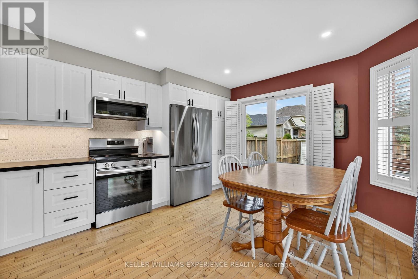 Welcome home to 100 Brucker Road. Tucked away on the quiet end of the street, this former model home stands out for all the right reasons. With one of the largest yards in this stretch of townhouses and a bright, spacious layout that feels more like a detached home than a townhouse, it's the perfect place to put down roots.The newly updated eat-in kitchen is made for family meals and morning coffee chats, while the open living area is filled with natural light, ideal for gathering and making memories. Upstairs, you'll find three comfortable bedrooms, including a welcoming primary suite with its own private ensuite and walk in closet.The fully finished basement offers even more space to enjoy, whether it's a cozy movie room, a play space for the kids, or a home office. Enjoy sitting out back on the patio in your fully fenced yard with shed for extra storage space. Ideal location, walking distance to Rec Centre, Shopping and Restaurants. Easy access to commuter routes. Thoughtfully maintained and move-in ready, this home offers warmth, space, and affordability all in one inviting package. (id:53503)