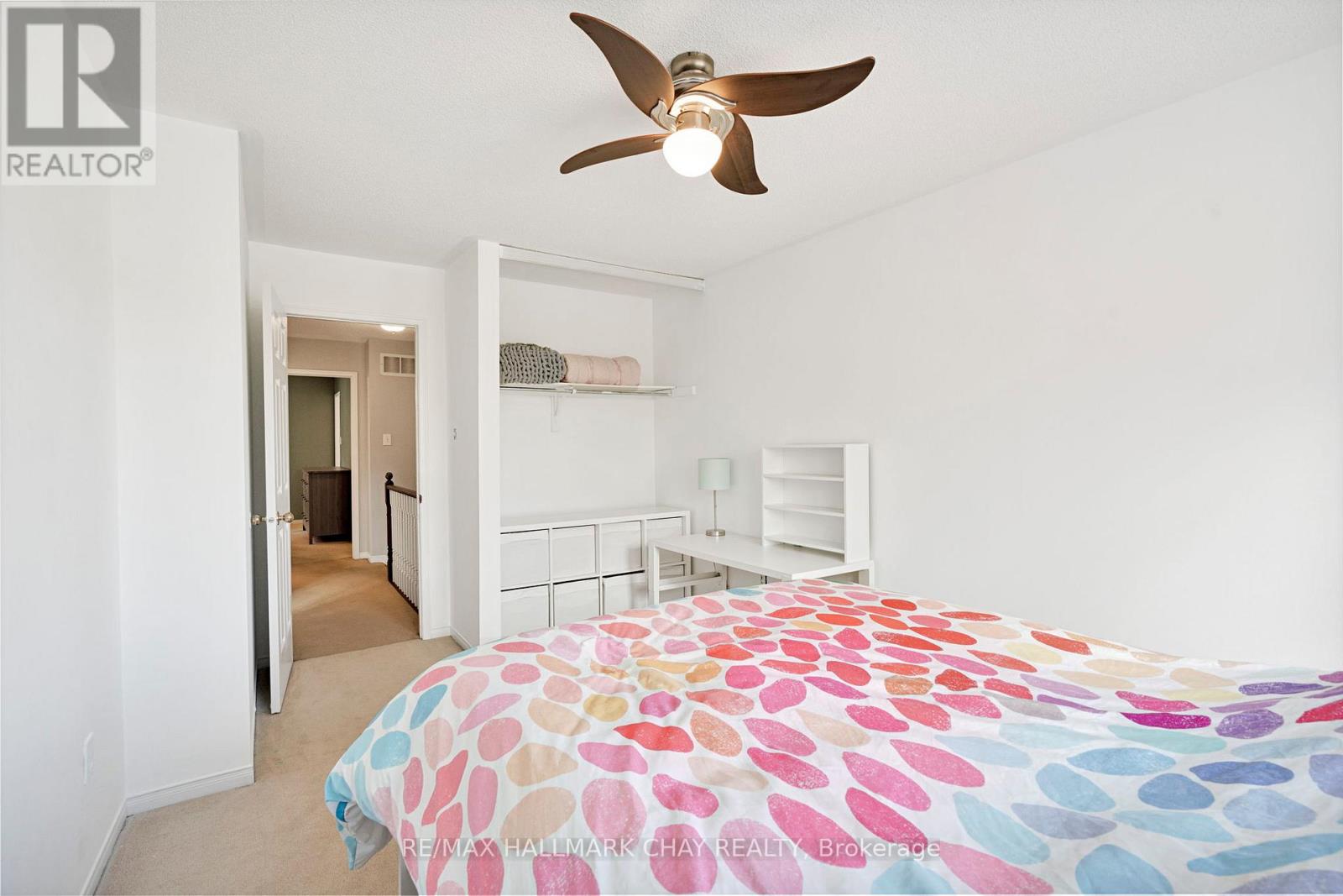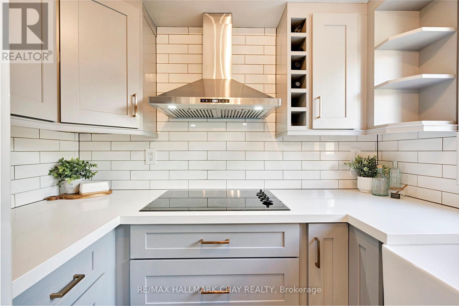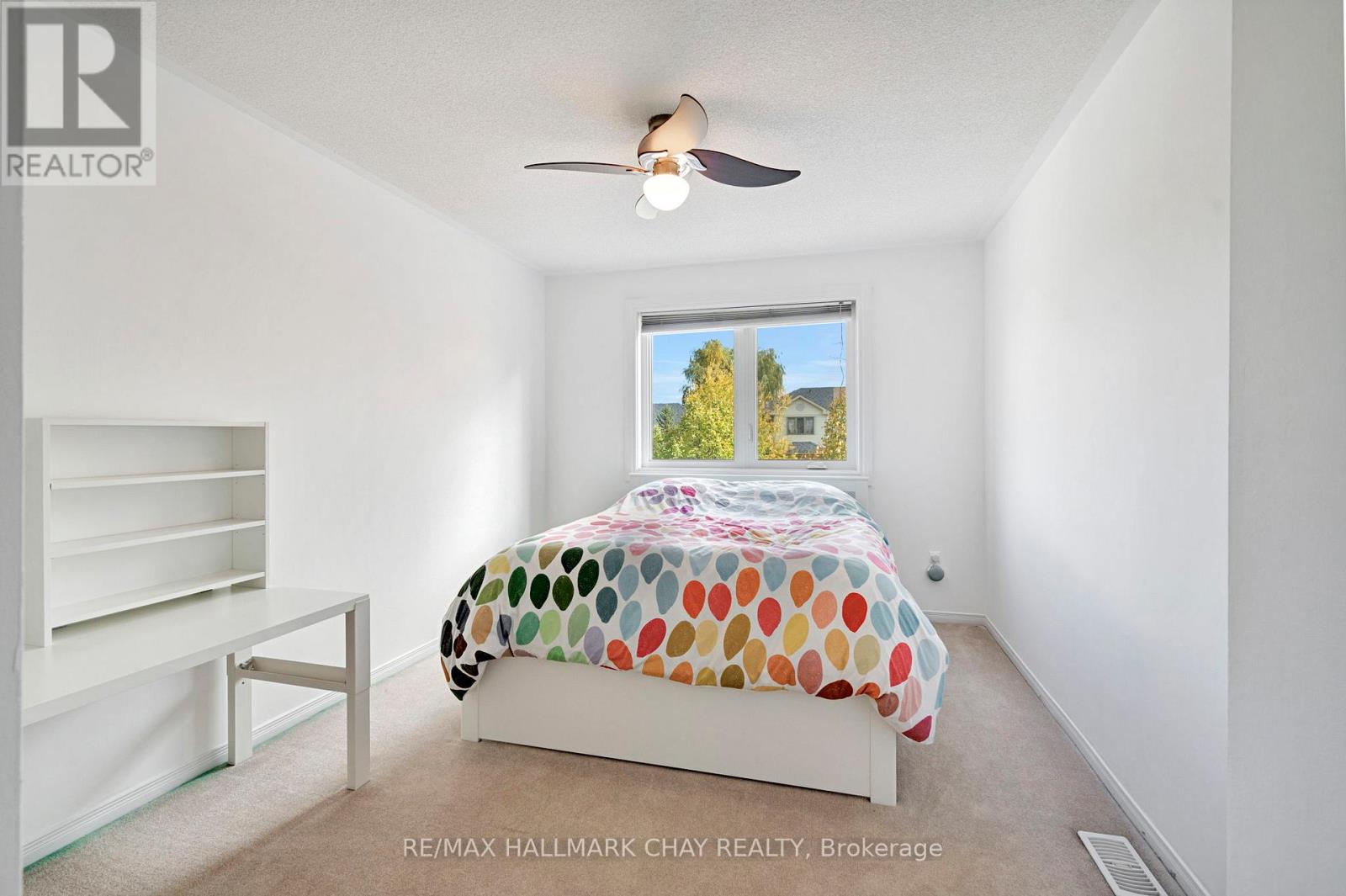 Welcome to this beautifully updated end-unit townhome, where comfort and modern design come together in one perfect package. Step inside to a spacious foyer with built-in shelving and a convenient bench - ideal for busy mornings and everyday organization. The bright living room features gleaming hardwood floors and large windows that fill the space with natural light, creating a warm and inviting atmosphere.The fully renovated kitchen is a standout, offering built-in appliances, stylish tiling, updated light fixtures, and a generous eat-in area with a walkout to a large deck and hot tub. The landscaped, private backyard is perfect for relaxing or entertaining, and it backs onto a walking path that leads directly to the elementary school and Huronia Park - a dream setting for families and nature lovers alike. Upstairs, you'll find three spacious bedrooms, including a primary suite with a walk-in closet and a 4-piece ensuite bathroom. The main bathroom is equally generous in size, offering plenty of space for the family. A partially finished basement adds extra flexibility with a large recreation room, ideal for a media space, home gym, or play area. With thoughtful updates throughout - including an updated roof, windows, powder room, modern finishes, and a bright layout- this move-in ready home is ready to impress. Enjoy the convenience of being close to parks, schools, trails, and all the amenities that make this neighbourhood such a desirable place to live. (id:53503)
