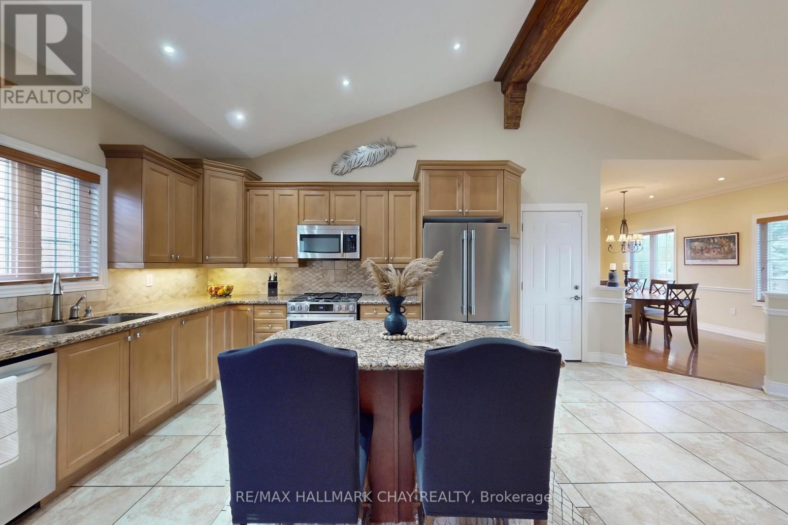 Welcome to this stunning model home - a beautifully designed 4-bedroom, 3-bathroom spacious backsplit that perfectly blends elegance, comfort, and functionality. From the moment you arrive, the impressive curb appeal, large corner lot, and expansive 3-car garage set the tone for what's inside. Step through the inviting entrance and be greeted by soaring cathedral ceilings accented with a striking faux wood beam that adds warmth and architectural character. The spacious living room is the heart of the home, featuring a cozy gas fireplace that creates the perfect gathering space for family and friends. The separate dining room offers an ideal setting for entertaining, while the stylish kitchen is both practical and luxurious - showcasing stone countertops, a stunning backsplash, and gas stove that will inspire any home chef. Four generous bedrooms provide comfort and privacy for the entire family. The primary suite offers a tranquil retreat with its own ensuite and W/I closet, while the remaining bedrooms on the second floor share a beautifully appointed bathroom, all featuring modern finishes and thoughtful design. The finished basement extends your living space, complete with a large family room perfect for movie nights or game days. There's also an additional room that can easily serve as a home office, gym or guest bedroom. Outside, the fully fenced yard w/a large side gate and firepit area offer a private oasis for outdoor entertaining. Enjoy summer barbecues or quiet evenings on the impressive two-tier deck, surrounded by mature landscaping and ample space for children or pets to play. The insulated garage adds extra storage and parking for 3 vehicles. This home combines upscale finishes with functional living in a thriving, desirable area. With its elegant features, generous living spaces, and ideal corner-lot location, this home truly stands out. It's a perfect blend of comfort and style and is centrally located near lake Simcoe, shops, schools and dining. (id:53503)