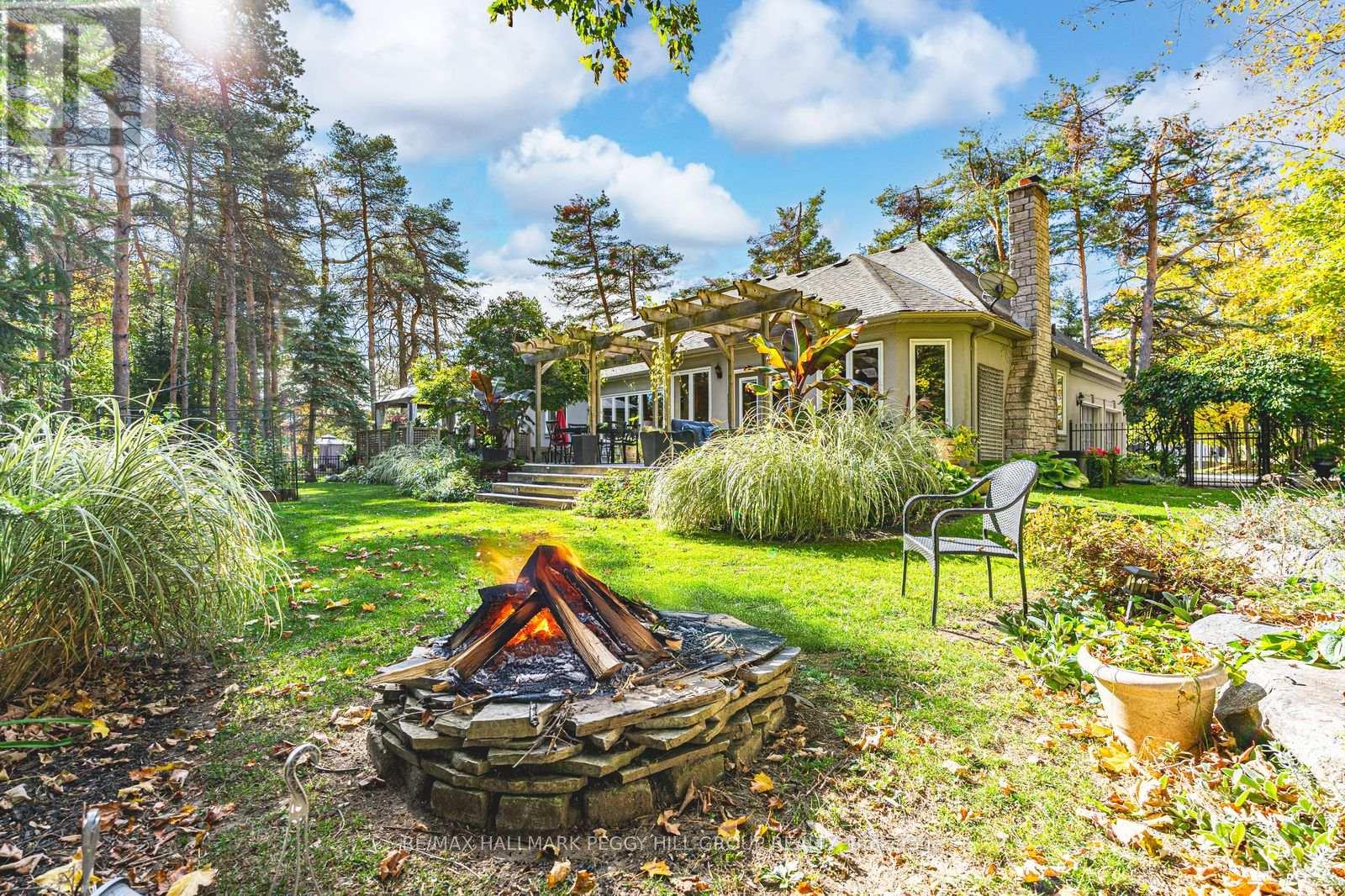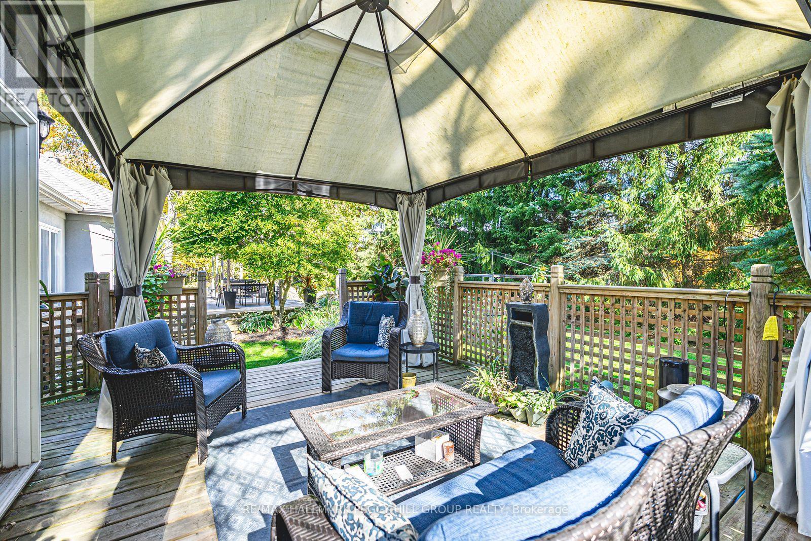 DISTINGUISHED HORSESHOE HIGHLANDS ESTATE ON A SERENE CUL-DE-SAC SETTING! Nestled on a quiet cul-de-sac in the prestigious Horseshoe Highlands, this elegant home offers over 3,650 finished sq ft of timeless style and thoughtful design, backing onto a former golf course surrounded by mature trees and manicured gardens. Sunlight fills every corner of the open-concept layout, where large windows, rounded corners, and refined lighting create an atmosphere of understated luxury. The bright kitchen features wood cabinetry, stainless steel appliances, a gas cooktop, a breakfast bar, and a breakfast area overlooking the yard. A formal dining room with soaring ceilings and dramatic arched windows creates a stunning backdrop for elegant gatherings, while the sunken family room with a tray ceiling and gas fireplace, and the living room with a wood-burning fireplace and wet bar, offer warm and inviting spaces to unwind. The primary suite feels like a private retreat with dual walk-in closets, a five-piece ensuite featuring a dual-sink vanity, a glass-walled shower, a soaker tub, and a walkout to its own secluded deck through double garden doors. Two additional bedrooms share a stylish three-piece bath, while a convenient main-floor laundry adds everyday ease. The partially finished lower level offers a generous recreation room, office, wine cellar, and three-piece bath, providing versatility for any lifestyle. Outdoors, a fully fenced yard with two decks, including one featuring dual pergolas, is framed by lush landscaping, vibrant gardens, and vegetable beds. A double-car garage with inside entry and driveway parking for up to ten vehicles completes this exceptional property. Perfectly positioned within minutes of the new elementary school, community centre, medical clinic, park, and tennis courts, and under 20 minutes from Barrie's RVH and Georgian College, with year-round recreation close at hand, including skiing, golf, hiking, and Vetta Nordic Spa. (id:53503)
