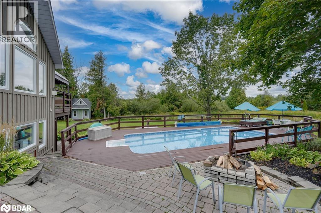 Welcome to 1171 Line 9 N in beautiful Oro-Medonte, offering the backdrop to the life you’ve been dreaming of. Set on 1.79 acres, this thoughtfully designed bungalow provides the perfect mix of comfort, flexibility, and space to grow into. The bright, welcoming main floor features open living areas, a dining room anchored by a cozy propane fireplace, and a kitchen that truly serves as the heart of the home making it a natural gathering place for family and friends. This level offers 3 bedrooms, including a spacious primary suite with a 3-pc ensuite bath, providing a private retreat at the end of the day. Everyday life is simplified with direct garage entry into the mudroom combined with laundry, keeping things organized and functional. The fully finished lower level sets this home apart. With access from the main floor, private patio, or garage, the in-law suite is designed with versatility in mind. This level complete with 2 bedrooms, 2 bathrooms, a generous living area, and its own kitchen and laundry, is ideal for a growing family needing extra room, or for multi-generational living, offering loved ones privacy while staying connected under one roof. One bedroom on this level easily serves either the in-law suite or the main floor, making the layout adaptable to every stage of life. Outside, the property offers everything you’ve been looking for, including beautiful landscaping with stone lighting and a private pond. An oversized two-car garage adds everyday practicality. The barn has been converted into a workshop, while the drive shed provides space for equipment, hobbies, or toys. Summers can be spent poolside in the heated inground pool, and the charming bunkie is perfect for guests, a creative studio, or a quiet retreat. Start your mornings overlooking your private pond or end your days watching sunsets from the front porch. Here you’ll find the peace of country living—open skies, room to roam, and a place designed for connection, comfort, and family life. (id:53503)