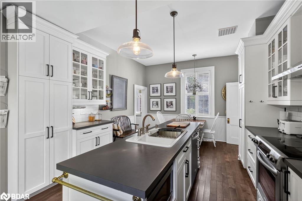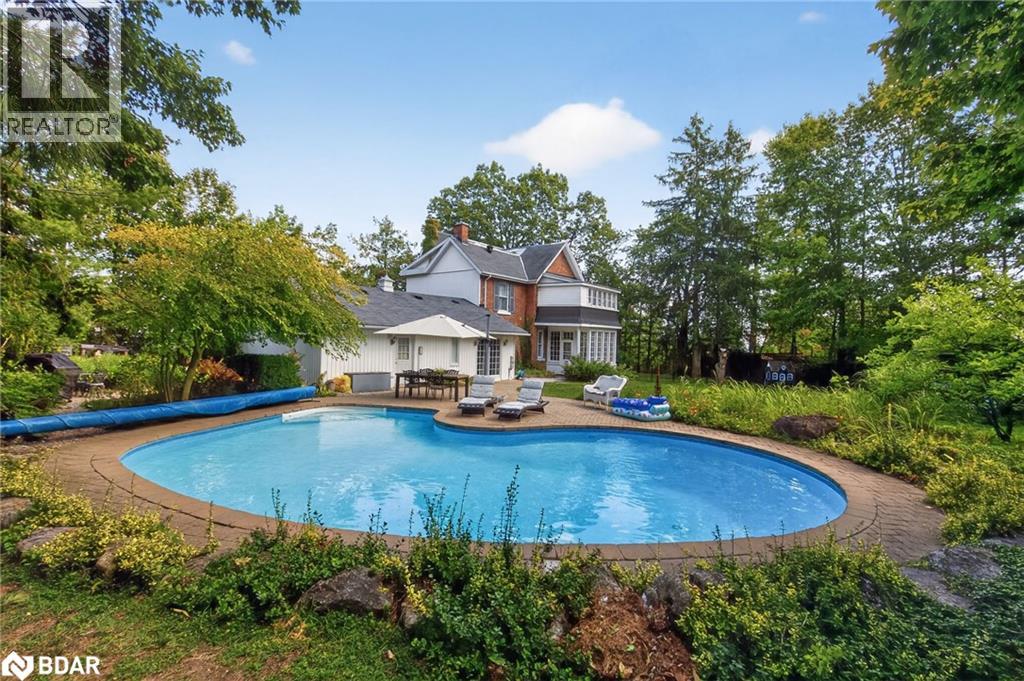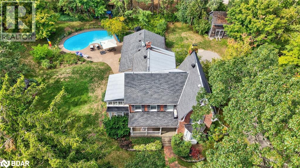 Welcome to “Three Oaks”, a century classic home on almost an acre, estate parklike private lot with extraordinary mature trees, pool, and the original barn/shed with basement which is ideal for a workshop, located in the heart of Barrie, close to Sunnidale Park and all amenities. Built in 1873, the home has maintained its original architecture and beauty with 10’ ceilings, detail and mouldings, French and Dutch doors, 2 sunrooms, front porch, bay window, large baseboards, hardwood, pocket doors, built-ins, parlour, butler’s pantry, absolutely charming! Outside is like a resort, with a courtyard; relax on the porch, then flow past the long drive to the barn, the gazebo and then relax pool side. The home has been beautifully updated: eat-in kitchen with pantry, stainless steel appliances, newer furnace and air conditioning and the layout has space for additional bathroom(s) as seen in the floor plan drawings. This property is a total pleasure, dreamy! (id:53503)