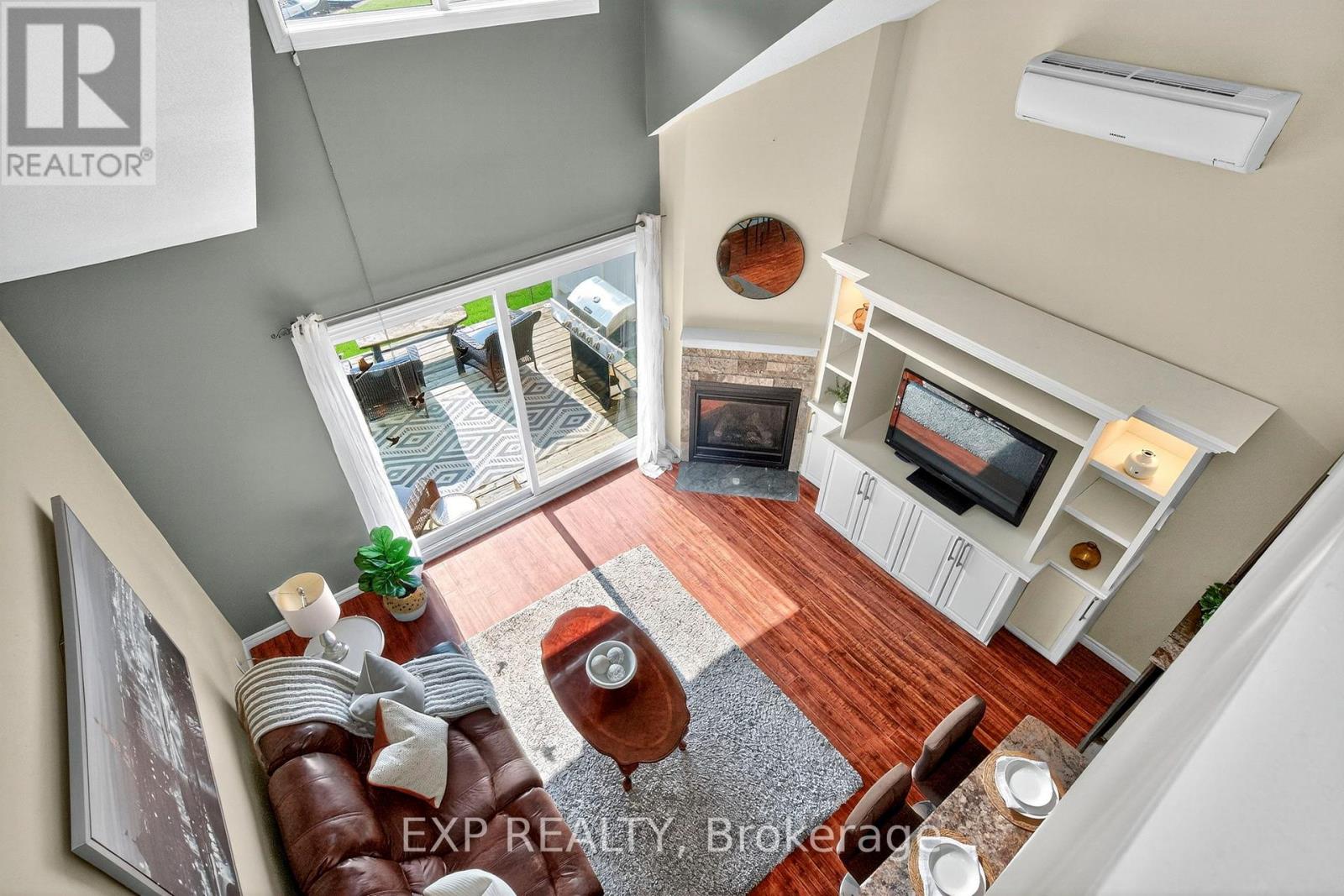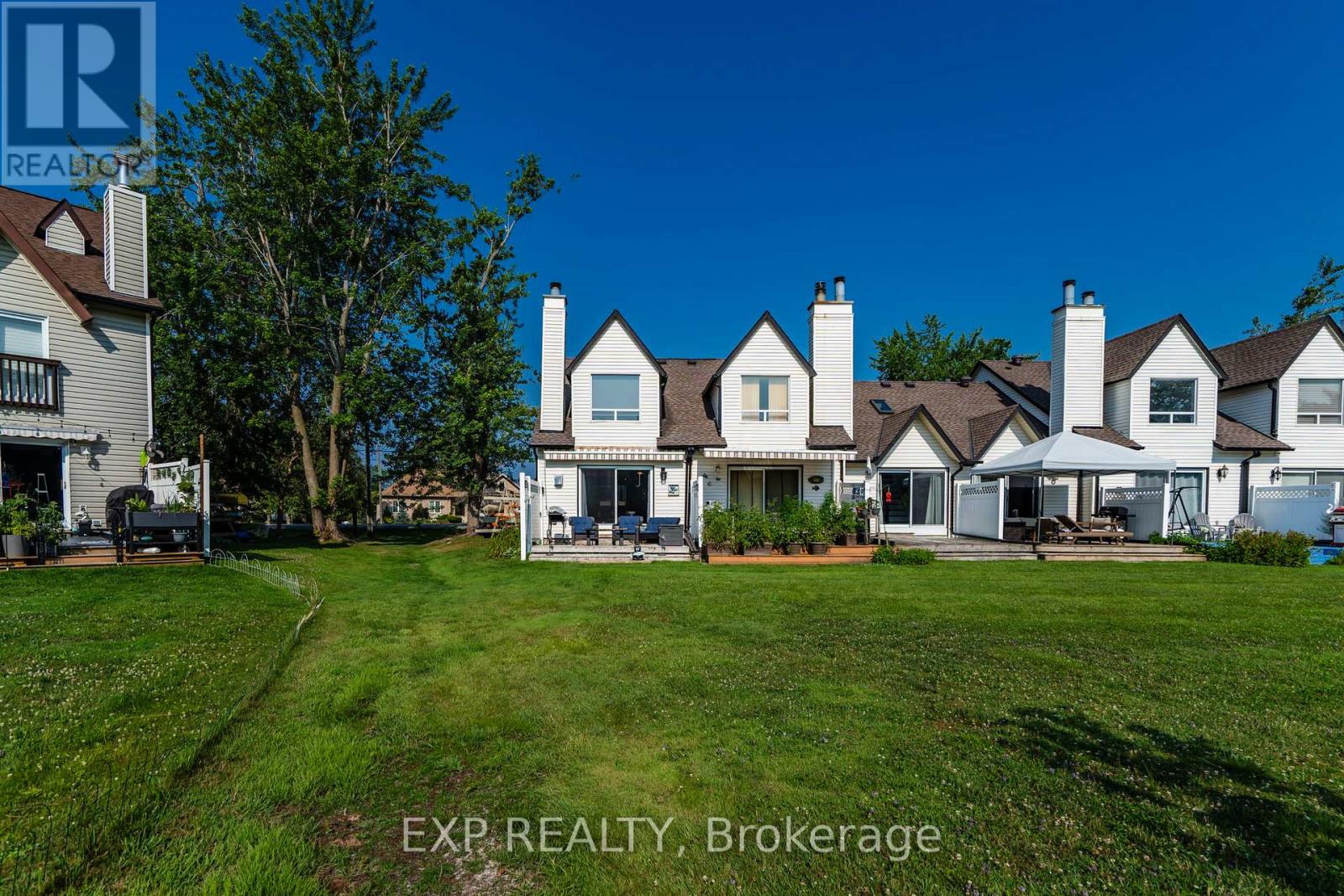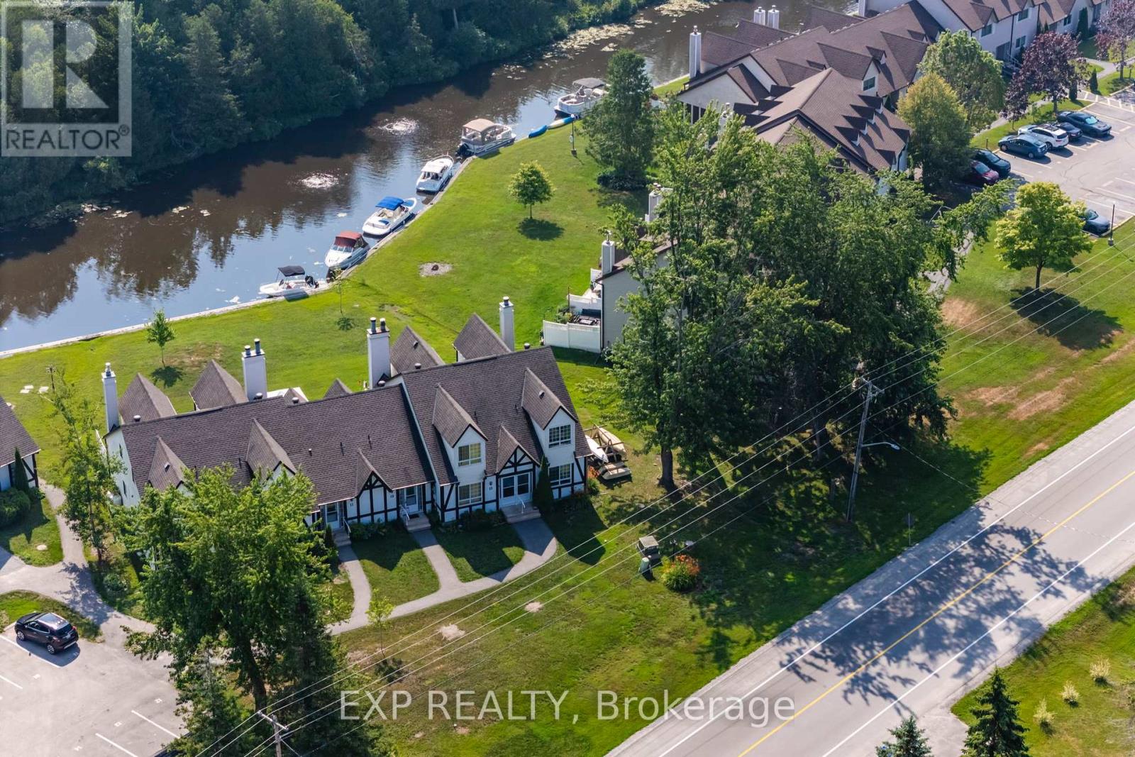 Discover this beautifully renovated Rarely offered end-unit 2-bedroom, 2-bath waterfront townhome in the heart of Lagoon City, perfectly situated on the peaceful Gondola Lagoon with private boat mooring and direct access to Lake Simcoe and the Trent-Severn Waterway. This bright and airy home features a vaulted ceiling, and large patio doors that fill the space with natural light. The open-concept living, dining, and kitchen area offers a cozy gas fireplace, gas BBQ hookup, and a walkout to a private waterfront deck with Awning ideal for entertaining or relaxing as you watch the boats drift by. The remodeled main bathroom, fresh paint throughout, and spray-foamed crawlspace for improved energy efficiency add to the home's comfort. The spacious loft-style primary bedroom overlooks the water and mature trees, and features a 4-piece ensuite and an office/reading nook. Enjoy cooking in the modern kitchen with stainless steel appliances, including a wine cooler, and benefit from a dual system air conditioner for both heating and cooling, plus a whole-home water filtration system for added peace of mind. This rarely offered end-unit is part of the sought-after community, which features a professionally landscaped grounds, and direct access to two private sandy beaches.. Lagoon City also boasts a full-service marina, year-round clubhouse, tennis & pickleball courts, miles of walking and biking trails, and easy access to golf courses, leash-free dog park, and Casino Rama just a short drive away. With municipal services, high-speed internet, and only 1.5 hours from the GTA, this is the perfect full-time home, cottage retreat, or work-from-home escape. Start your new waterfront lifestyle today in this exceptional end-unit townhome a true gem in a one-of-a-kind community. (id:53503)