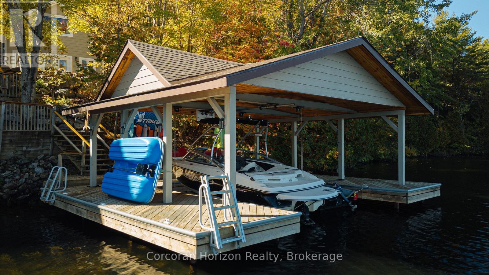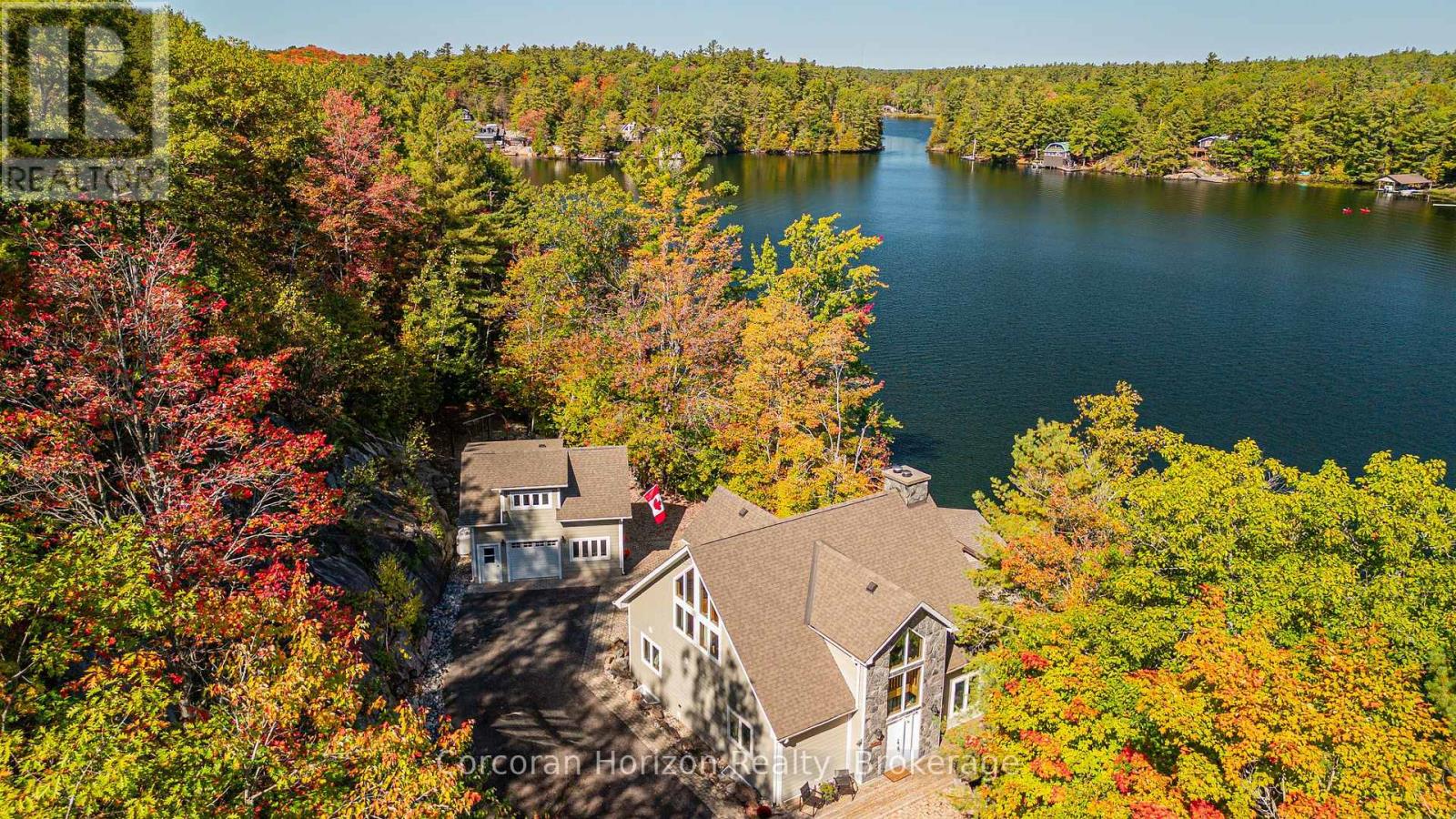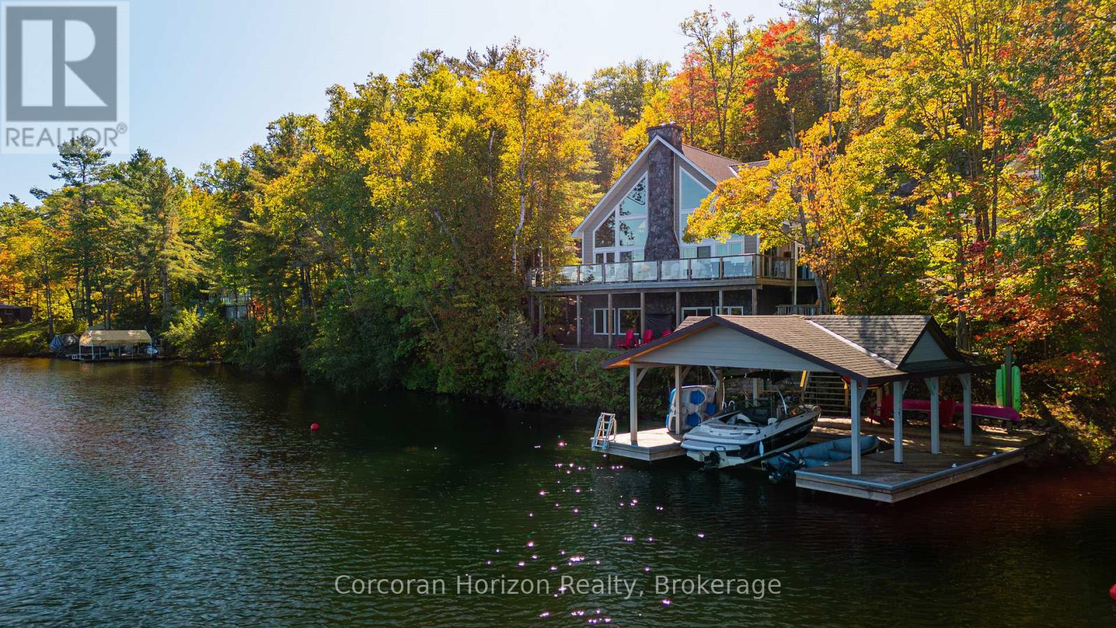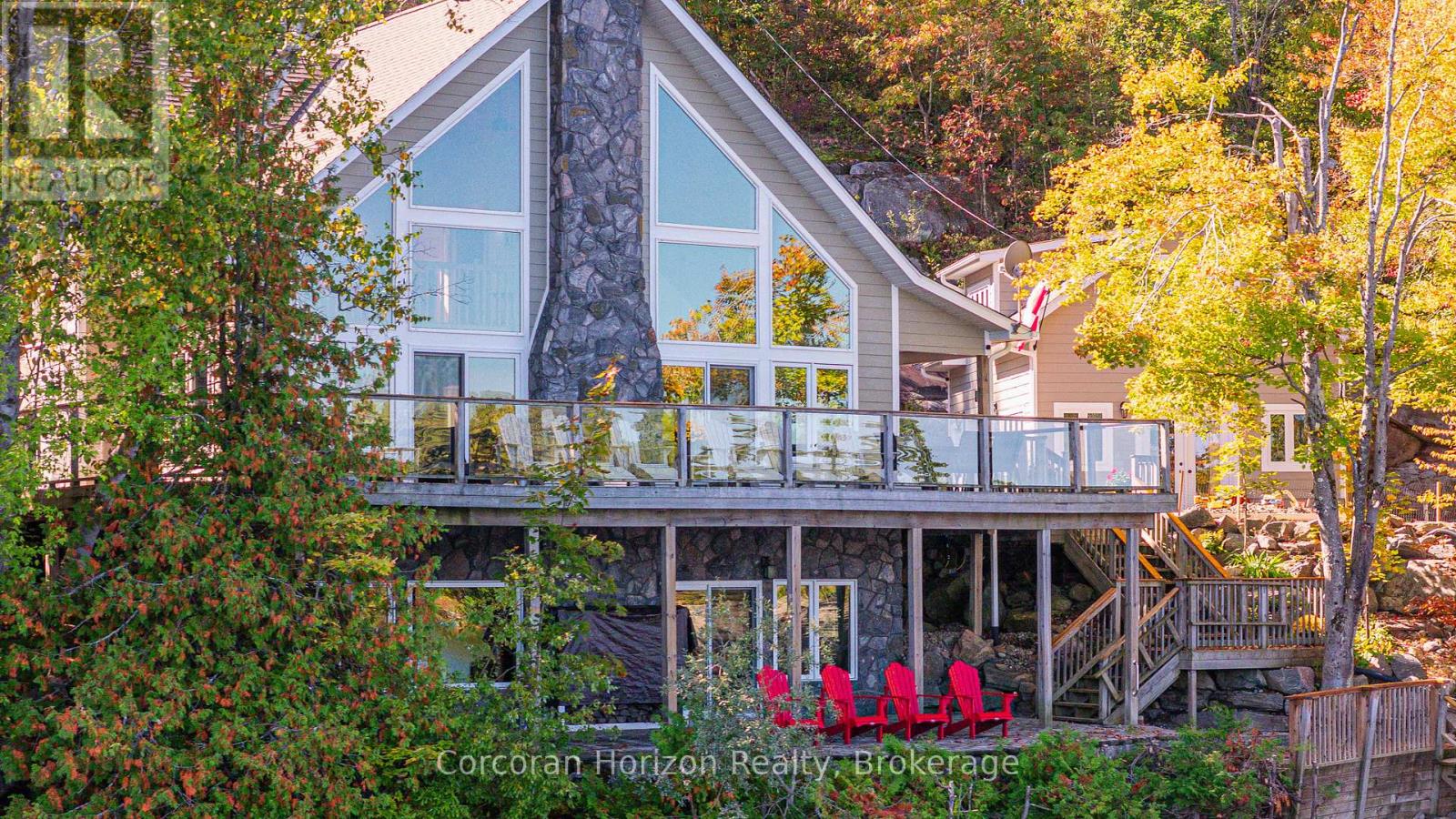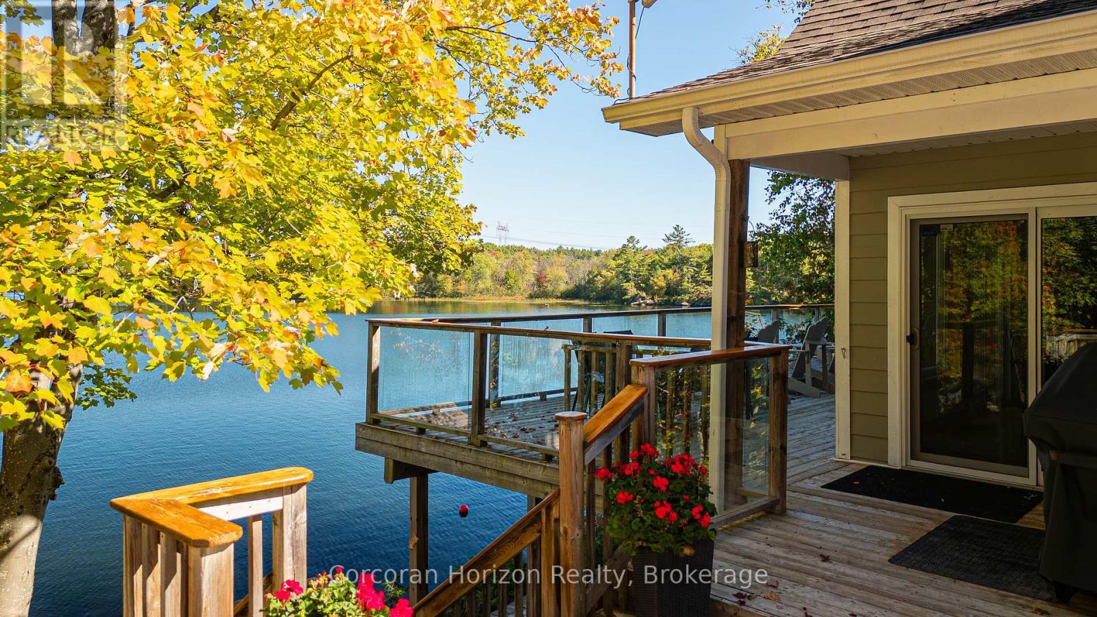 Escape to your dream retreat on the shores of Gloucester Pool, just steps from the Big Chute. This 5-bedroom, 3-bathroom cottage home delivers the best of waterfront living with a balance of adventure, relaxation, and charm.The main level, with custom granite fireplace, features a spacious eat-in kitchen, open-concept dining and living areas with vaulted ceilings, and a seamless walkout to a large deck overlooking the lake. A cozy recreation room offers the perfect space to unwind after a day outdoors. Set against rugged granite outcroppings and surrounded by mature trees, the property offers privacy, landscaped grounds for family fun, and multiple outdoor living areas designed for entertaining. At the shoreline, a well-built double boat port with cable lift and additional docking makes lake life effortless, with deep, clean water ideal for swimming and boating.This location is a four-season playground: direct access to the Trent-Severn Waterway for boaters, excellent fishing from your own shore, and nearby snowmobile and ATV trails for winter adventure. Hiking trails, golf, and ski hills are all within easy reach. Whether gathering with family, hosting friends, or seeking a peaceful escape, this Gloucester Pool property is the complete package, a true four-season escape. (id:53503)