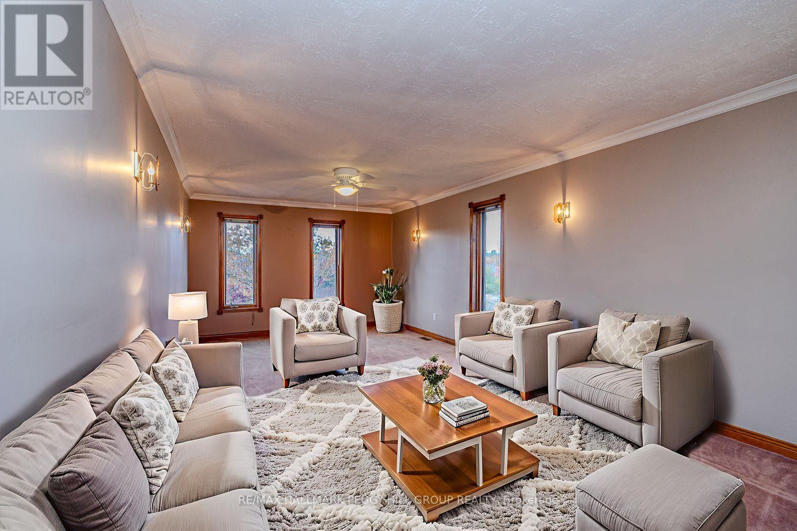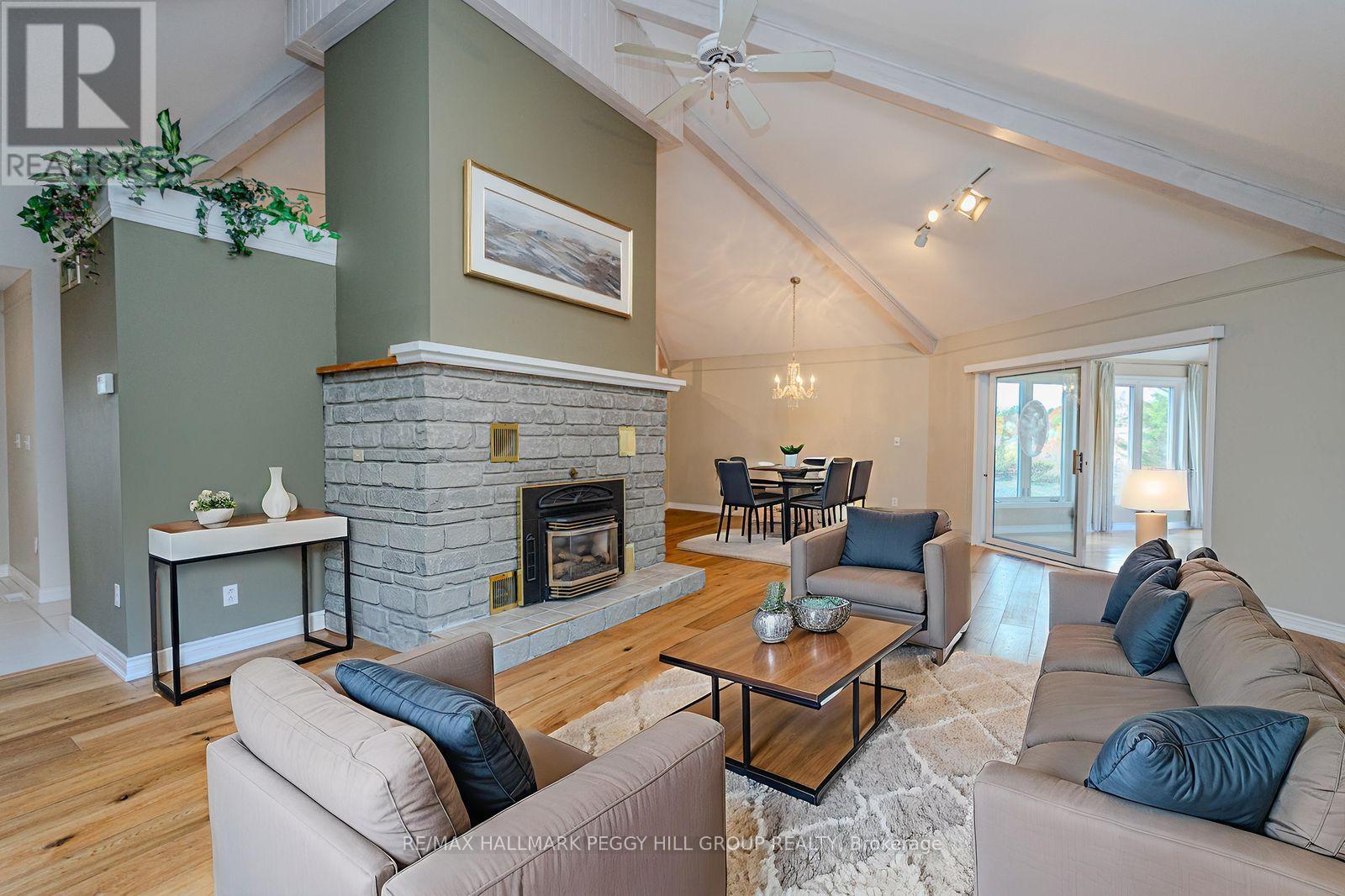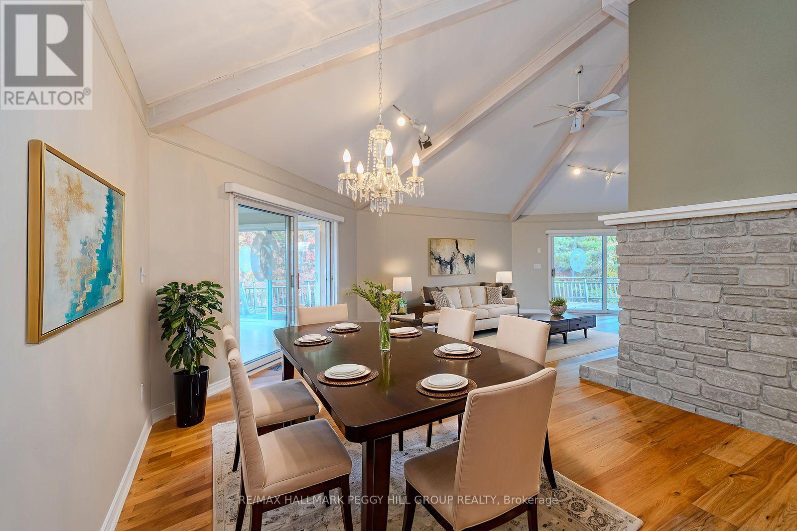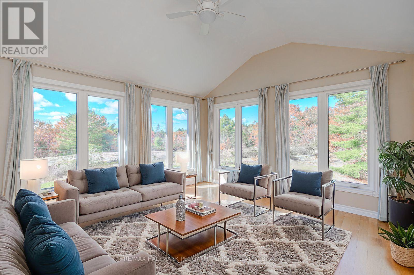 SPACIOUS BUNGALOW SET ON 7.81 ACRES WITH AN ATTACHED GARAGE, HEATED DETACHED SHOP WITH LIVING/OFFICE SPACE & MINUTES TO GEORGIAN BAY! Discover the kind of property buyers dream about but rarely find: 7.81 acres of privacy and natural beauty just minutes from Georgian Bay. Towering trees and rugged Canadian Shield rock frame beautifully landscaped grounds, with armourstone accents, flower beds, and an interlock walkway with steps leading to the front door. A triple-wide driveway provides parking for up to 15 vehicles, complemented by an attached double-car garage and an impressive 30 x 40 ft detached heated shop/garage featuring a finished office or living area and a 14 ft door, offering endless possibilities for hobbyists, contractors, or anyone in need of additional space. This bungalow presents over 2,300 sq ft on the main level with spacious, light-filled living areas, including a great room with a 15 ft beamed cathedral ceiling, a fireplace, and an adjoining dining area, plus a separate living room with crown moulding. The well-appointed kitchen showcases a centre island, pantry, a mix of white and warm wood cabinetry, tile flooring, and a second fireplace, while the vaulted sunroom with large windows and a walkout to the expansive back deck provides the perfect place to enjoy the view. Four generously sized bedrooms include a primary retreat with a 4-piece ensuite featuring a relaxing jetted tub and a glass-walled shower, while another bedroom also offers its own 3-piece ensuite. Main floor laundry adds everyday convenience with a handy sink. Practical features include forced-air propane heating in both the home and the shop/garage, a heat pump in the home for efficient heating and cooling, a drilled well, and 200-amp service. All of this is just minutes from beaches, marinas, the public school, library, LCBO, church, parks, and everyday essentials in Honey Harbour. (id:53503)