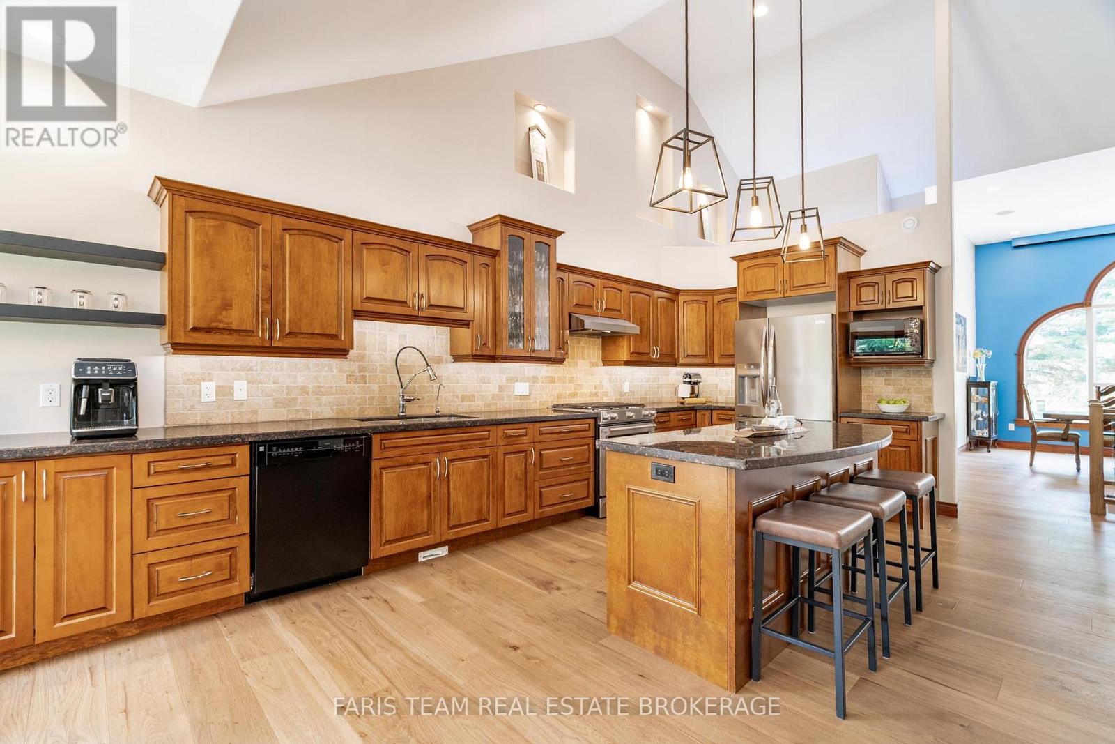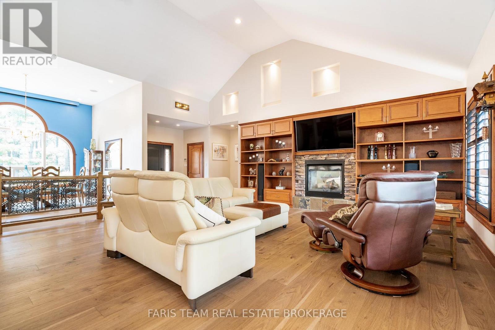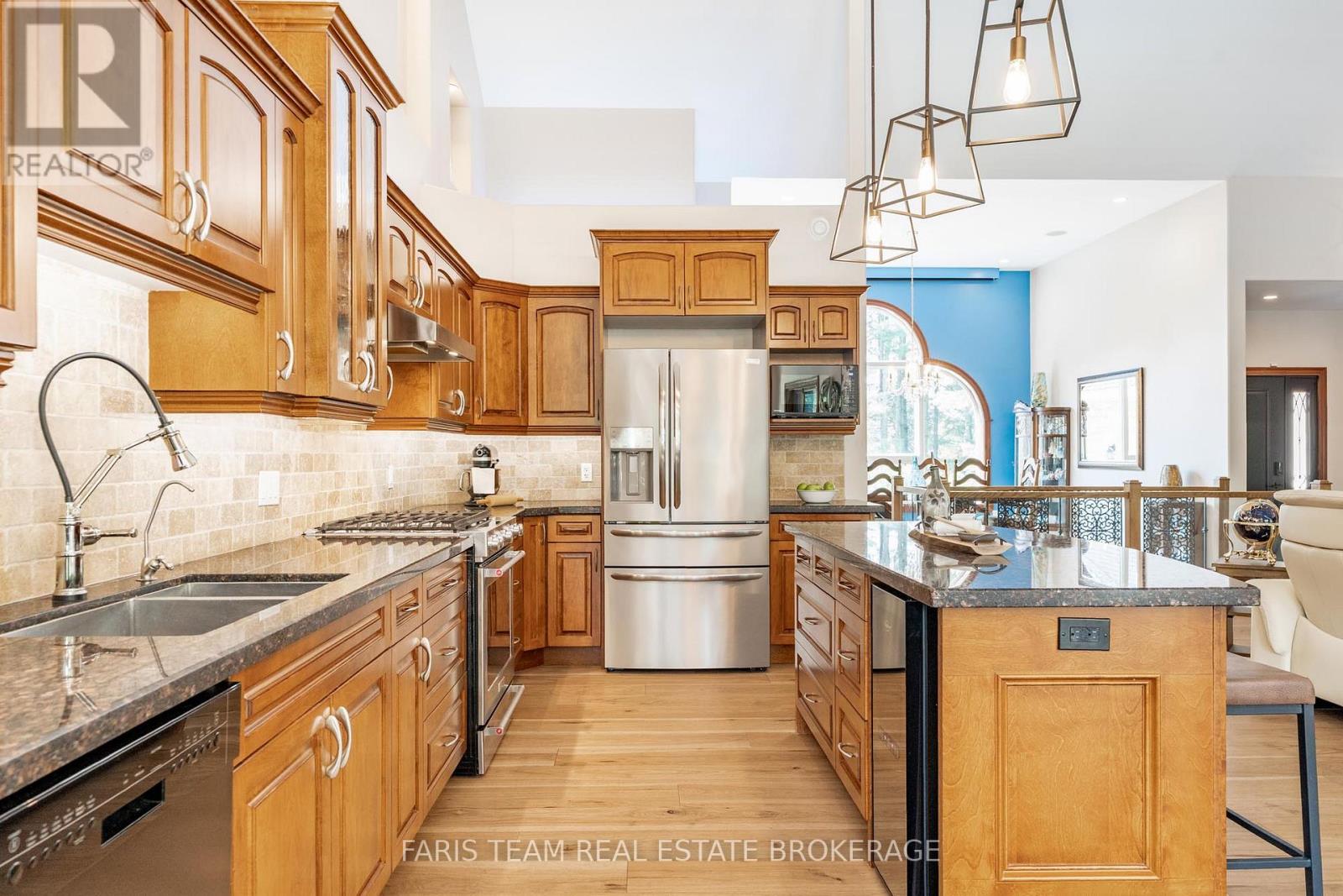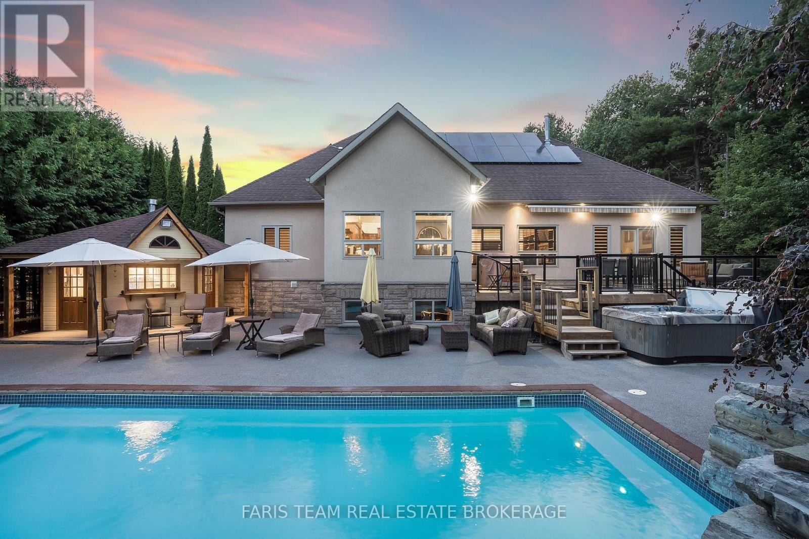 Top 5 Reasons You Will Love This Home: 1) Set on a stunning one-acre lot in a prestigious countryside enclave, this executive bungalow offers privacy, luxury, and a peaceful ravine backdrop with forever greenspace, your own quiet retreat complete with a saltwater pool 2) Step inside to discover refined finishes and thoughtful upgrades throughout, including vaulted ceilings, oak hardwood floors, high-end stone countertops, custom California shutters, built-in closet organizers, and dual sinks in the spa-like ensuite, with additional features such as owned solar panels, a built-in safe in the furnace room, a central vacuum system, auto-flush bidet toilet, and a full water softening and filtration system 3) Appreciate the ease of bungalow living with everything you need on one level, while the finished basement adds even more space to entertain, featuring a full games room, private theatre room, and direct access to the garage 4) Outdoors, the beautifully landscaped grounds include an irrigation system, upgraded decking, a new pool pump with robo-cleaner, smart exterior lighting, and additional highlights such as a newer heat pump and furnace (2021), new windows and garage door (2021), and front and rear security cameras 5) This turn-key, resort-style property presents comfort, technology, and luxury, offering a truly exceptional lifestyle inside and out. 2,334 above grade sq.ft. plus a finished basement. (id:53503)