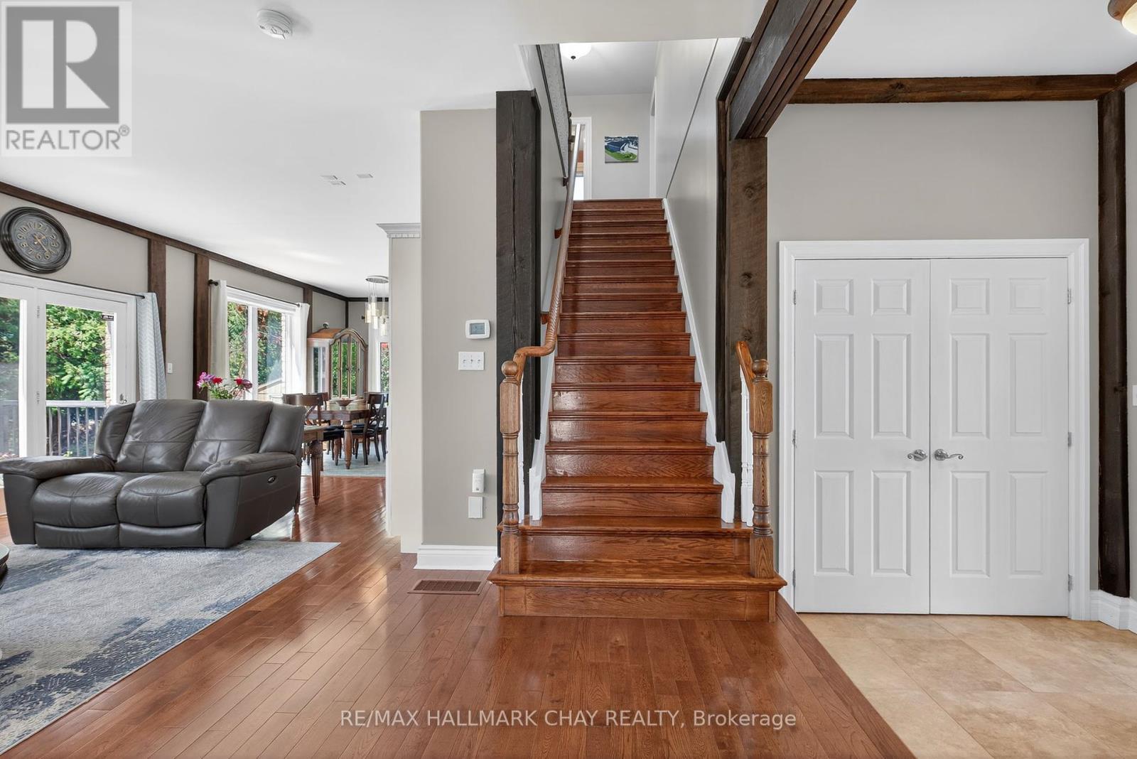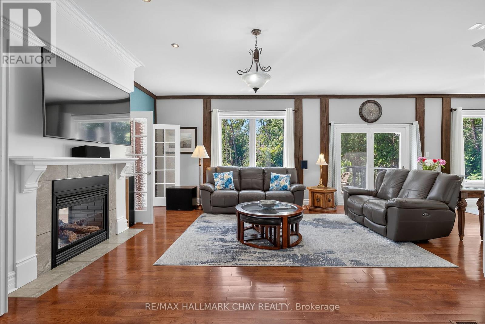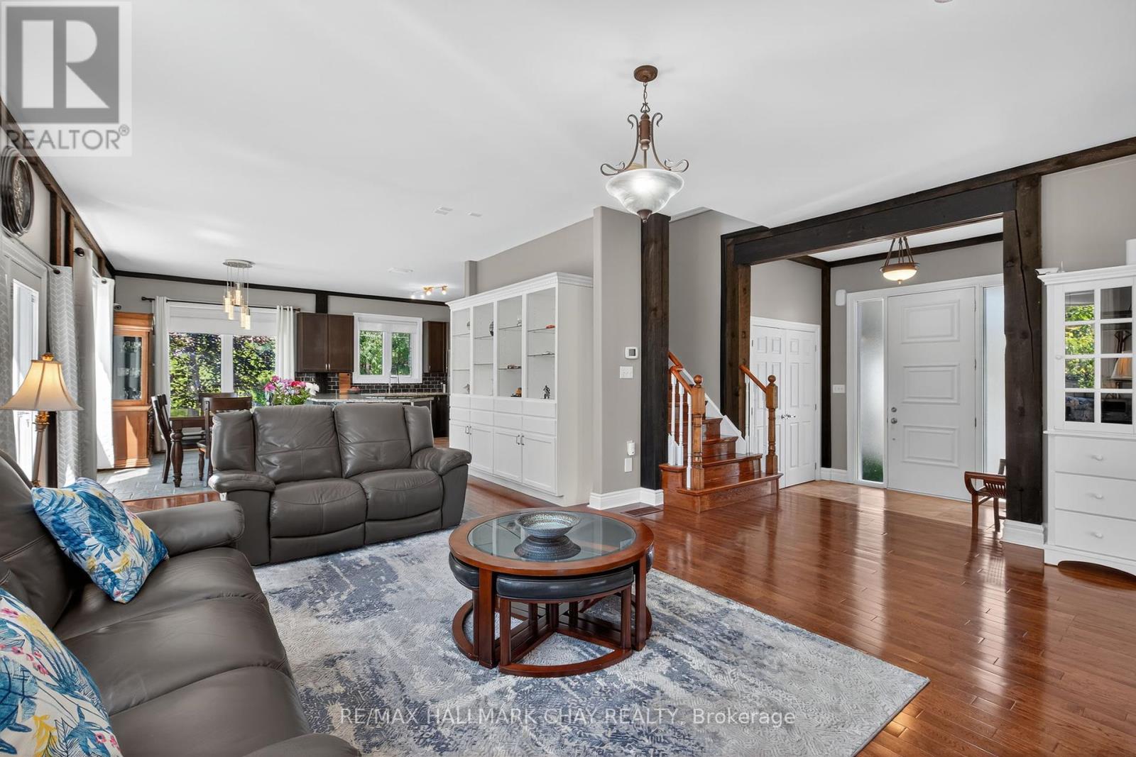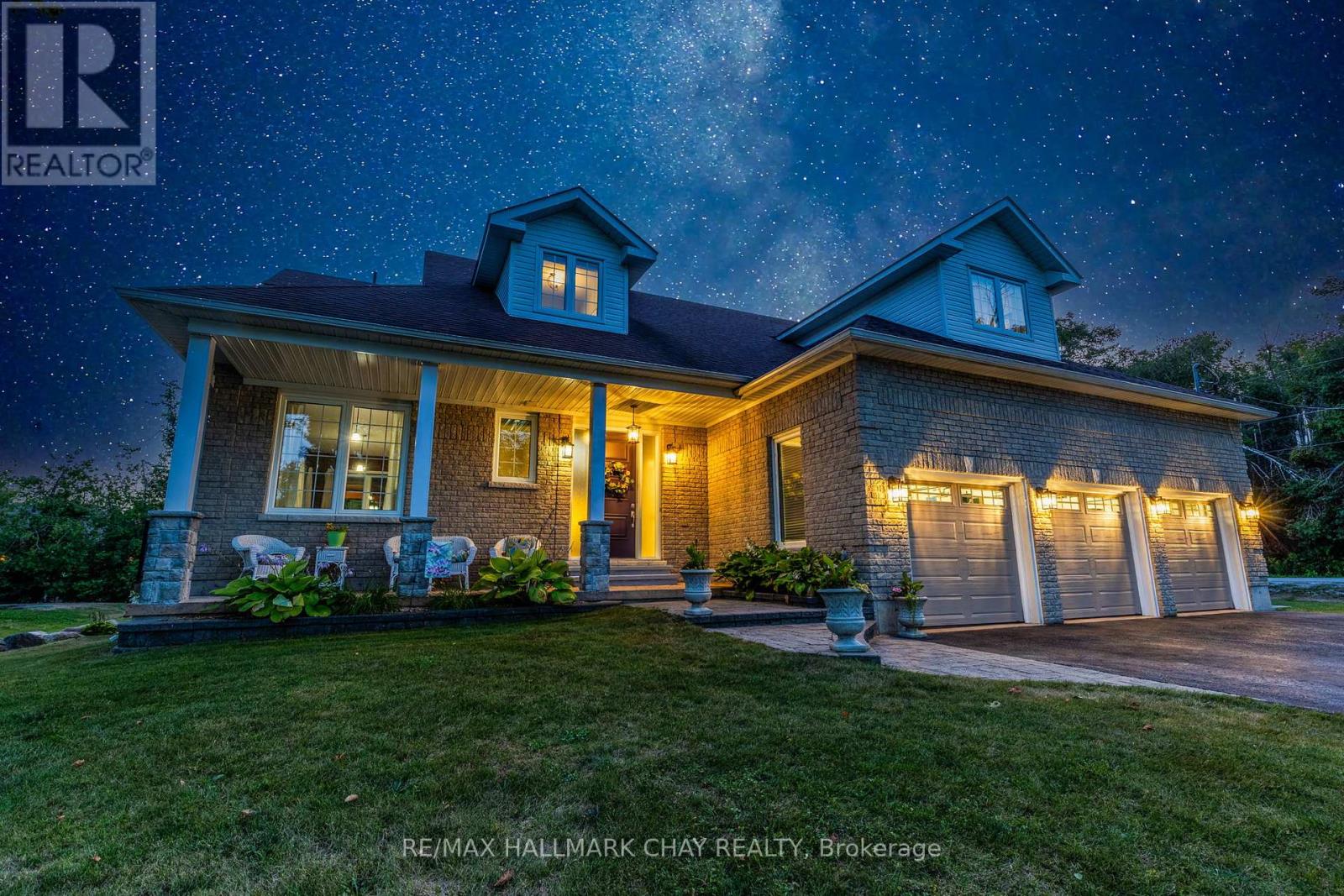 Pride Of Ownership Shines! Nestled on a rare 100 x 150 country lot in a sought-after location just minutes to Lake Simcoe, this custom-built 2-storey brick home offers 2,400 sq ft of finished space above grade plus an unfinished basement ready for your touch. Only 15 minutes to Barrie & 10 minutes to Orillia, it perfectly balances tranquility & convenience. Main floor boasts 9 ceilings, post & beam construction, oak hardwood throughout, and an open concept layout with large windows allowing natural light to flow. Family room features built-in cabinetry & a double-sided Napoleon gas fireplace, seamlessly connecting to a sunken sunroom with French doors & walkout to the backyard. Outdoor entertaining includes a 12 x 40 stained deck, pergola with lighting, glass railings, two sheds, fire pit & private green space. Chefs kitchen offers granite counters, 4-burner gas stove, dishwasher, 2022 LG fridge (ice/water) & a spacious walk-in pantry. Off the kitchen is direct access to the triple car garage, while a main floor powder room adds convenience. Upstairs offers 3 bedrooms with oak hardwood floors & ample closets. The primary suite has a walk-in closet & spa-like ensuite with heated floors, deep soaker tub & separate shower. A dedicated laundry with sink completes the upper level. Updates: 11 KW Generac with automatic DC start-up on natural gas (last serviced May 2025), R-60 attic insulation (2019), owned natural gas water heater, dual sump pumps on separate circuits, 200 AMP electrical, central vac, drilled well with full treatment system (2025), and roof reshingled (2019). Septic service booked for Sept 2025. Triple car garage provides 12-3 ceilings, insulated doors, painted walls & custom cabinetry. One bay with 13-3 ceiling fits a 4-post hoist & air compressor (available separately). Close to Trehaven Golf, regional airport, beaches, marinas & the Oro-Medonte Rail Trail. A rare blend of modern upgrades, country charm & everyday comfort! (id:53503)
