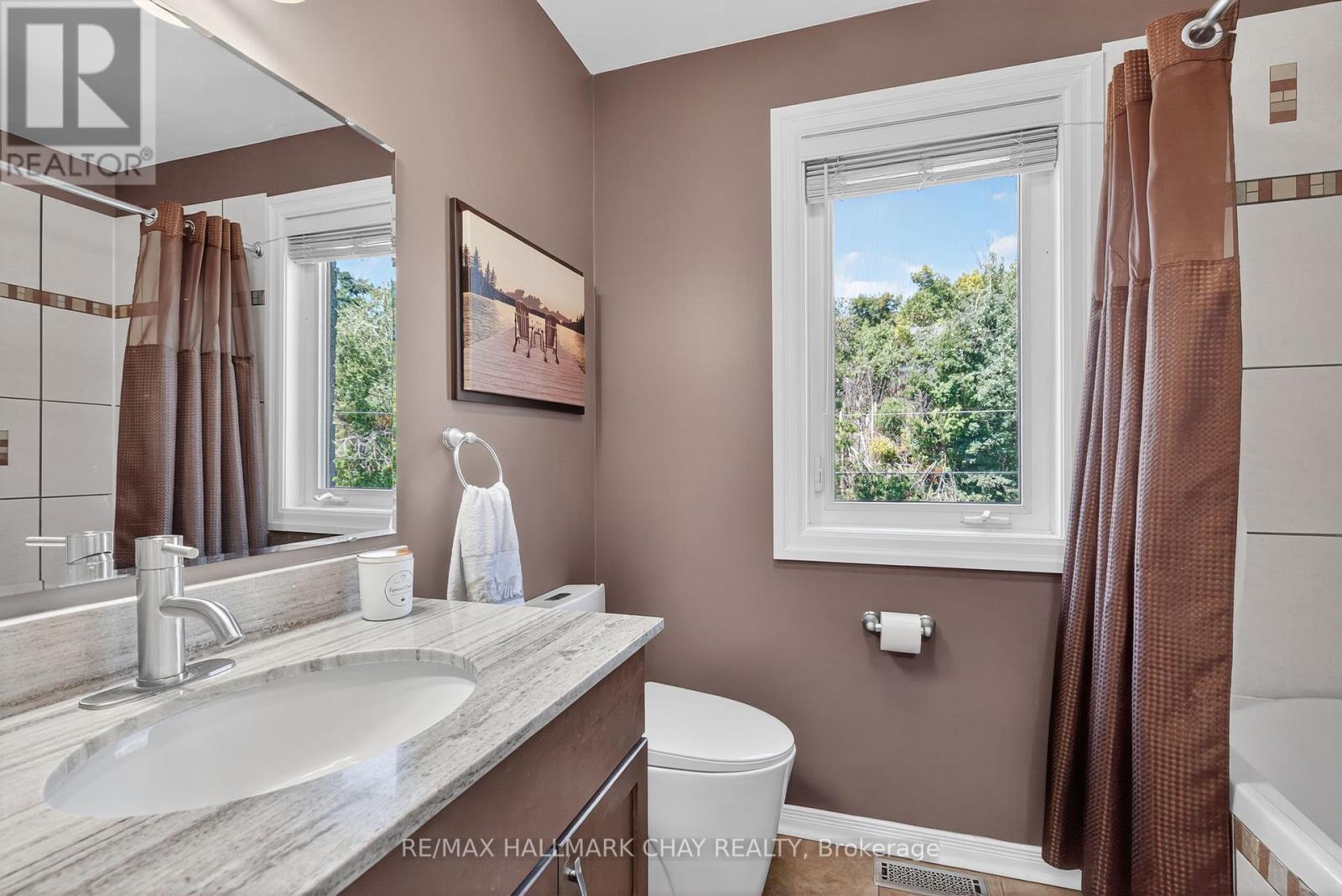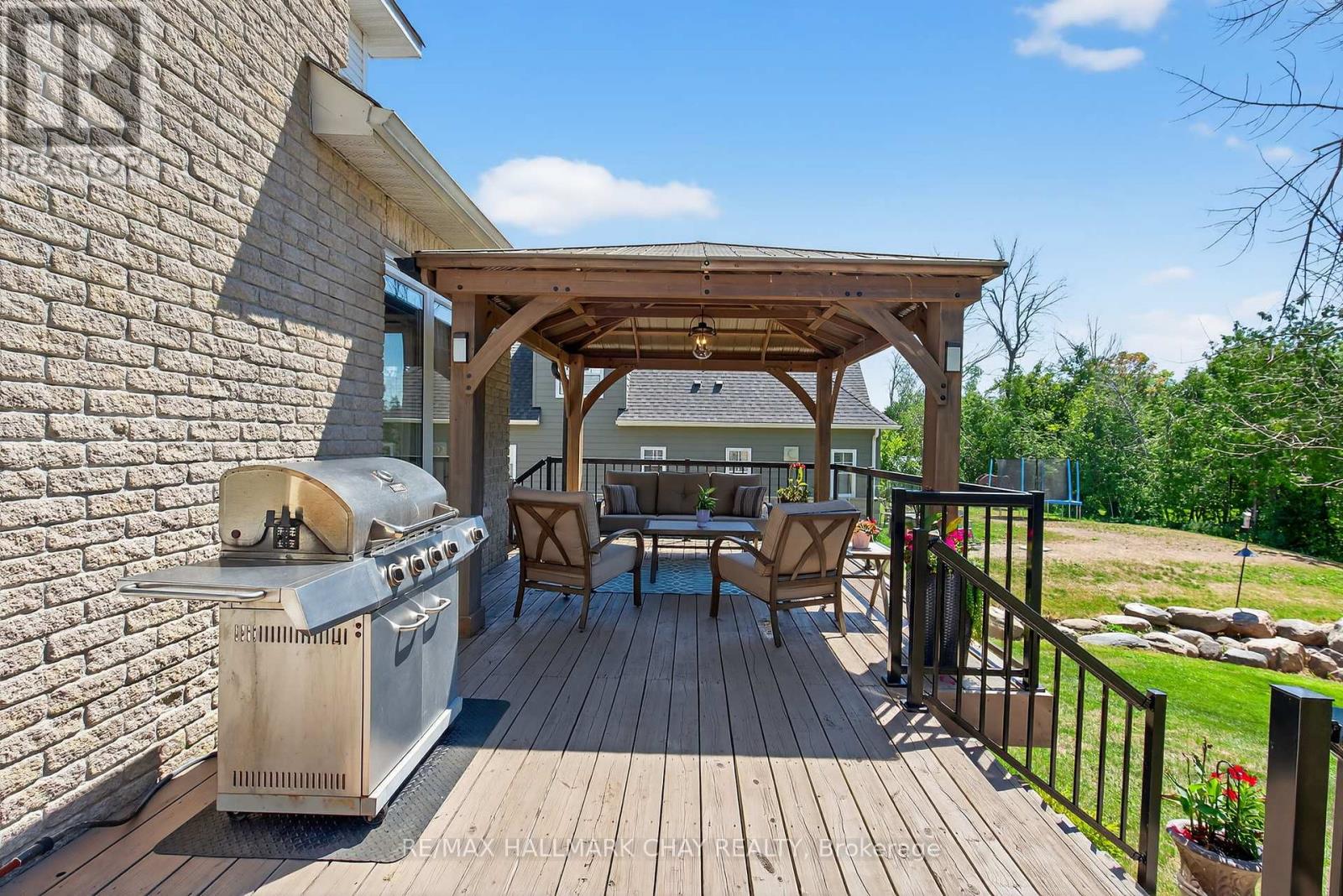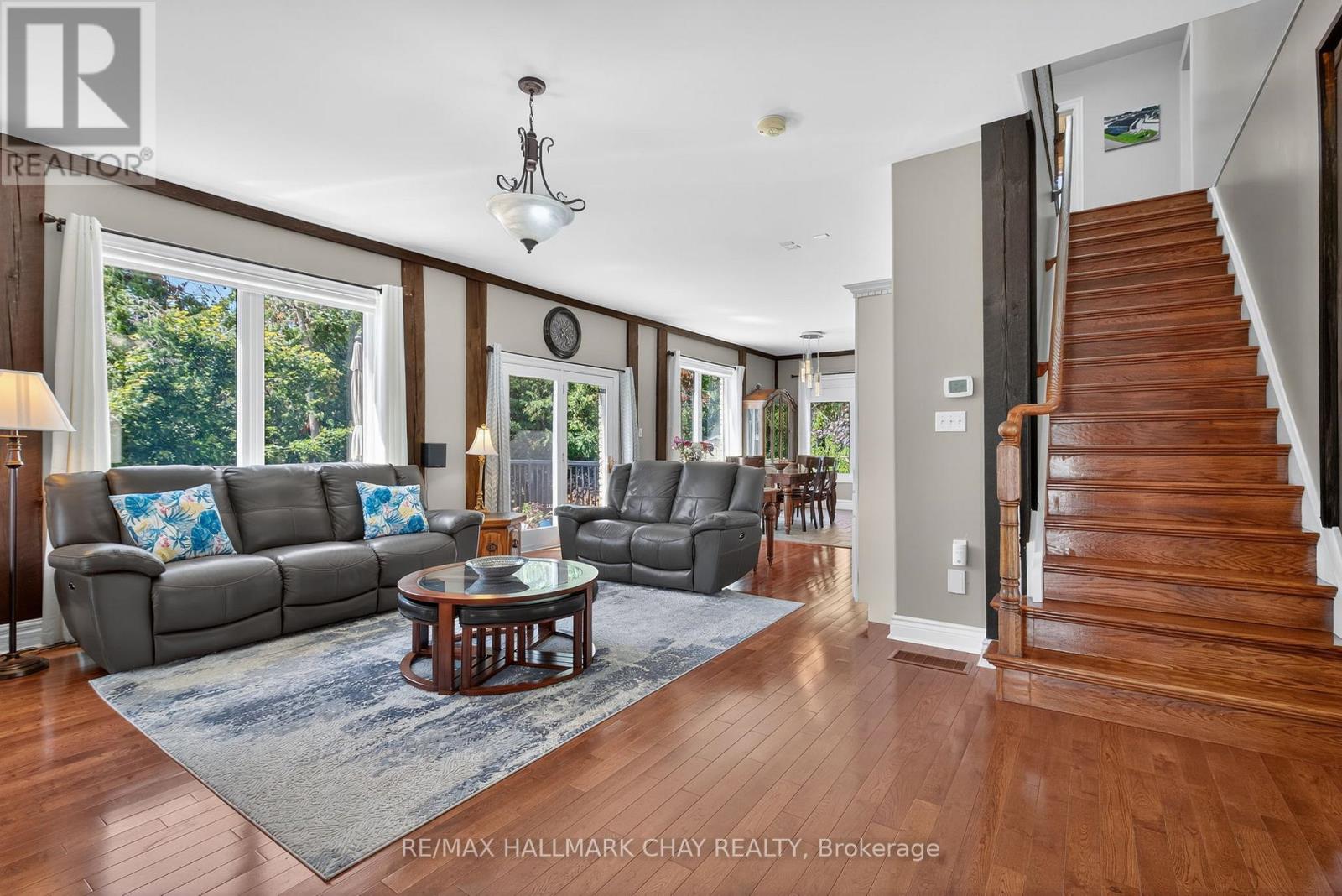 Pride Of Ownership Shines! Nestled on a rare 100 x 150 country lot in a sought-after location just minutes to Lake Simcoe, this custom-built 2-storey brick home offers 2,400 sq ft of finished space above grade plus an unfinished basement ready for your touch. Only 15 minutes to Barrie & 10 minutes to Orillia, it perfectly balances tranquility & convenience. Main floor boasts 9 ceilings, post & beam construction, oak hardwood throughout, and an open concept layout with large windows allowing natural light to flow. Family room features built-in cabinetry & a double-sided Napoleon gas fireplace, seamlessly connecting to a sunken sunroom with French doors & walkout to the backyard. Outdoor entertaining includes a 12 x 40 stained deck, pergola with lighting, glass railings, two sheds, fire pit & private green space. Chefs kitchen offers granite counters, 4-burner gas stove, dishwasher, 2022 LG fridge (ice/water) & a spacious walk-in pantry. Off the kitchen is direct access to the triple car garage, while a main floor powder room adds convenience. Upstairs offers 3 bedrooms with oak hardwood floors & ample closets. The primary suite has a walk-in closet & spa-like ensuite with heated floors, deep soaker tub & separate shower. A dedicated laundry with sink completes the upper level. Updates: 11 KW Generac with automatic DC start-up on natural gas (last serviced May 2025), R-60 attic insulation (2019), owned natural gas water heater, dual sump pumps on separate circuits, 200 AMP electrical, central vac, drilled well with full treatment system (2025), and roof reshingled (2019). Septic service booked for Sept 2025. Triple car garage provides 12-3 ceilings, insulated doors, painted walls & custom cabinetry. One bay with 13-3 ceiling fits a 4-post hoist & air compressor (available separately). Close to Trehaven Golf, regional airport, beaches, marinas & the Oro-Medonte Rail Trail. A rare blend of modern upgrades, country charm & everyday comfort! (id:53503)