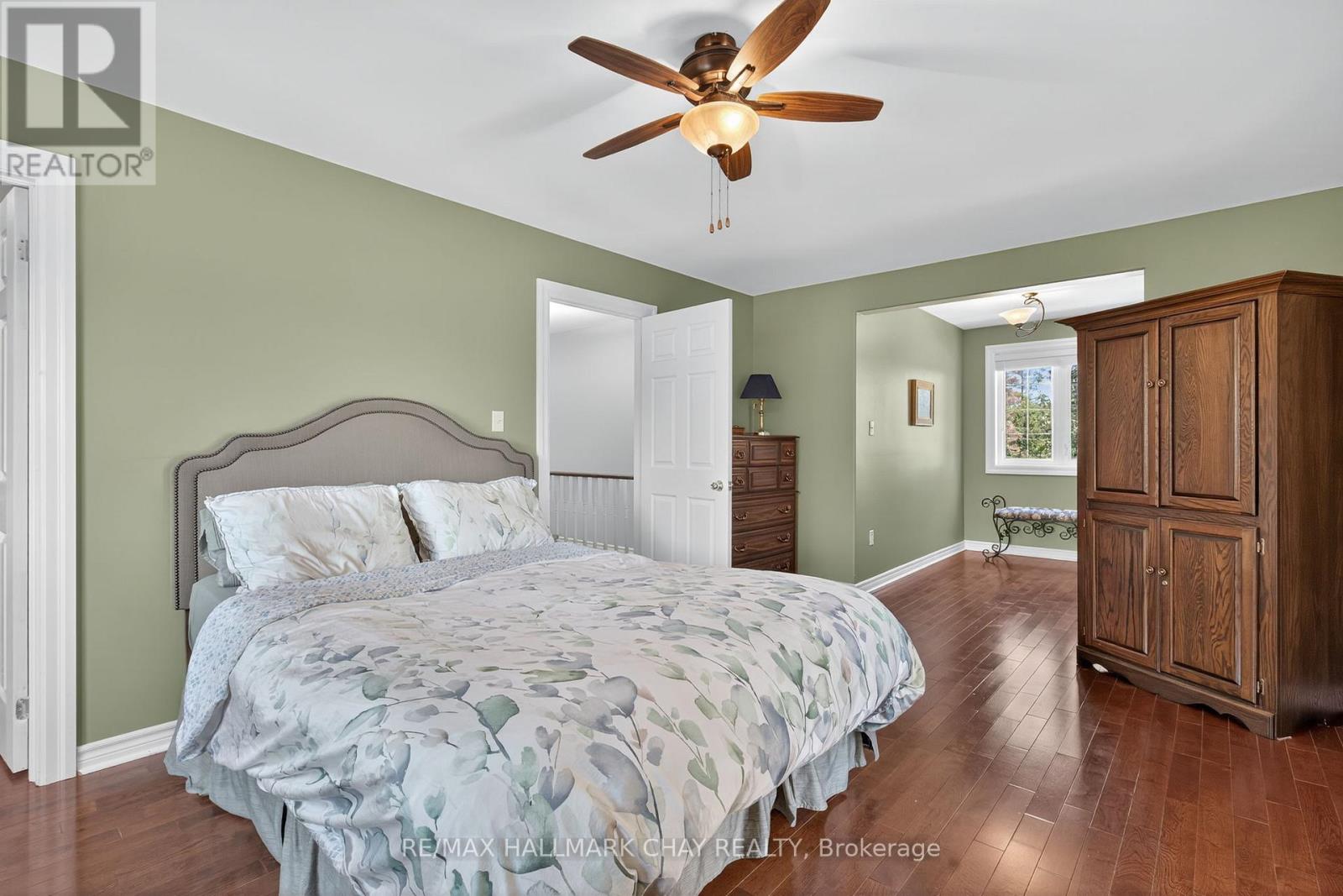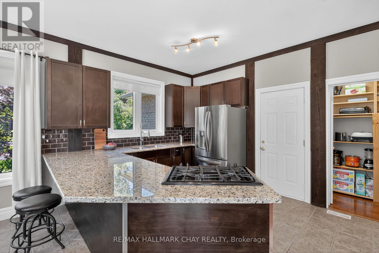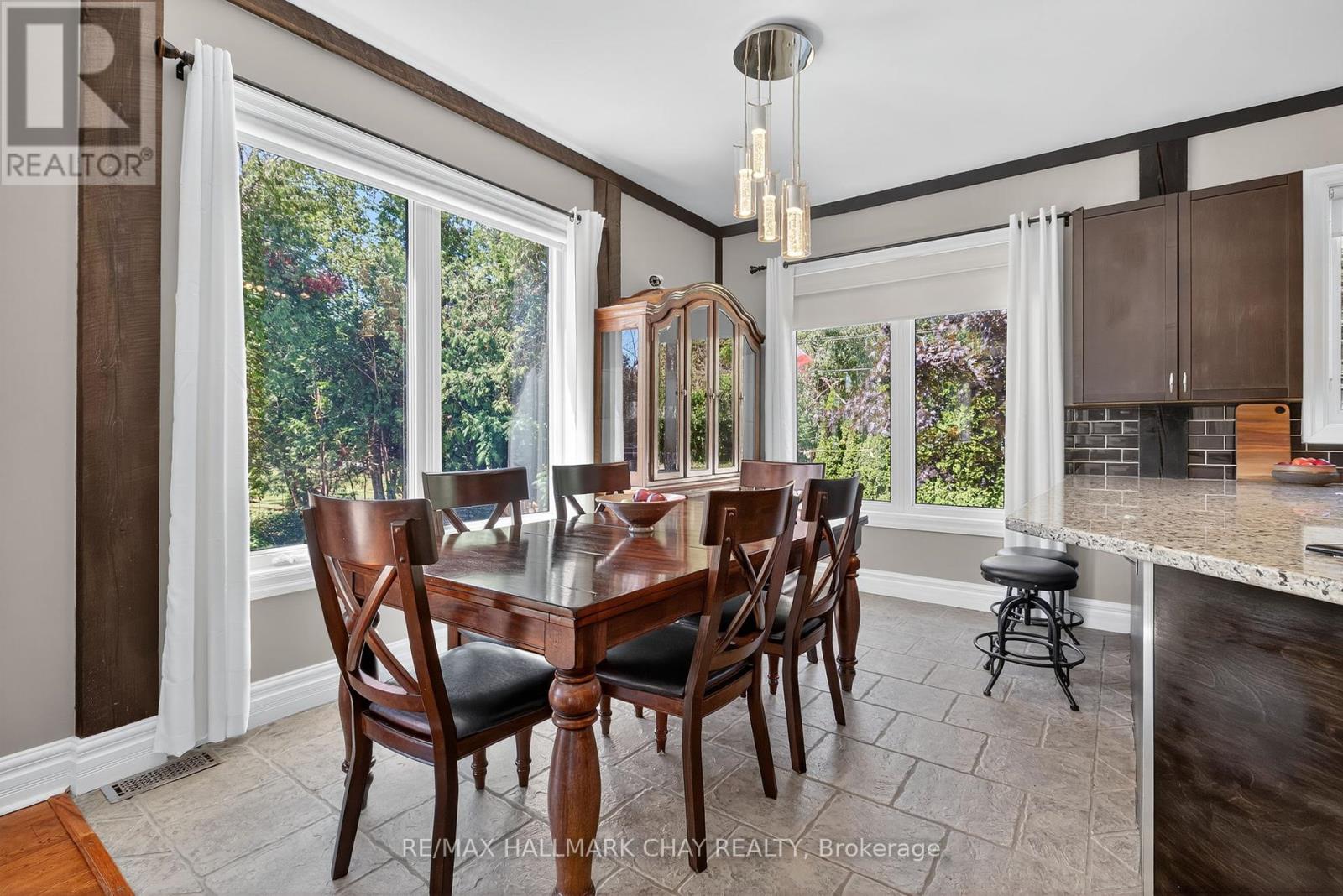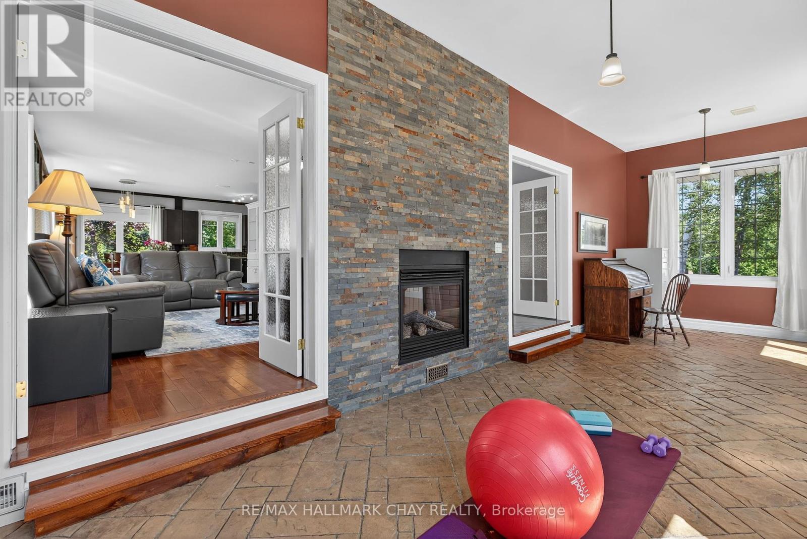 Pride Of Ownership Shines! Nestled on a rare 100 x 150 country lot in a sought-after location just minutes to Lake Simcoe, this custom-built 2-storey brick home offers 2,400 sq ft of finished space above grade plus an unfinished basement ready for your touch. Only 15 minutes to Barrie & 10 minutes to Orillia, it perfectly balances tranquility & convenience. Main floor boasts 9 ceilings, post & beam construction, oak hardwood throughout, and an open concept layout with large windows allowing natural light to flow. Family room features built-in cabinetry & a double-sided Napoleon gas fireplace, seamlessly connecting to a sunken sunroom with French doors & walkout to the backyard. Outdoor entertaining includes a 12 x 40 stained deck, pergola with lighting, glass railings, two sheds, fire pit & private green space. Chefs kitchen offers granite counters, 4-burner gas stove, dishwasher, 2022 LG fridge (ice/water) & a spacious walk-in pantry. Off the kitchen is direct access to the triple car garage, while a main floor powder room adds convenience. Upstairs offers 3 bedrooms with oak hardwood floors & ample closets. The primary suite has a walk-in closet & spa-like ensuite with heated floors, deep soaker tub & separate shower. A dedicated laundry with sink completes the upper level. Updates: 11 KW Generac with automatic DC start-up on natural gas (last serviced May 2025), R-60 attic insulation (2019), owned natural gas water heater, dual sump pumps on separate circuits, 200 AMP electrical, central vac, drilled well with full treatment system (2025), and roof reshingled (2019). Septic service booked for Sept 2025. Triple car garage provides 12-3 ceilings, insulated doors, painted walls & custom cabinetry. One bay with 13-3 ceiling fits a 4-post hoist & air compressor (available separately). Close to Trehaven Golf, regional airport, beaches, marinas & the Oro-Medonte Rail Trail. A rare blend of modern upgrades, country charm & everyday comfort! (id:53503)