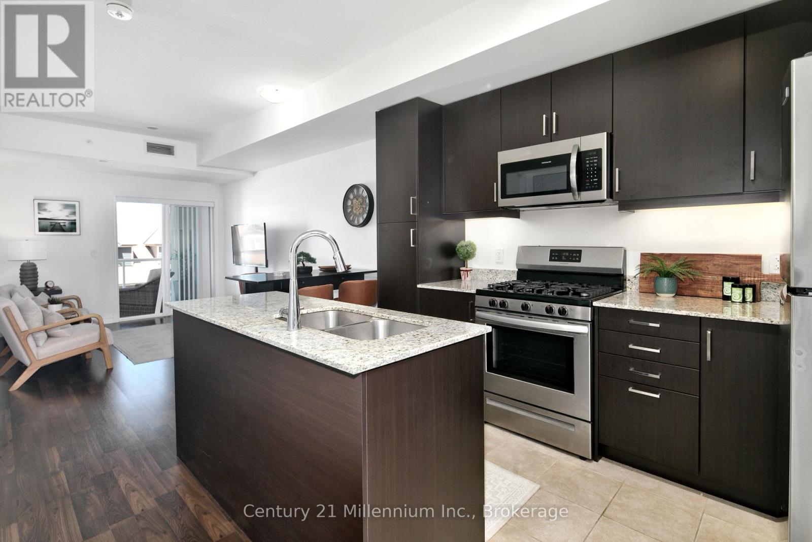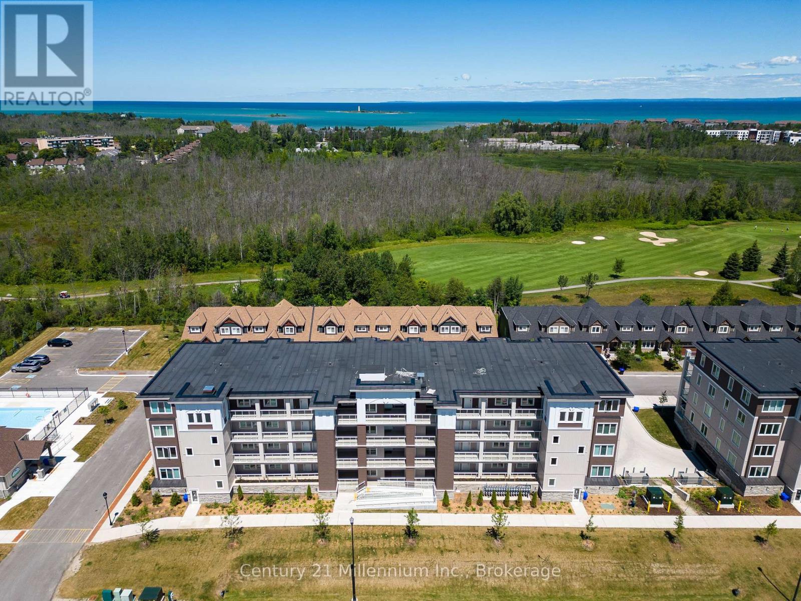 Condo Living At The Most Affordable Price in the Building! The Eagle model offers a bright, open-concept 2-bedroom, 2-bathroom condo with 9-foot ceilings, modern finishes, and a spacious 17'x 8' balcony with a glass railing perfect for BBQs or enjoying panoramic views of Blue Mountain and the golf course. The stylish kitchen includes granite countertops and stainless steel appliances, while the primary bedroom boasts a chic ensuite with a glass shower. Thoughtful touches like in-suite laundry, private parking, guest parking, elevator access, and a heated breezeway during winter months make life even more convenient. The unit also includes an oversized private storage room measuring 8 ft long by 5.5ft wide by 9.5 ft tall perfect for ski equipment, golf clubs, bicycles, or paddle boards. Residents can enjoy access to fantastic amenities like a fitness center and outdoor pool, making this an ideal home for year-round or weekend living. Best of all, you're just minutes from golf, beaches, trails, downtown Collingwood, and Blue Mountain Village without the premium price tag. (id:53503)