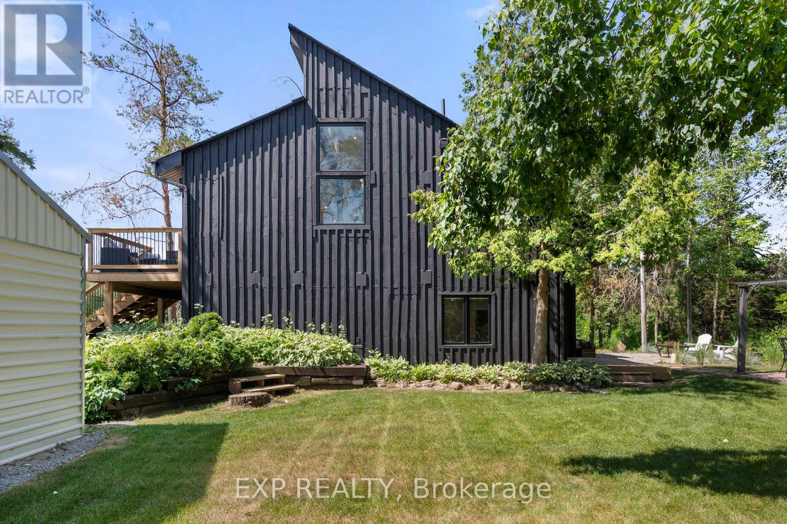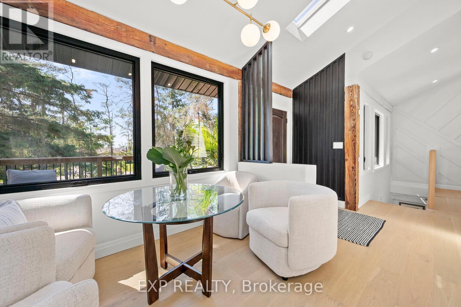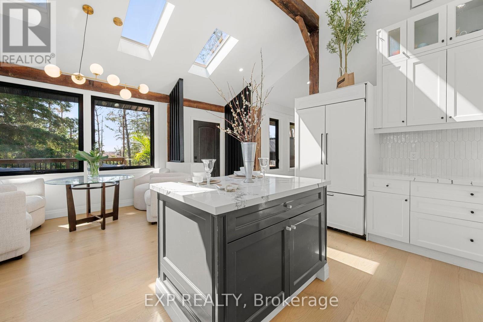 Nestled in the serene enclave of rural Oro Medonte, this beautifully renovated 1+2 beds chalet style retreat offers the perfect fusion of rustic charm and contemporary elegance. Steeped in Character, yet thoughtfully updated, 1800sq ft of fully finished living space, this home presents an exceptional lifestyle opportunity just steps from the lake. Rich vaulted ceilings with exposed wood beams, expansive windows and chalet-style design elements flood the home with natural light and warmth. The kitchen is the heart of the home, and features stainless steel/built-in appliances, quartz countertops and custom cabinetry. The primary suite/ensuite will make you want to stay and never leave. Enjoy cozy nights by the newer wood stove while watching movies or just hanging out with the family. Don't miss this unique opportunity in an amazing family friendly neighborhood. Recent updates (all 2023)include: HVAC, shingles, central vac, 200 amp panel, Windows, bathrooms & flooring throughout. (id:53503)