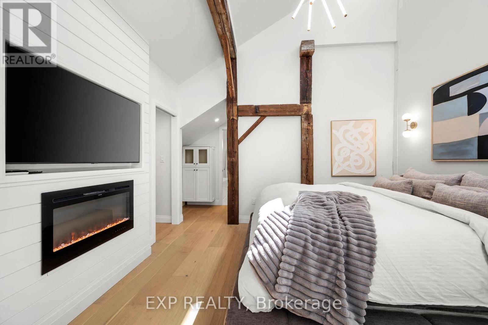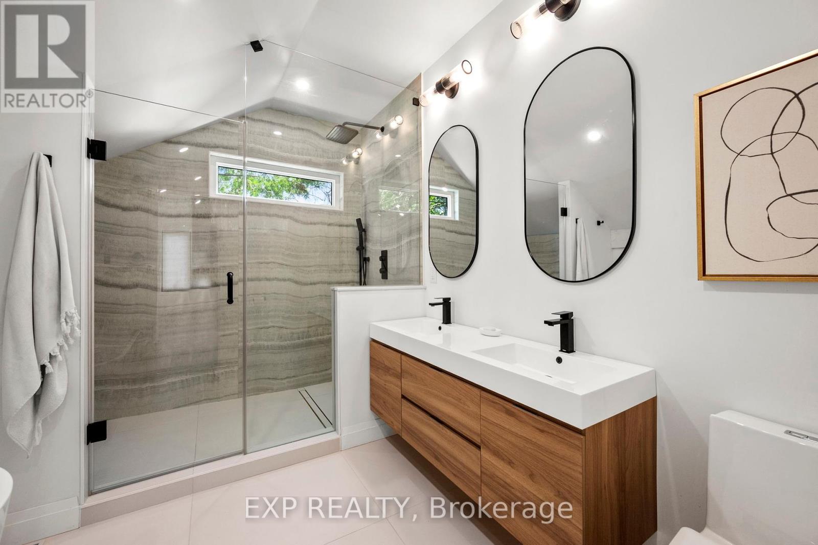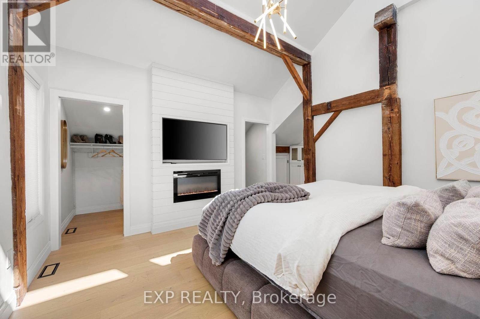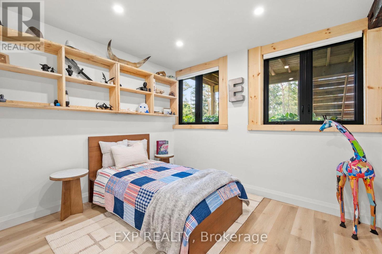 Nestled in the serene enclave of rural Oro Medonte, this beautifully renovated 1+2 beds chalet style retreat offers the perfect fusion of rustic charm and contemporary elegance. Steeped in Character, yet thoughtfully updated, 1800sq ft of fully finished living space, this home presents an exceptional lifestyle opportunity just steps from the lake. Rich vaulted ceilings with exposed wood beams, expansive windows and chalet-style design elements flood the home with natural light and warmth. The kitchen is the heart of the home, and features stainless steel/built-in appliances, quartz countertops and custom cabinetry. The primary suite/ensuite will make you want to stay and never leave. Enjoy cozy nights by the newer wood stove while watching movies or just hanging out with the family. Don't miss this unique opportunity in an amazing family friendly neighborhood. Recent updates (all 2023)include: HVAC, shingles, central vac, 200 amp panel, Windows, bathrooms & flooring throughout. (id:53503)