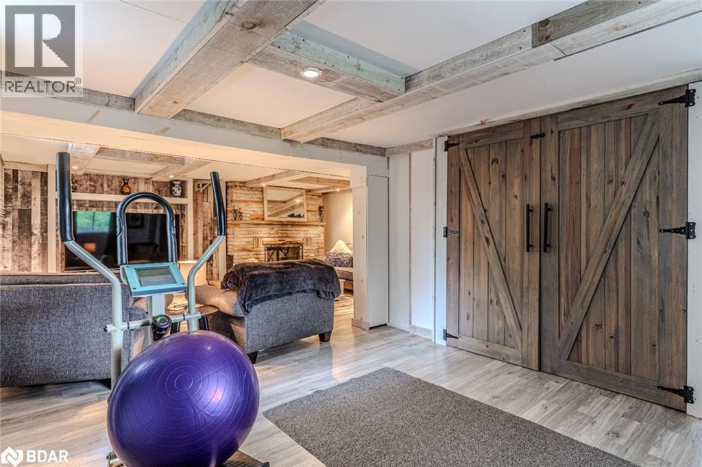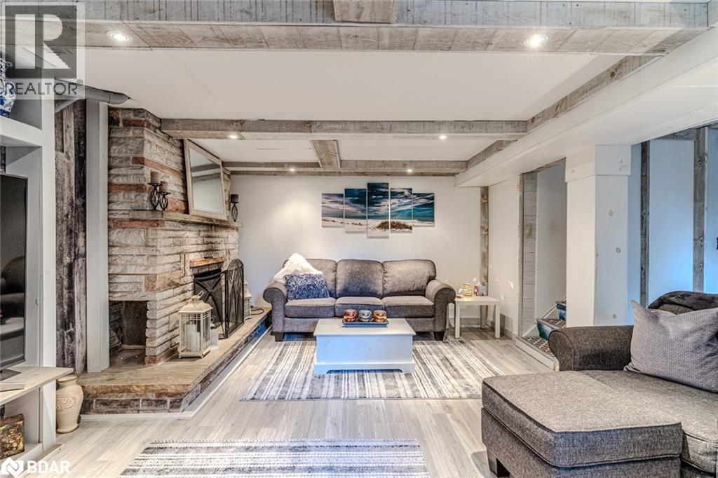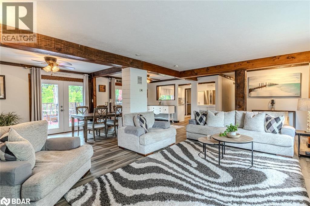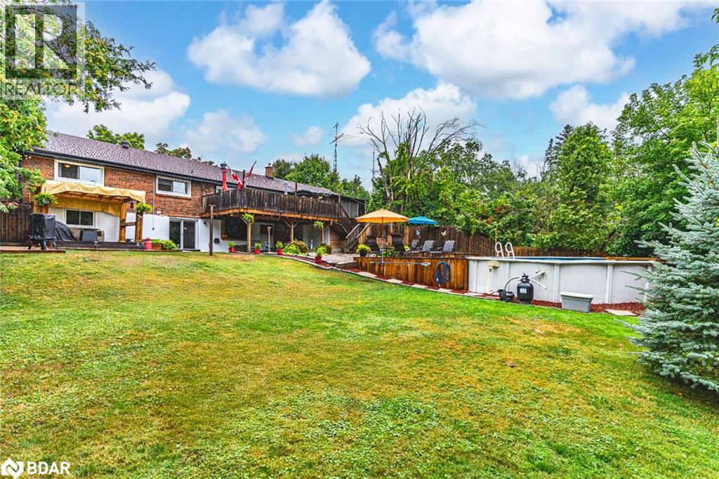 PRIVATE SHANTY BAY SHOWSTOPPER WITH AN ABOVE-GROUND POOL, WALKOUT BASEMENT, & A BACKYARD BUILT FOR ENTERTAINING! Discover the lifestyle you’ve been waiting for with this fully finished bungalow in coveted Shanty Bay, where peaceful forested surroundings and no rear neighbours create a private retreat just minutes from Barrie. Surrounded by natural beauty and year-round recreation, with easy access to Lake Simcoe, parks, schools, golf, trails, beaches and skiing, this home is perfectly positioned to be enjoyed year-round. Step into a beautifully landscaped property with stone accents, lush gardens, and generous green space, then relax or entertain in the fully fenced backyard with its gazebo lounge, expansive deck and patio, and sparkling above-ground pool. The crescent driveway provides ample parking and the space to build a new garage, or easily convert the existing mudroom back into a garage if desired. Inside, soaring exposed beams, oversized windows and dual walkouts to the deck fill the open-concept main floor with light, while a cozy fireplace anchors the inviting living space. Three spacious bedrooms, including a serene primary retreat overlooking the forest, provide comfort for family and guests, complemented by a stylish 4-piece bath with a dual vanity and a modern glass-enclosed shower. The versatile walkout basement offers abundant living space with two recreation rooms, a family room, a den, a full 4-piece bath, and a wet bar with pantry storage, making it ideal for entertaining, extended family living, or in-law suite potential. With major updates already completed - including furnace, roof, eavestroughs, soffits, windows, and doors - plus the added value of an owned water heater and softener, this move-in ready home provides exceptional value and lasting peace of mind. Don’t miss your chance to call this private Shanty Bay #HomeToStay your own and start enjoying everything this incredible four-season community has to offer! (id:53503)