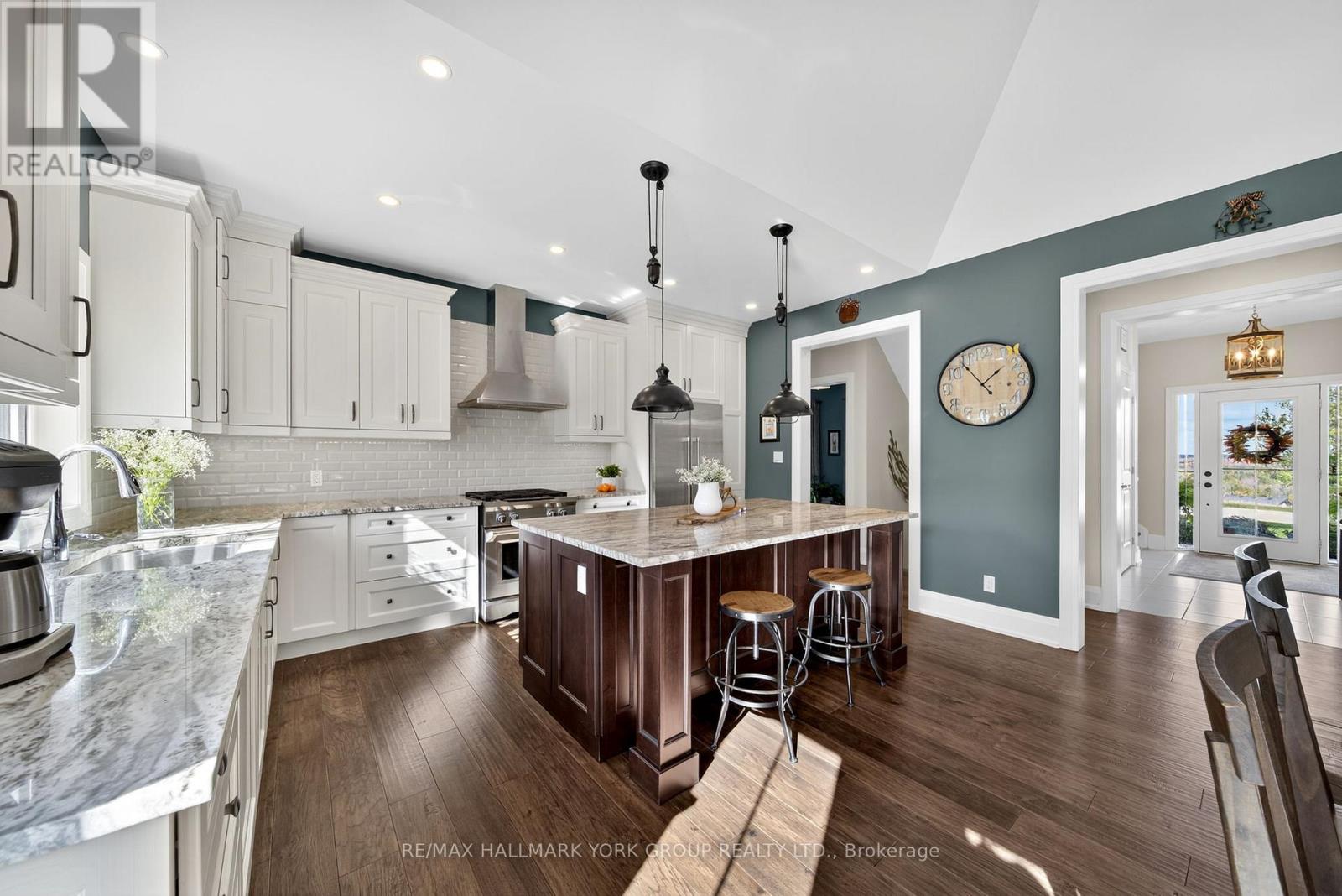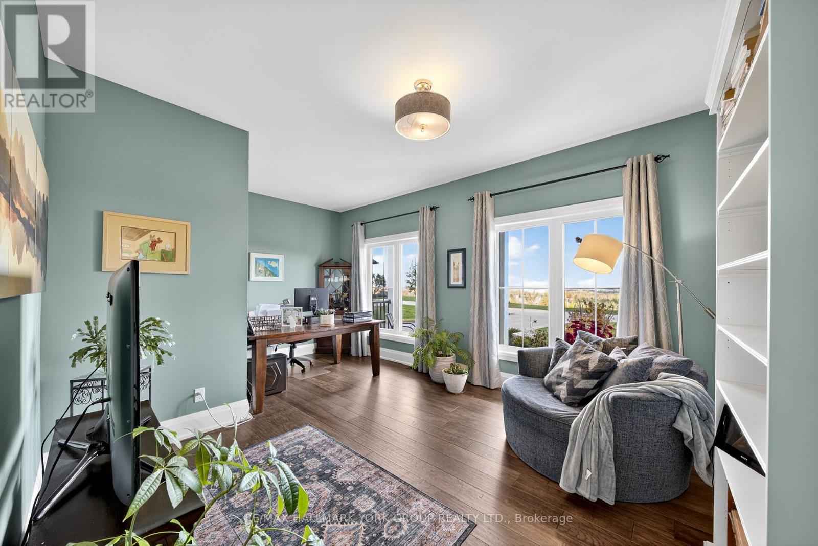 $103.87 MonthlyOPEN HOUSE ON SUNDAY OCT 26TH 12-2 PM! Perfectly set on a beautifully landscaped half-acre lot, this executive home combines elegance, comfort, & functionality in a setting embraced by nature. From the moment you arrive, you'll be drawn to the inviting covered front porch, gardens, & impressive glass front door entry that creates a warm, welcoming first impression. Open-concept main floor is designed for modern family living, featuring a seamless flow between the great room, dining area, & kitchen. The great room impresses with soaring cathedral ceilings, a stone-surround gas fireplace, & Juliette balcony above. The chef's kitchen is both stylish & functional, with a large centre island, granite countertops, undermount lighting, stainless steel appliances, & garden doors to a patio, pergola, & composite deck with glass railing-perfect for family gatherings & entertaining. The main floor primary suite is a private retreat, boasting a generous w/in closet with custom built-ins & spa-inspired 5-piece ensuite with soaker tub, glass shower, & heated floors. A sophisticated home office (possible 5th bedrm), 2-piece powder rm, & main floor laundry w/direct access to the oversized 2-car garage with epoxy flooring & abundant storage complete the level. Upstairs features two bright, spacious bedrooms with double closets & a luxurious 5-piece bath. The finished basement is a true extension of the home's living space, offering in-law potential, a welcoming rec room w/custom bookcase, gas fireplace & built-in cabinets w/beverage fridge, a separate exercise area, & ample storage space. The media room is perfect for hobbies, family movie nights, or a quiet retreat. Residents enjoy scenic walking trails, skating, skiing at your doorstep, & exclusive access to Braestone Farms for fresh produce & seasonal community events like the Maple Syrup Festival & Summer Concerts. A rare combo of refined luxury, family-focused living & a lifestyle immersed in nature in a most coveted community. (id:53503)