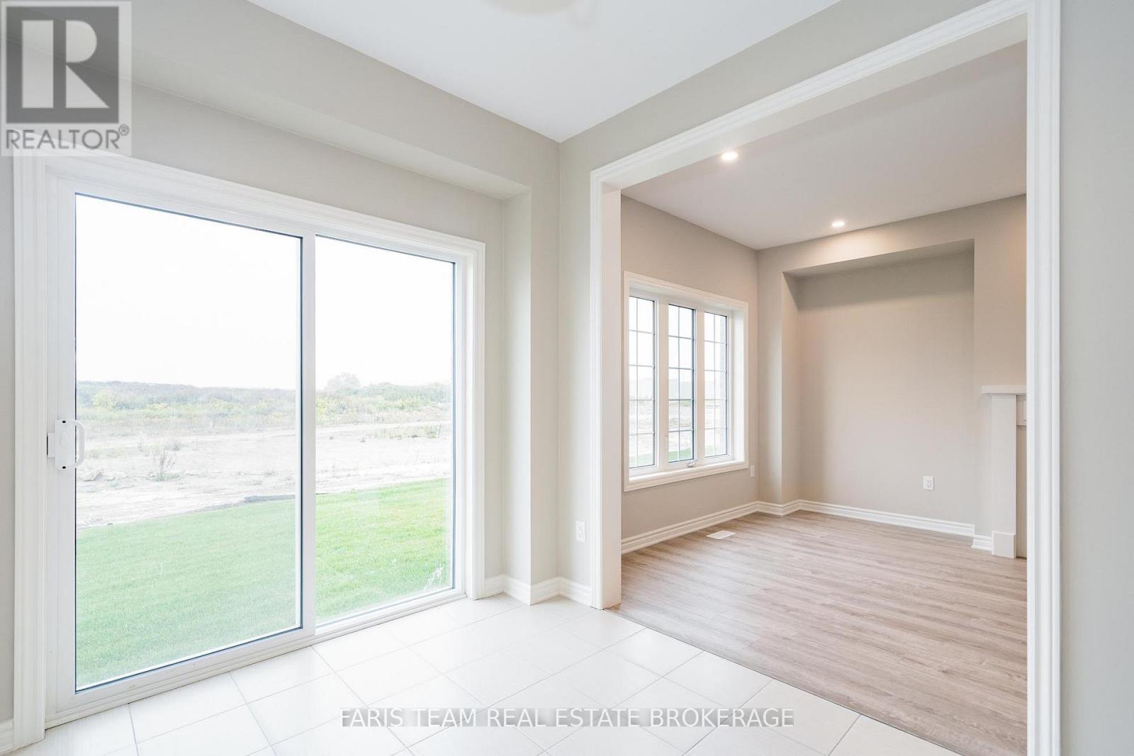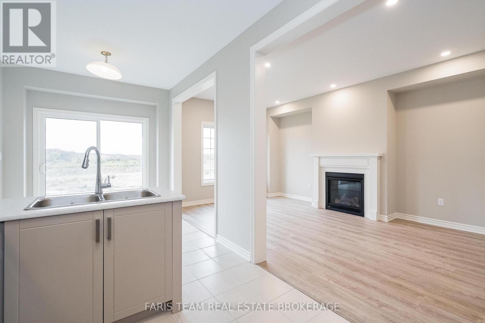 Top 5 Reasons You Will Love This Home: 1) Situated in a family-friendly neighbourhood in the heart of Stayner, this brand-new all-brick home is located in a welcoming community close to schools, grocery stores, downtown shopping, local cafes, and restaurants, making it the perfect spot for families 2) Bright and spacious with over 1,800 square feet of beautifully finished living space, the welcoming foyer with a practical coat closet flows into a stunning open-concept main level, complete with an inviting living room with a cozy gas fireplace, perfect for family game nights, while the adjacent dining area with patio doors extends entertaining seamlessly into the backyard 3) Enjoy cooking in the stylish, modern kitchen, featuring brand-new stainless-steel appliances, expansive counterspace, sleek finishes, and plenty of cabinetry, along with a main level laundry with convenient garage access, and a well-appointed two-piece bathroom 4) Upstairs, the oversized primary bedroom is a true retreat with large windows, a walk-in closet, and a luxurious 5-piece ensuite featuring a corner soaker tub, glass walk-in shower, and double sinks, while the two additional spacious bedrooms and another full bathroom provide comfort and privacy for the whole family 5) The unfinished basement includes a rough-in for a bathroom with ample space to design as you wish, whether that be a recreation room, home gym, or in-law suite; outside, enjoy a double-car garage, fresh sod, a transferable Tarion warranty for peace of mind, all while being centrally located and just a short drive to Wasaga Beach, Collingwood, golf courses, ski hills, Blue Mountain, and within easy commuting distance. 1,842 above grade sq.ft. plus an unfinished basement. *Please note some images have been virtually staged to show the potential of the home. (id:53503)