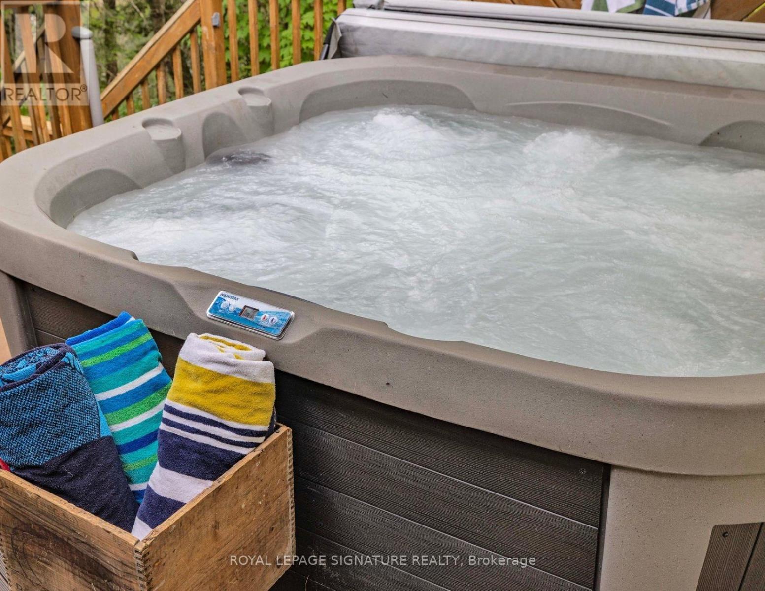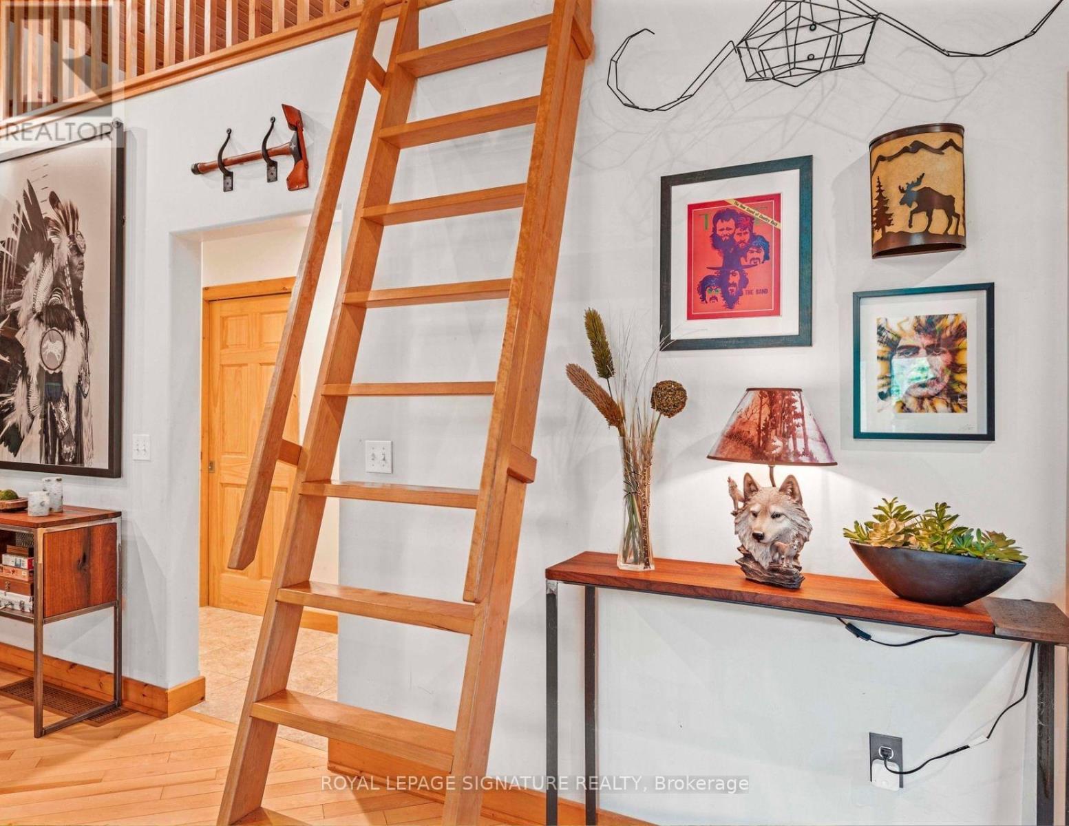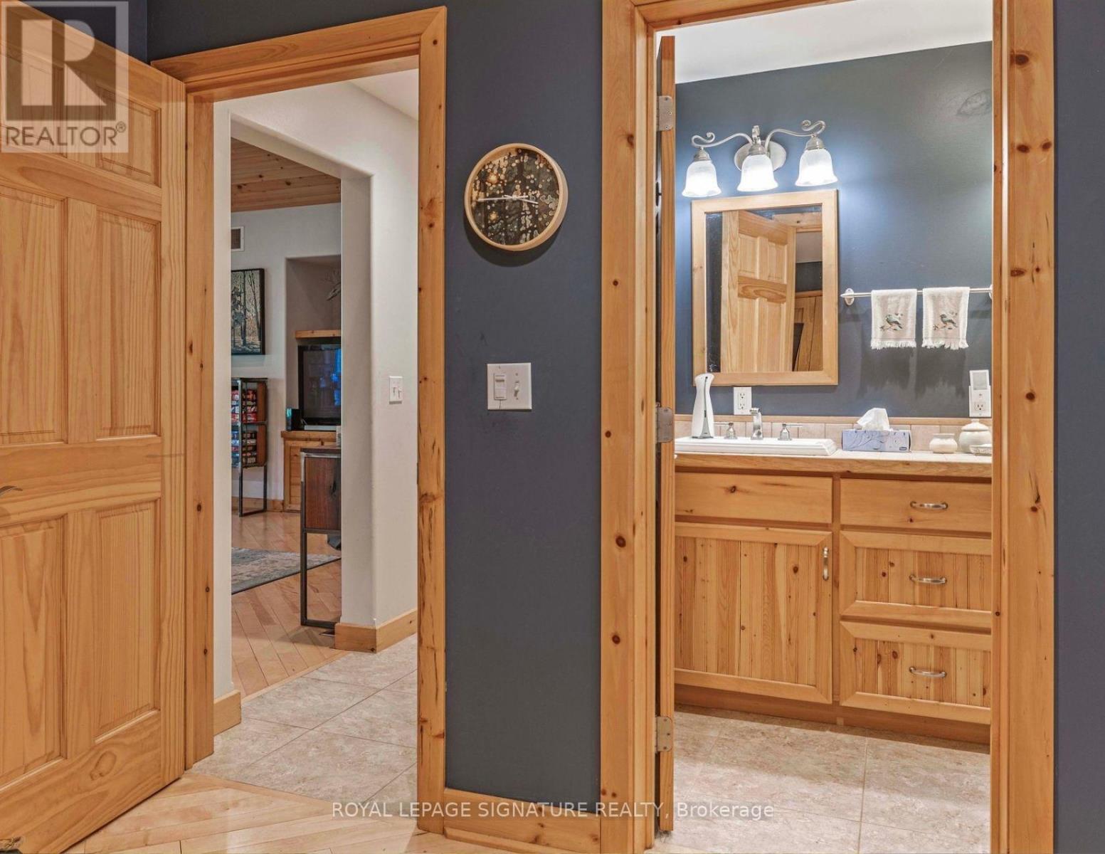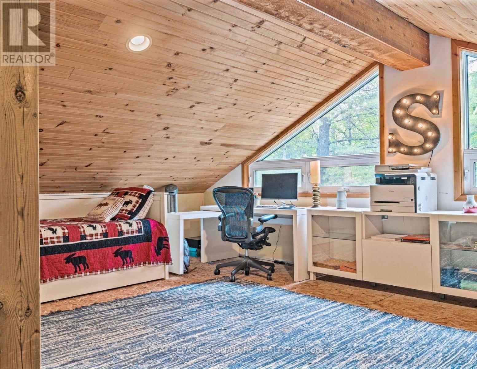 WATERFRONT HOME. *ALL FURNITURE INCLUDED. Experience the tranquility of waterfront living with stunning elevated views from this beautiful home located on the Severn (Green) River in WASHAGO. This private residence features three large bedrooms and three bathrooms, providing ample space for family and guests. The light-filled open-concept great room seamlessly connects to the kitchen and dining area, showcasing a striking cathedral tongue and groove pine ceiling complemented by hardwood and ceramic flooring. The beautiful stone wood burning fireplace adds warmth to the living space, perfect for cozy evenings. The versatile upper loft offers additional living space that can be adapted to suit your needs, whether as a home office, play area, or guest retreat. Spacious bathrooms feature large tiled walk-in showers for a touch of luxury. Enjoy effortless indoor/outdoor living with walkouts that lead to a tranquil decks and the screened-in porch, where you can soak in the hot tub and take in the amazing tree top views overlooking the river. The property boasts 81 feet of waterfront, complete with a dock for your boating adventures and a large detached garage with windows + electric garage door for convenient storage. Located just 10 minutes North of Orillia, 1.5 Hours to GTA via 400 on a paved municipally maintained road, across from the Alexander Hope Smith Nature Reserve. Easy access to HWY 11 and central in Simcoe/Muskoka for a variety of recreation activities, close to Casino Rama, Centennial Park, Mount St. Louis, shopping, restaurants,entertainment and so much more. Don't miss the opportunity to make this stunning waterfront home your own and embrace a lifestyle of peace and beauty on the River! Don't miss the virtual tour! (id:53503)