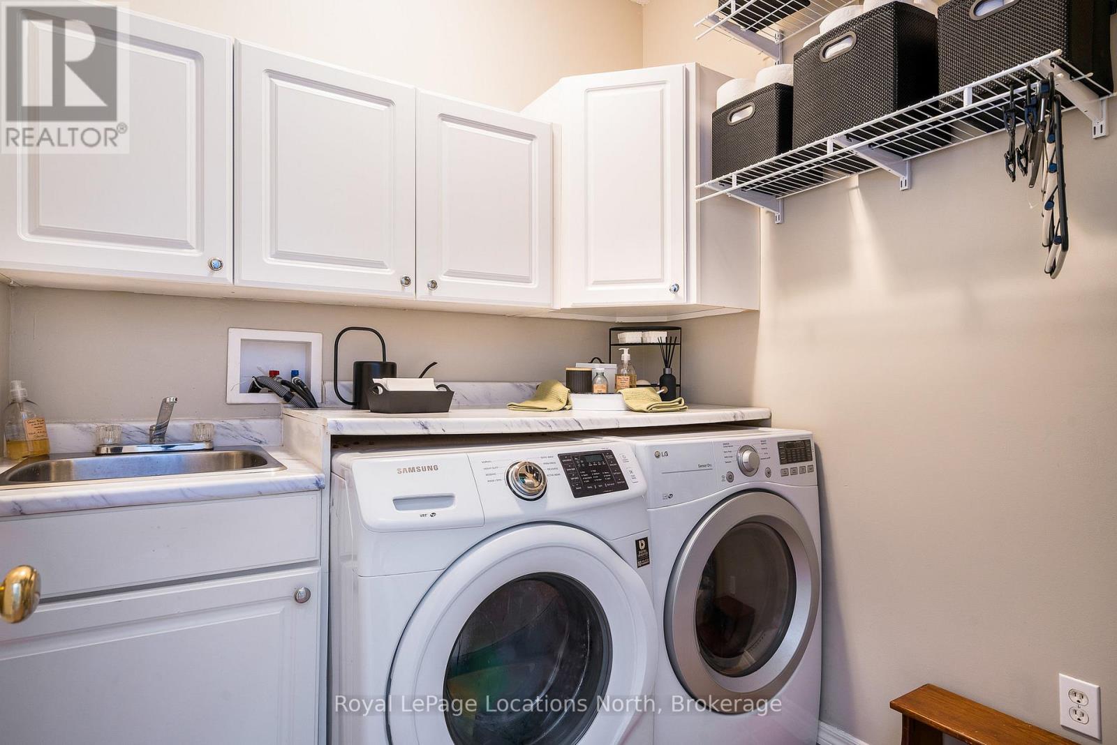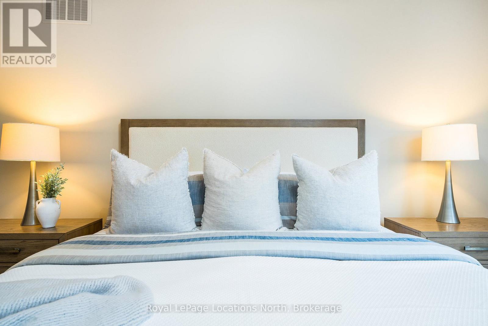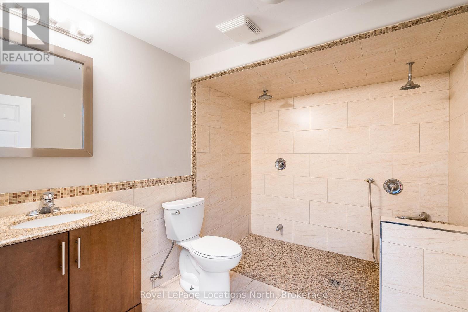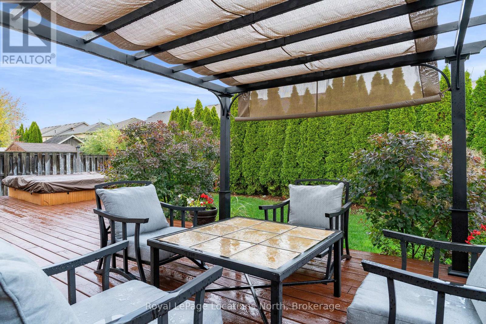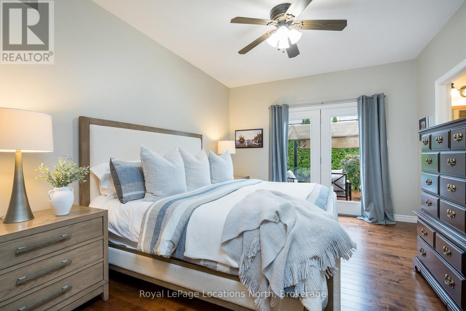 Nestled on a picturesque street in the sought-after Creekside community, this exceptional bungalow offers effortless, turn-key living. Thoughtfully designed and meticulously maintained, this home combines elegant style, comfort, and practicality, perfect for both everyday living and entertaining. From the moment you arrive, you'll be charmed by beautifully landscaped gardens and a welcoming west-facing front porch. Inside, the bright and spacious foyer with vaulted ceiling leads to an open-concept living area filled with natural light. A stunning picture window and cozy gas fireplace create an inviting atmosphere. The new kitchen is a dream showcasing timeless cabinetry, a sit-up breakfast bar, and newer stainless steel appliances. Step from the dining area to the private backyard, featuring a large deck with hot tub surrounded by lush cedar hedging for exceptional privacy. The main floor features two generous bedrooms and two full bathrooms, including a peaceful primary suite with walk-in closet, ensuite, and direct access to the deck, the perfect spot for morning coffee. The guest bedroom enjoys its own access to a thoughtfully designed 3-piece bath with a curb-free, walk-in shower using the premium Schluter waterproofing system, ideal for accessibility and ease of use. Main floor laundry adds everyday convenience. The finished lower level offers bright, versatile living space with recessed lighting, a gas fireplace, a third bedroom, stunning full bathroom (also with curb-less shower), and an expansive flex room. A double garage with inside entry completes this exceptional home. Designed with accessibility in mind from wider doorways to barrier-free bathrooms and ideally located across from a park and steps to the Collingwood Trail system, this home offers the perfect blend of lifestyle, comfort, and community - a place where every detail has been carefully considered for years of enjoyment. (id:53503)