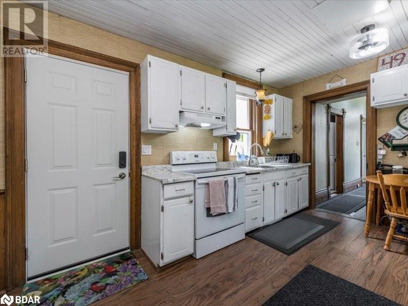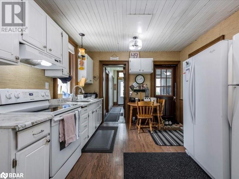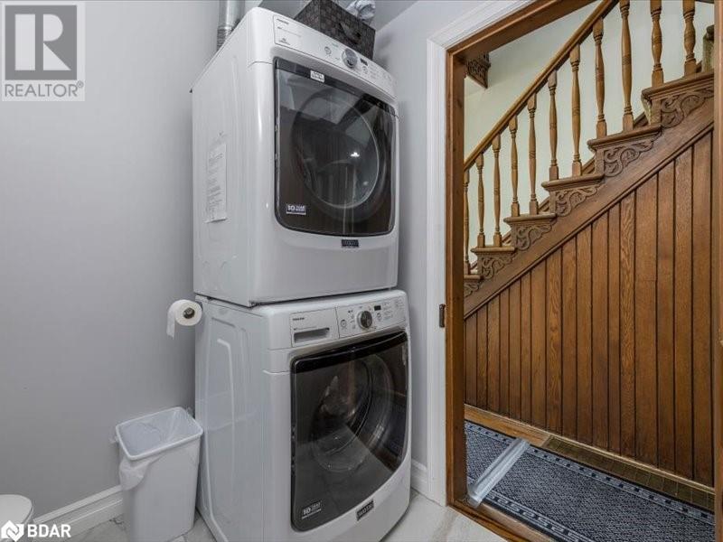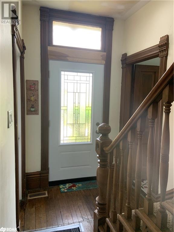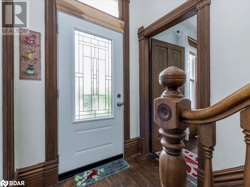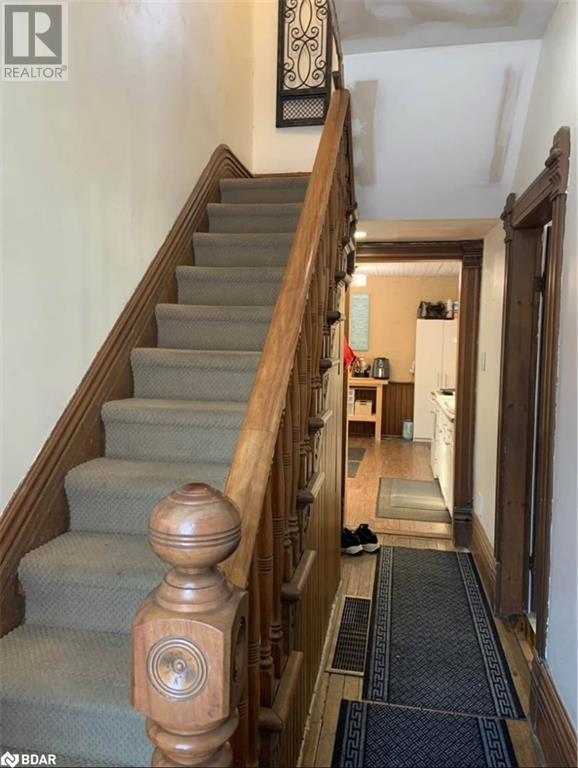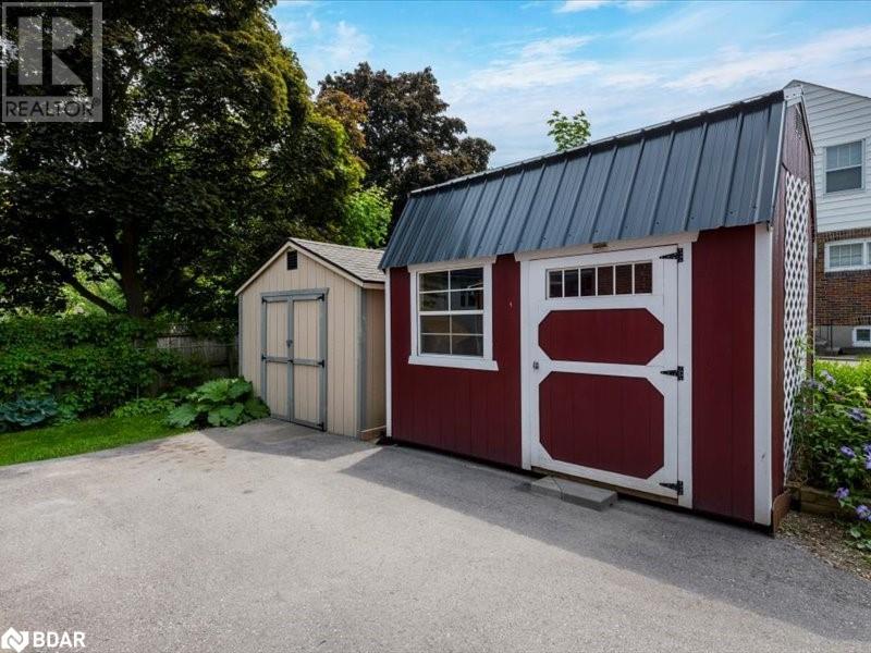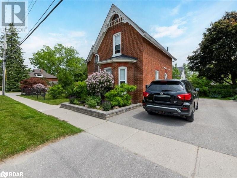 Charming character filled century home on corner lot. Short walk to Barrie's waterfront, parks and vibrant downtown. Zoning is RM2 allowing for multi family development. Front foyer welcomes you into this traditional 2 storey 4 bedroom home. The main level includes a formal dining room/living room, (original large living room was used as the master bedroom with ensuite by previous owner ... this living room was fully gutted to studs and has classic high baseboards and window trim. (This room could also be a fantastic nanny area). Kitchen has access to back porch plus mud room plus walk through to formal dining room plus hallway access to entire main floor. Thousands spent on upgrades (see attachment list): Electrical, insulation, lights, windows, doors, bathrooms, furnace, driveway and more. Second floor has 3 good size bedrooms with closets ... one has been fully gutted to studs and reno'd. 2 new bathrooms on main floor were created 2015. Main bath shared with laundry. This home has a side covered porch overlooking a landscaped fully fenced yard with unistone walk path. Rear entry is a handy mud room with storage. Basement is traditional stone that is dry and has room for storage. Hot water tank is rental. Driveway and curb were widened into double which holds 4 vehicles. 2 quality sheds (burgandy built by menonites with reinforced flooring and metal roof). Tenants willing to move or stay. Very well maintained home. (id:53503)