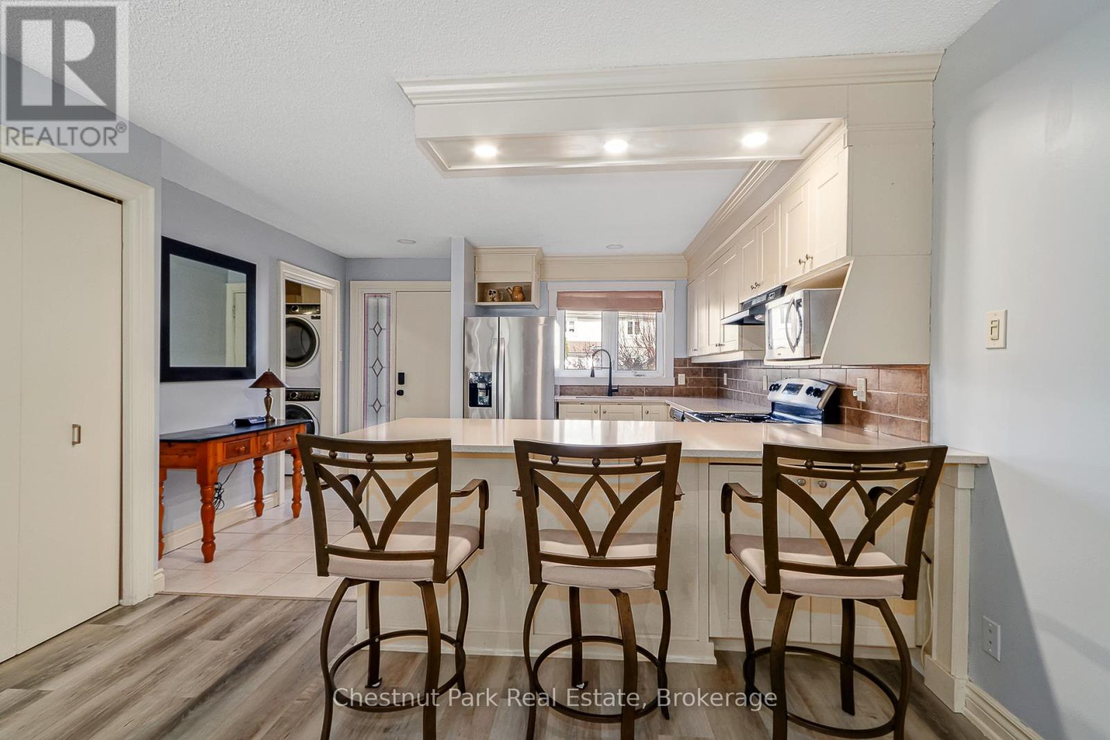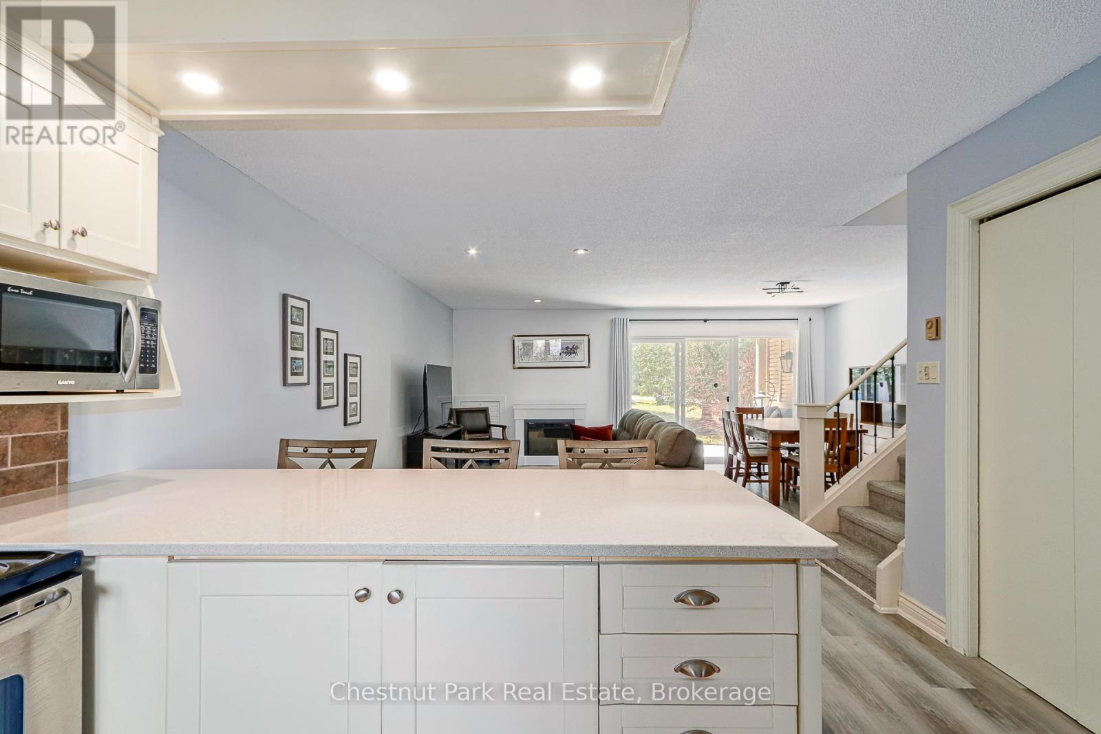 $496.15 MonthlyPeaceful and Private location in Cranberry. Close to all the local trails for biking and hiking and just a few minutes from downtown Collingwood & Blue Mountain. Make this your permanent home or ideal weekend get-away in the heart of this stunning 4 Season Recreation area. Being sold fully furnished. 3 Bed, 2 Bath combines modern, contemporary main floor living w/Kitchen/Dining/Living Rm. Kitchen has lovely quartz counter tops with ample preparation area. Door off Dining Room to rear patio area which is surrounded by greenery and not overlooked by neighbours. On the 2nd floor you will find an oversized Primary Bed w/4PC en-suite. The 2nd & 3rd bedrooms share a separate 4PC bath. Relax & enjoy the peace and outdoor tranquility this beautiful area has to offer. (id:53503)