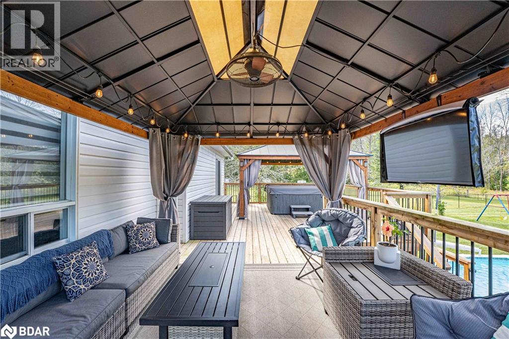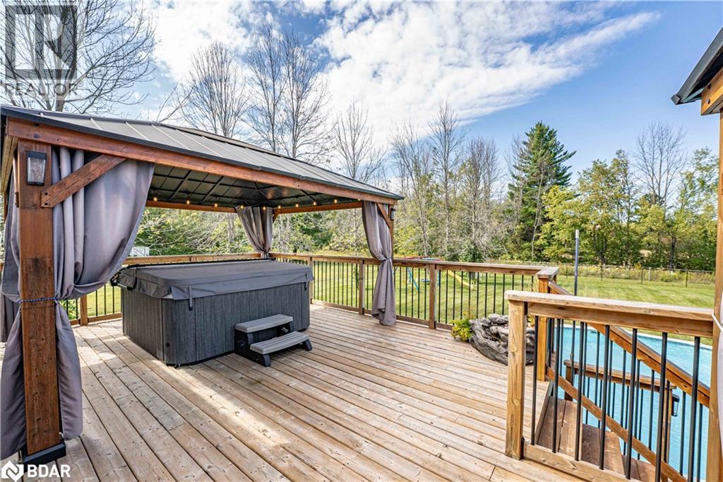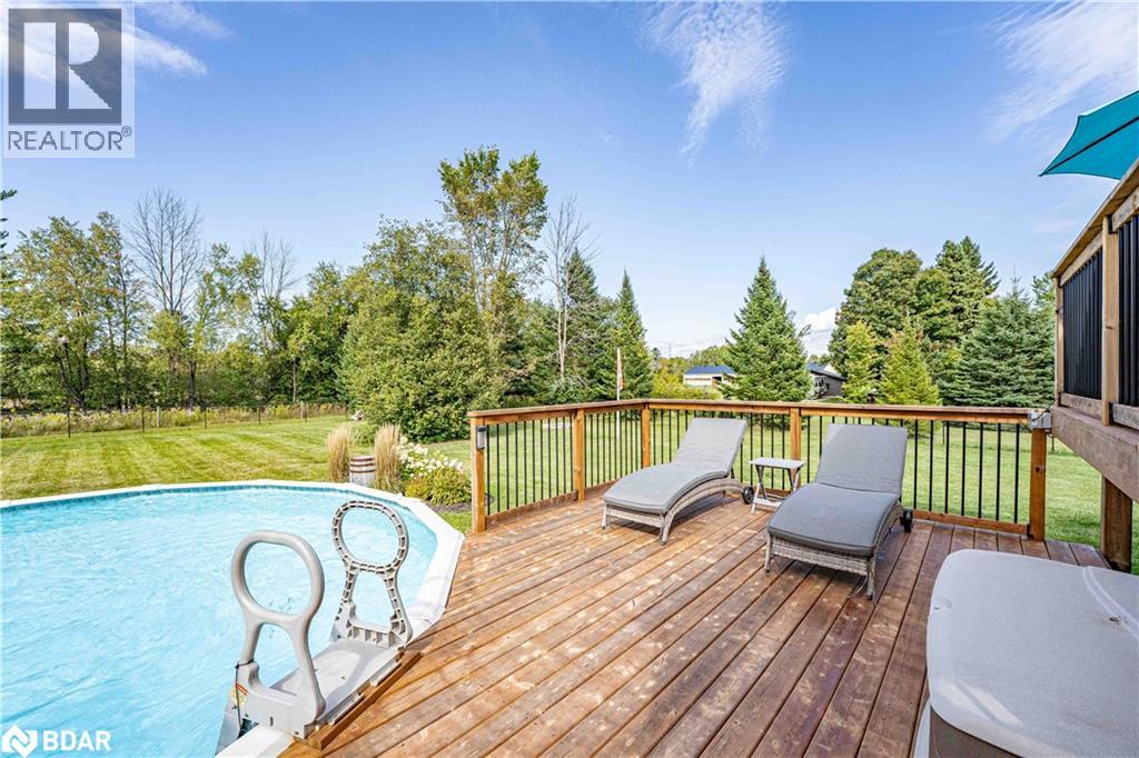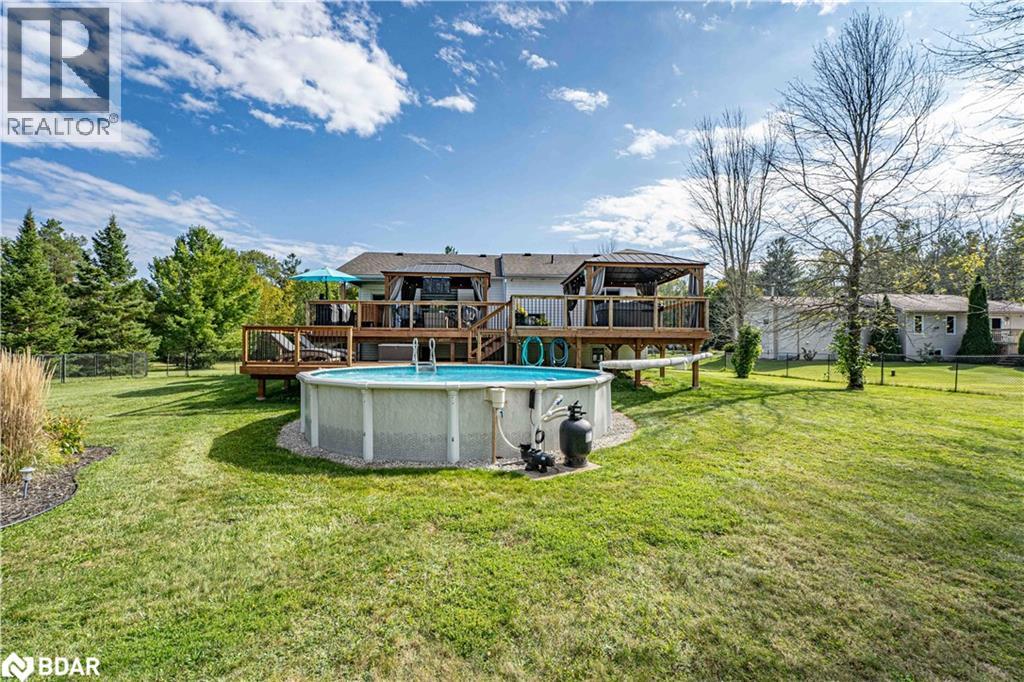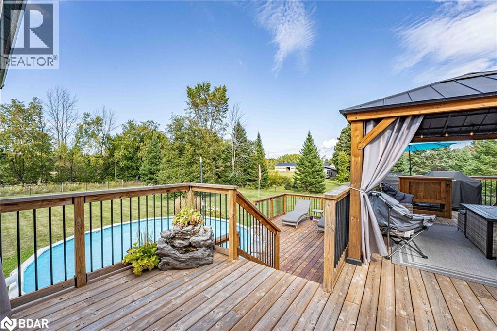 POOL AND HOT TUB!! Welcome to this charming 3-bedroom, 2-bath home set on a rare 1-acre in-town lot in the heart of New Lowell. Offering both privacy and convenience, this property is perfect for families and entertainers alike. The home features spacious principal rooms, a bright and functional layout, and direct access to your backyard oasis. Step outside to enjoy the above-ground pool, a relaxing 6-person South Seas hot tub, and multiple outdoor living spaces, including two gazebos and a large deck. With room to play, entertain, and unwind, this property offers the best of country living with the convenience of being in town. This home has been thoughtfully improved over the years with numerous updates. Roof was reshingled in 2015. The driveway was redone in 2019, followed by the addition of a large back deck, a gazebo, and the installation of a 6-person South Seas hot tub in 2022. In 2023, a complete water system was added, featuring iron treatment, UV protection, a water storage tank, and a booster pump, along with a Go Vee exterior lighting system. The year 2024 brought a long list of major updates including a new storm door, new furnace, air conditioning unit, hot water tank, ERV system rebuild, new pool pump and filter with summer and winter covers, a second gazebo, and new patio doors in both the living area and primary bedroom. Most recently, the front entrance was fully redone in 2025, ensuring the home is as welcoming as it is functional. Located minutes from parks, schools, and all local amenities, and just a short drive to Barrie, Angus, and Alliston, this property combines small-town charm with modern convenience. Move-in ready and loaded with upgrades, this is your opportunity to enjoy space, comfort, and lifestyle on a beautiful 1-acre lot. (id:53503)