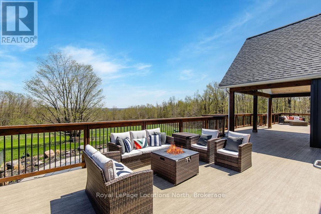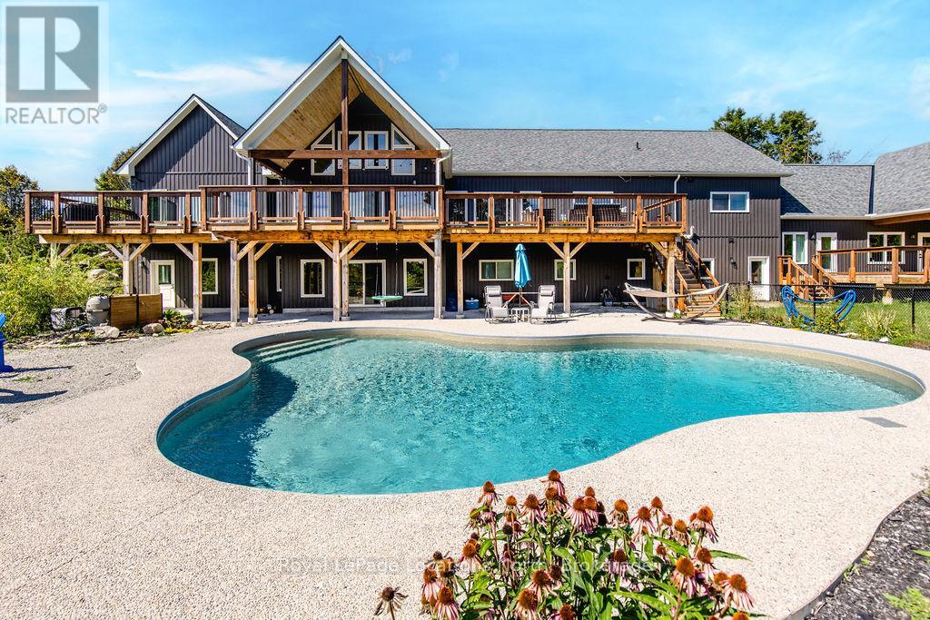 FAMILY COMPOUND - Built in 2022, this expansive 9,000 sq ft home on 100 acres is perfect for multi-gen living or rental income. The property features a custom main house, a legal ranch-style apartment w/private laundry + a loft above a heated 4-car garage. As you enter the large foyer, you're greeted with panoramic views of the property through floor-to-ceiling windows. The main house features 3+2 bedrooms, 3 full and 2 half baths, 9' ceilings, and engineered hardwood on the main floor. A grand living room impresses with 19' vaulted ceilings and access to a covered deck overlooking the pool. The spacious kitchen and formal dining room are ideal for gatherings, boasting quartz countertops, a double farmhouse sink, premium stainless steel appliances and a large custom island. The primary suite offers a private retreat with deck access, dual walk-in closets, and a luxurious 5-piece ensuite featuring a soaker tub, walk-in shower, dual-sink quartz vanity, and private water closet. The expansive walk-out basement includes a recreation room, two additional bedrooms, and a salon with a powder room, perfect for a home business or studio complemented by durable vinyl plank flooring. The separate legal accessory apartment provides a modern living space with vaulted ceilings, open-concept design, quartz kitchen countertops, a private covered deck, and dedicated laundry, ideal for family or as an income opportunity. The loft features a bedroom, 4-piece bath, kitchenette, and private deck, suitable for guests or extended family. The garage boasts 4 bays with 10 and 14 ceilings, perfect for car enthusiasts or workshop space. Outside, the 100 acre property supports many activities, hiking, hobby farming, or a private nature retreat. Enjoy a private outdoor oasis w/ a heated 20' x 40' saltwater pool, multiple decks, and lush green space. For more details, please contact us directly. (id:53503)