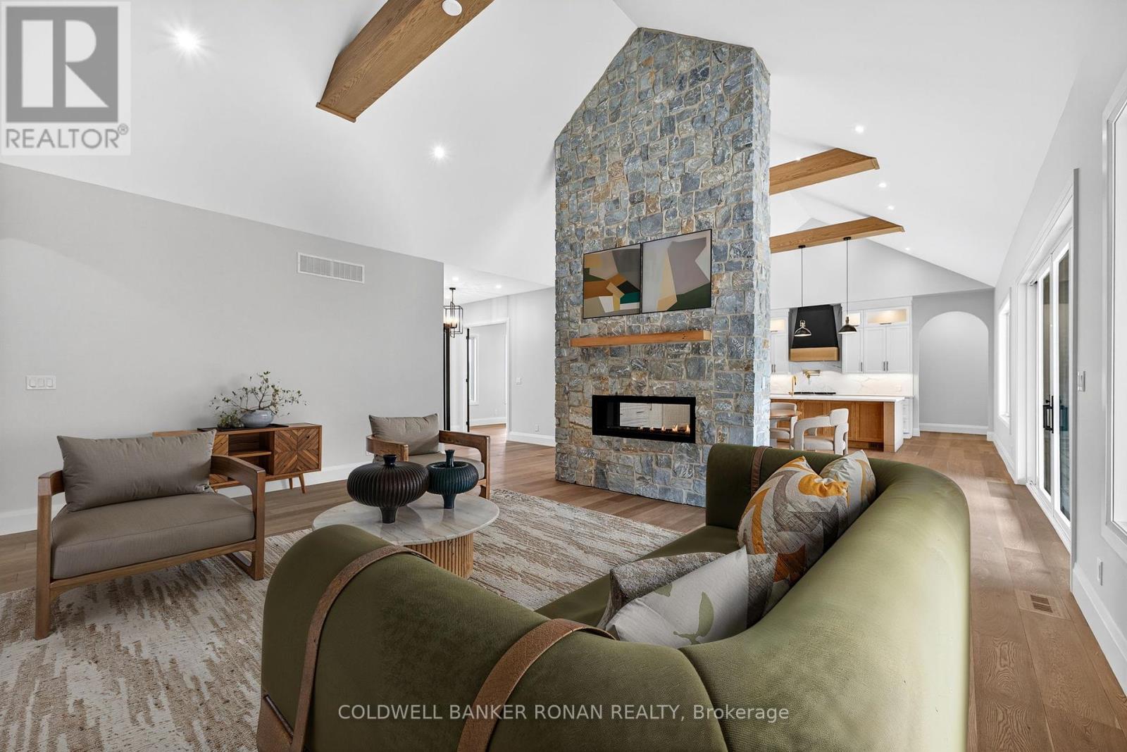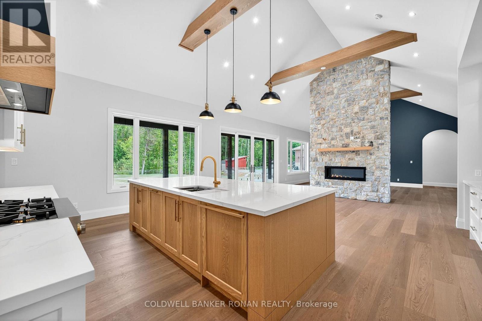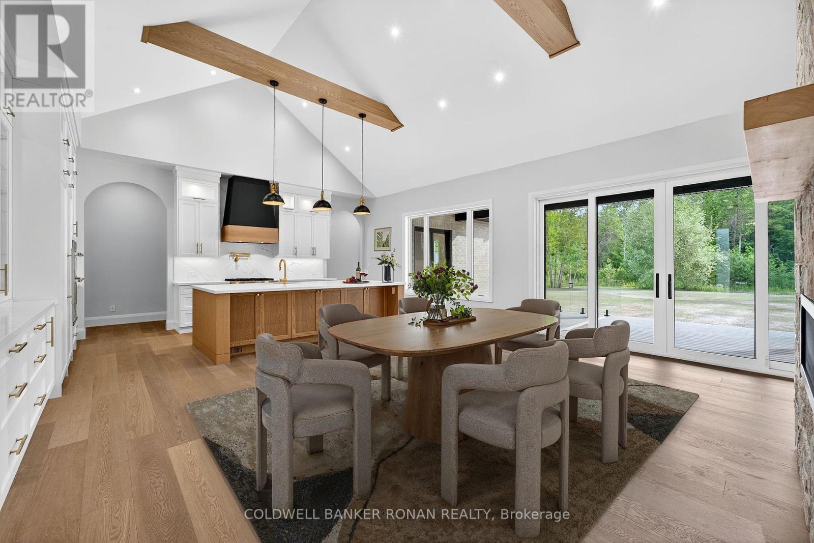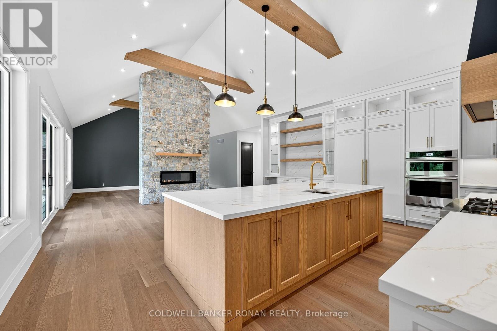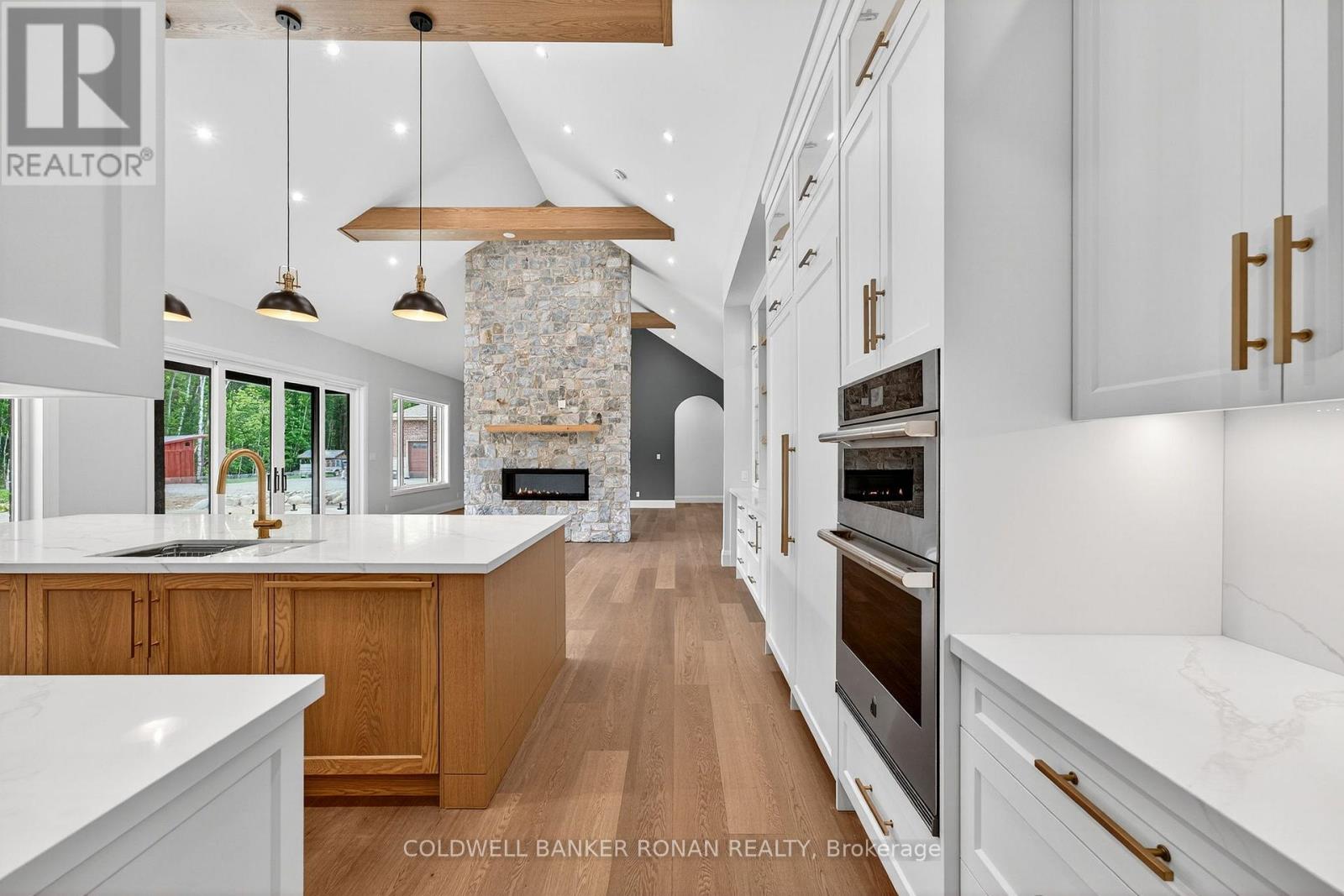 BONUS - $20,000 towards finishing the basement or other upgrades!!! Brand New. Sprawling 3100 sq ft Custom stone and brick bungalow on over an acre. From the large entrance way and office/library Experience high end finishings throughout, from the wide plank hardwood floors to the light fixtures, Jen Air appliances and riobel bathroom fixtures. Massive kitchen /living room divided by a floor to ceiling stone double sided fireplace, a massive island, butlers pantry with espresso bar and a walk out to the expansive covered back deck overlooking the pool sized yard and enchanting forest. Principal bedroom with beautiful feature wall, walk through custom closet and an ensuite designed for the most scrutinizing individuals. Main floor laundry and large mudroom area off the 40x30 ft garage with walk up from the basement, oversized garage doors and enough ceiling height for a car lift in each bay with room left over for the toys. Bedroom wing with 3 beds and 2 full baths. Basement with 9 ft ceilings rough in for another bath. Landscaping package w/ exposed stone concrete walkway, paved driveway, entrance garden with two trees, sodded front yard and hydro seeded back yard. Great commuter location with easy access to Barrie and hwy 400. (id:53503)