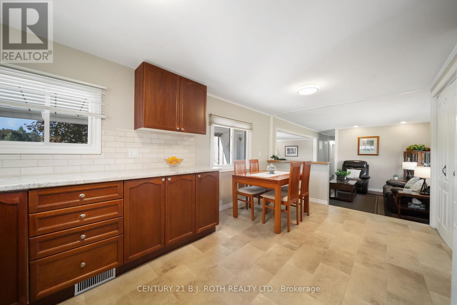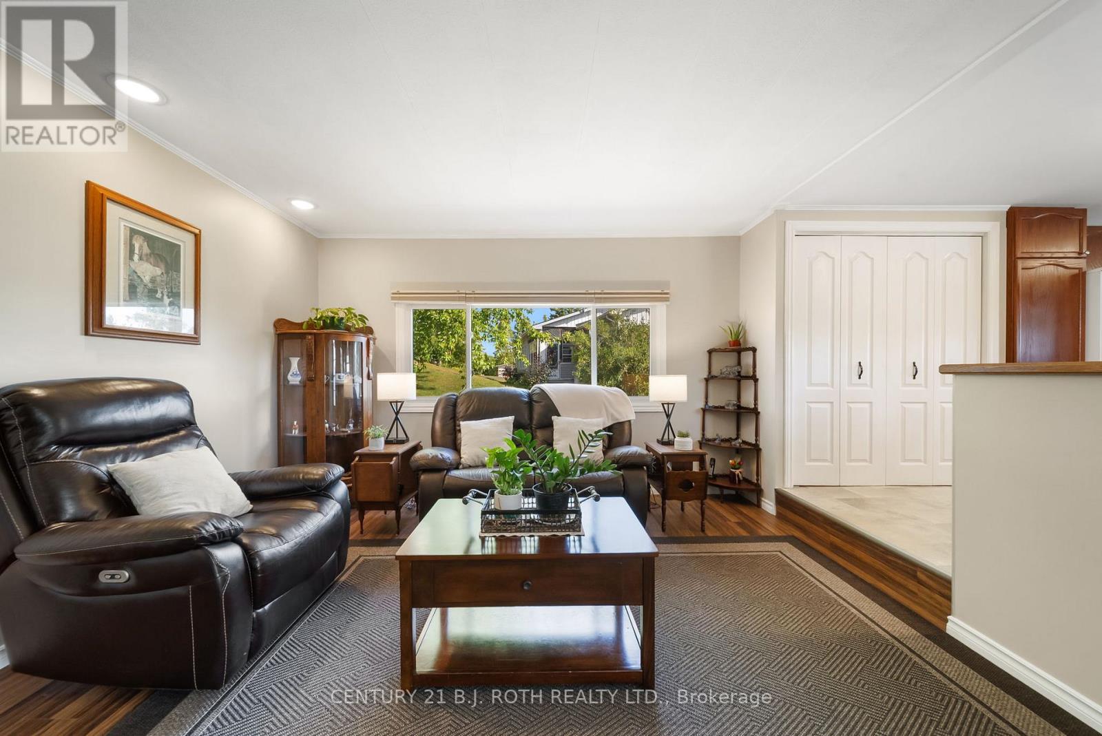 Enjoy relaxed adult living in Big Cedar Estates, a community between Orillia and Barrie. This well-cared-for Mailette model offers flexible 2- or 3-bedroom with a large primary bedroom with walk-in closet. It is an open-concept design, renovated kitchen, upgraded bath, newer laminate flooring, and updated lighting throughout as well as a large storage room and a pantry for convenience. Residents enjoy low-maintenance living with monthly fees of $345 covering water, sewer, lawn care, snow removal, clubhouse, walking trails, fibre optic internet, and Rogers TV, plus boat and RV parking when available. A welcoming home in a vibrant community! (id:53503)
