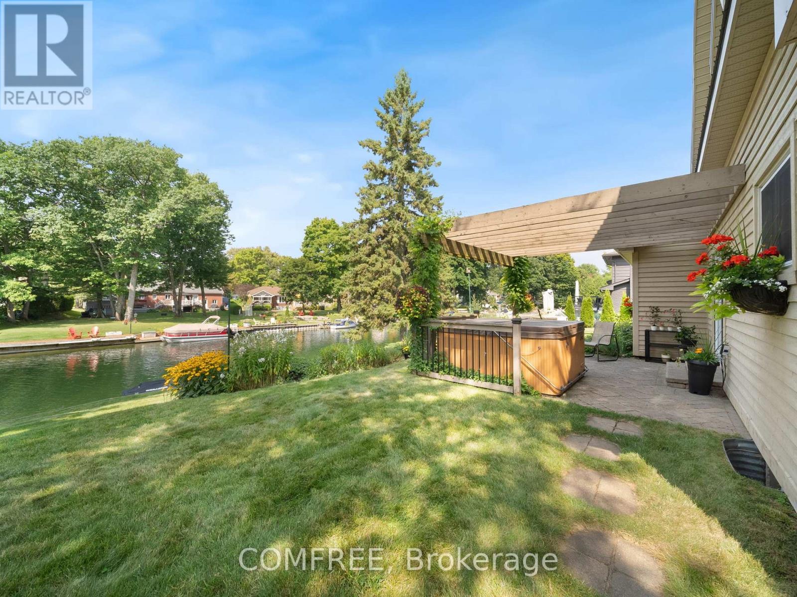 Prime Canal Waterfront property in highly sought after Couchiching Point Orillia neighbourhood. Are you longing to put a boat or kayak in the water right from your back door, and be on the Trent Severn within moments, this is the place for you. Does a relaxed, peaceful setting allow you to let go of daily stress? If so, you may be interested in this unique 1862 sq ft home with cathedral ceilings, an elegant spacious loft master bedroom, crafted maple kitchen with a cultured stone fireplace. Three attractive outside patios extend the living space and look out onto beautiful gardens, quiet canal ripples, visiting herons & swans, paddle boards and kayakers. Treat yourself to a great man cave downstairs, tiled bathroom with glassed in shower, recreational/ movie space, bar and workout area. There are 2 bedrooms up, one main floor and 2 downstairs, plus 3 bathrooms. The downstairs living space is not included in the 1862 sq footage. There is a two car garage with extensive storage space. A mature, safe, friendly neighbourhood, proximity to Tudhope park festivals, biking/ trail system and beach make this home a sought after treasure! (id:53503)