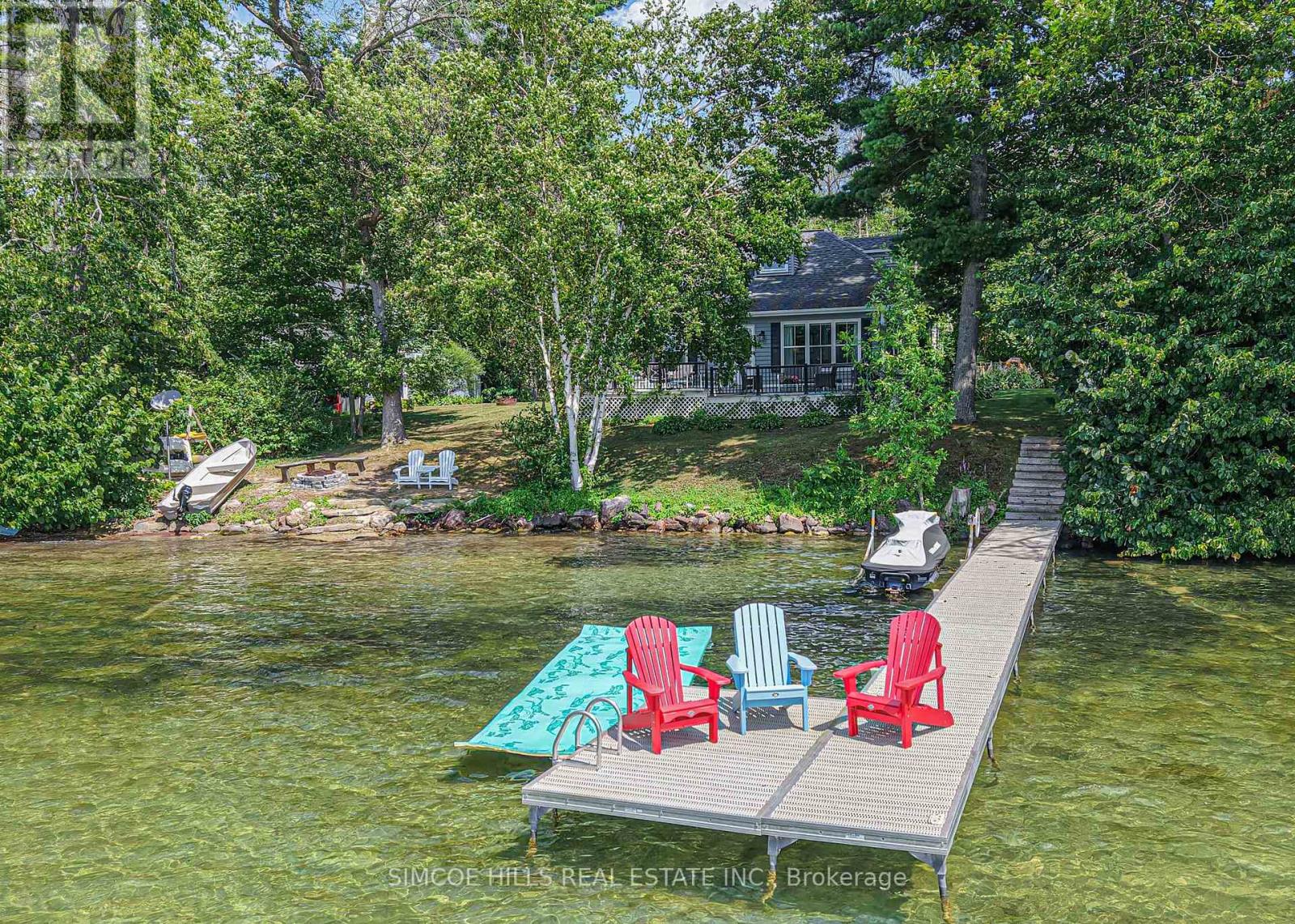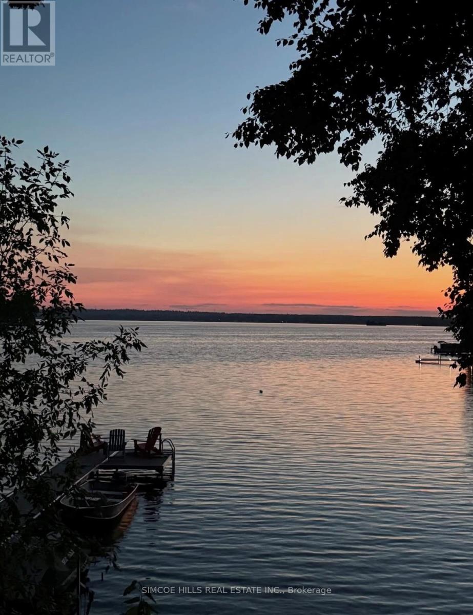 This unique waterfront home blends rustic charm w/ modern updates. Features incl: Kitchen w/10' ceilings, newer appliances +9'x4' island, living rm w/10' ceilings, fireplace, crown moulding, wainscoting, 2 main flr bed, updated baths +a sleeping loft. Converted barn serves as games room/bunkie. Quiet bay w/hard packed sand. Shallow at shoreline--perfect for children. Great fishing, boating. On Trent Severn. Fabulous sunsets!. 15 min to Orillia or just min to Washago. Only 90 min to GTA. (id:53503)