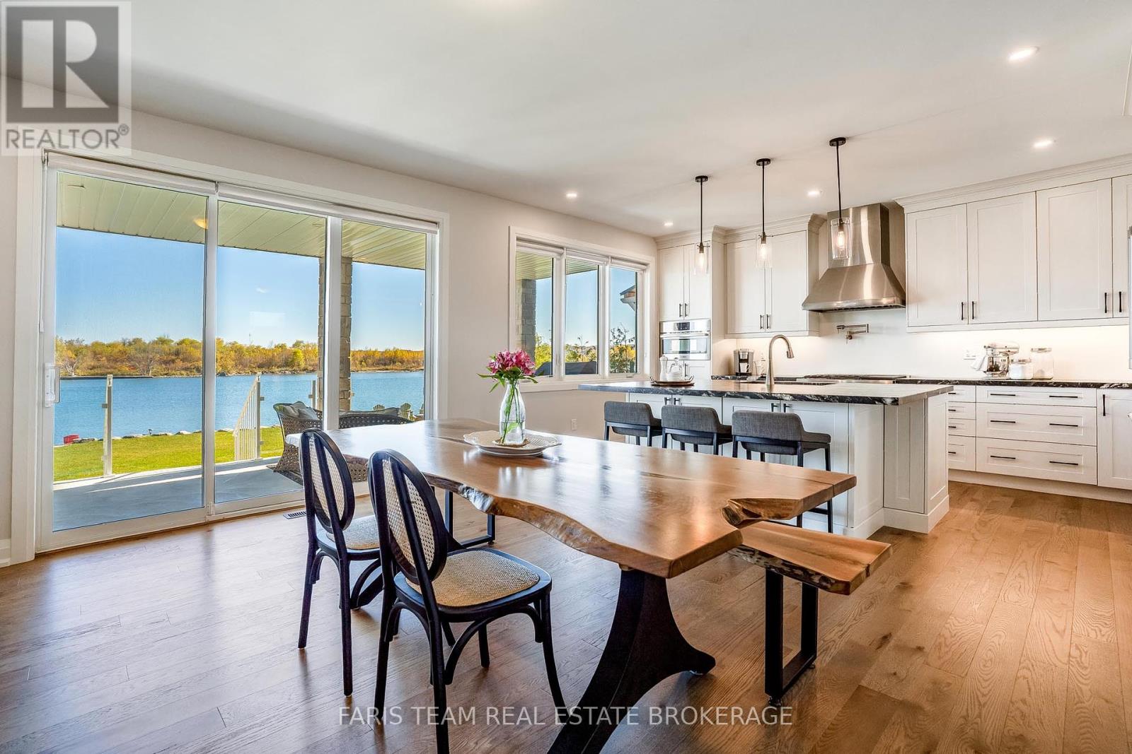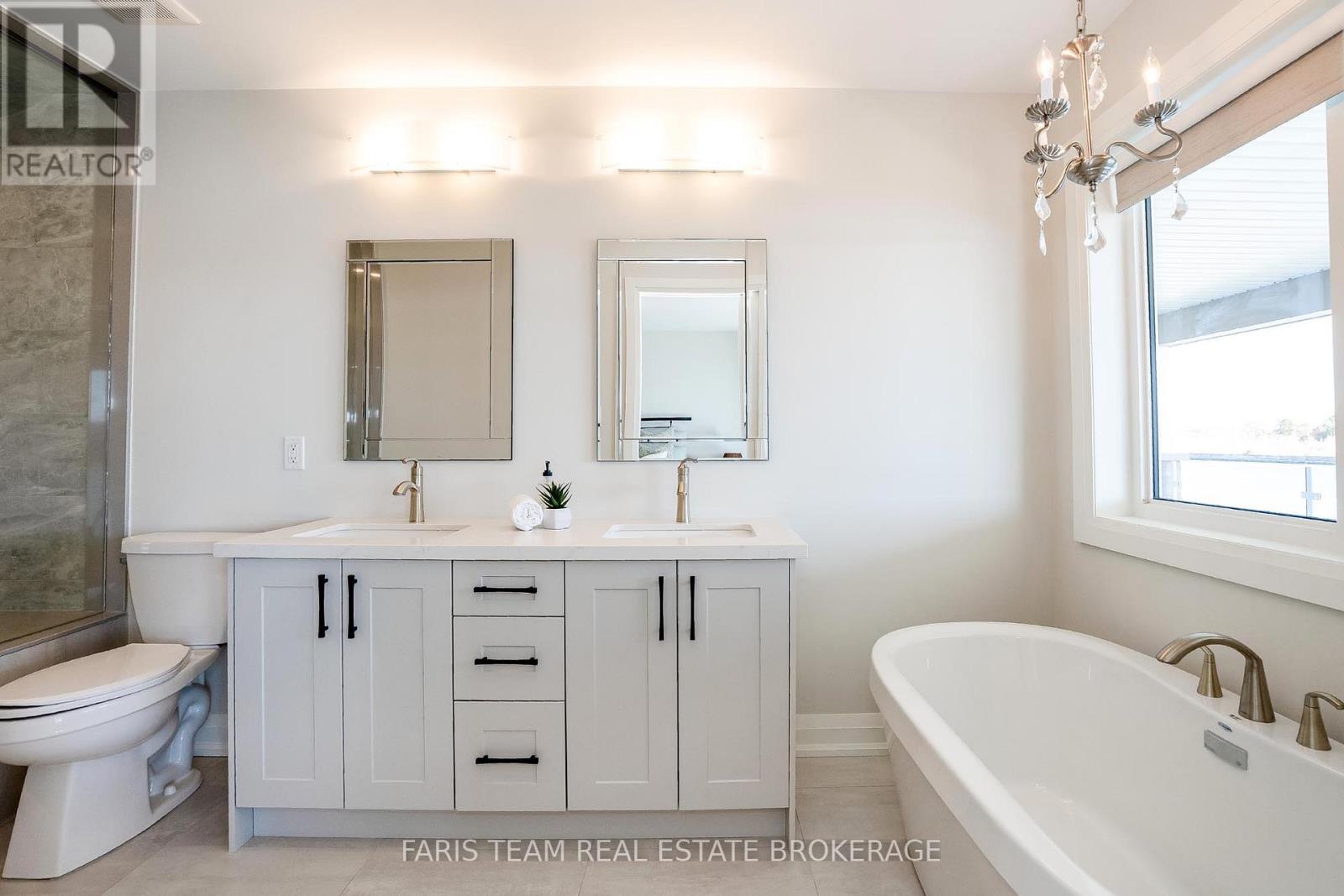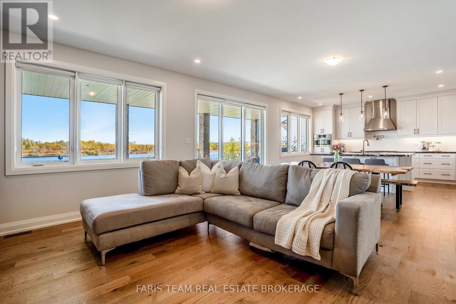 Top 5 Reasons You Will Love This Home: 1) 2-storey home presenting a breathtaking waterfront with deep, clear water and captivating sunrise views over the horizon, offering an unparalleled experience to enjoy every morning 2) Rare gem, complete with a full basement boasting large, sun-filled windows and awaiting your personal finishing touch, along with heated flooring in the ensuite bathroom 3) Step out onto the expansive covered back deck with a hot tub, or enjoy sweeping 180-degree views from the massive second-level balcony, perfect for relaxation 4) Custom-designed kitchen featuring luxurious high-end appliances, exquisite leathered granite countertops, a spacious island, and panoramic views that elevate every meal 5) Resting in a boater's paradise, this stunning year-round home or cottage offers easy access to Georgian Bay while still being within easy reach of nearby amenities. 2,213 sq.ft. with an unfinished basement. (id:53503)