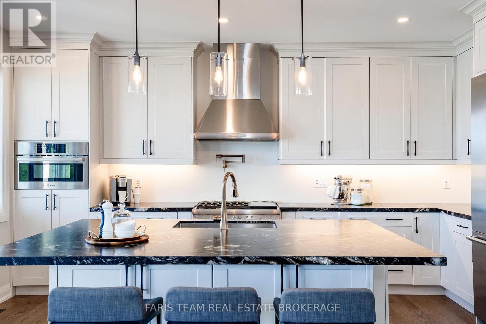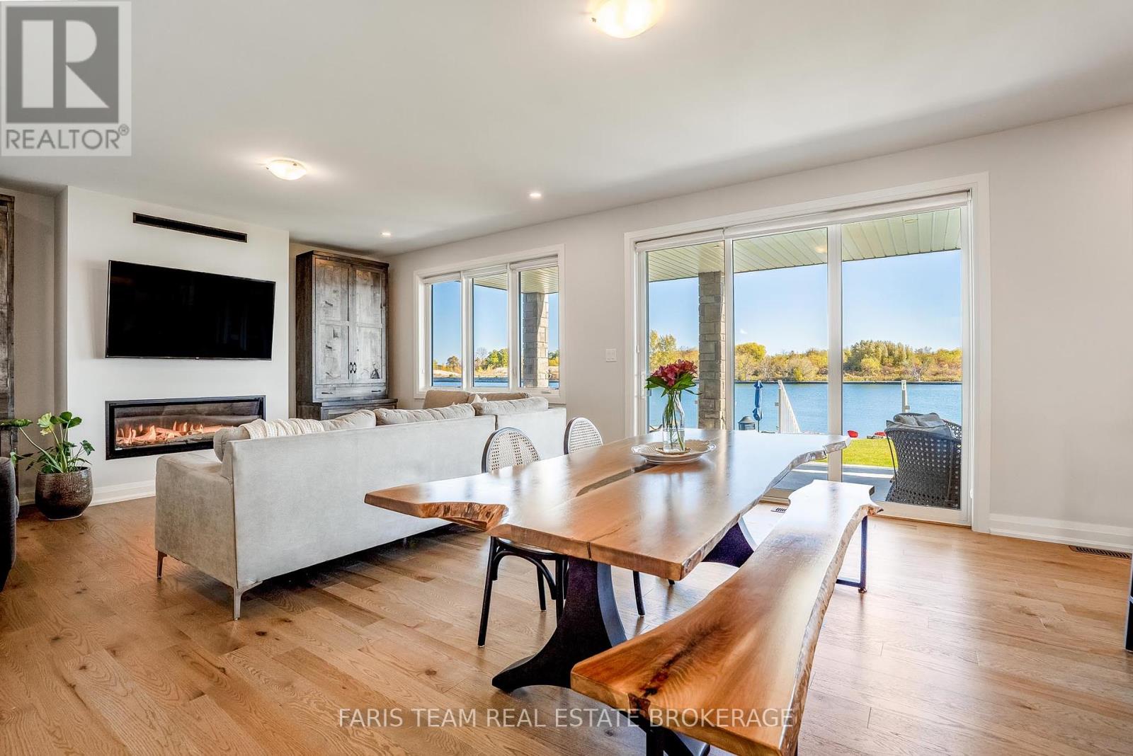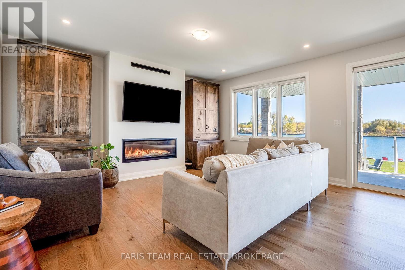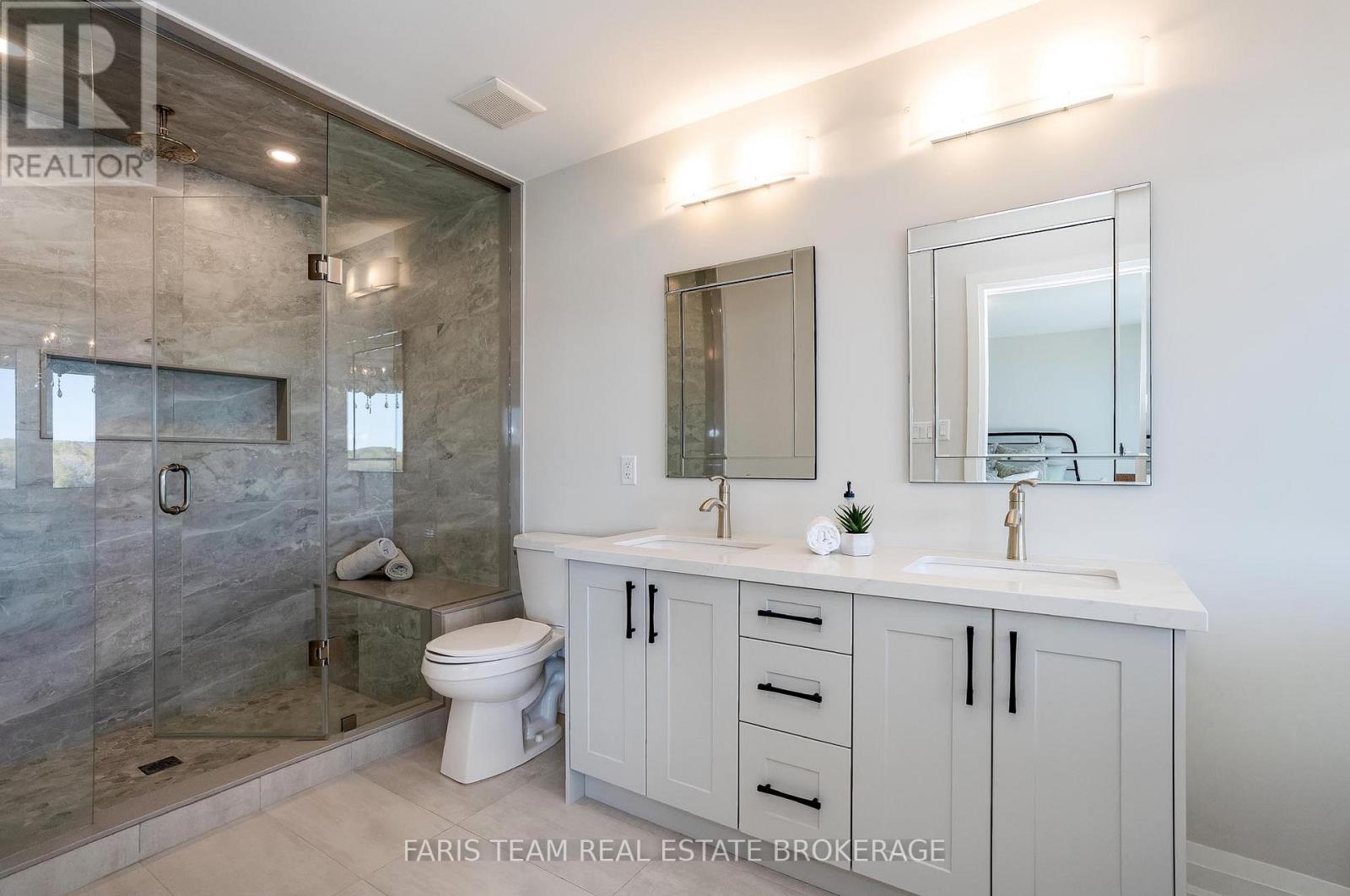 Top 5 Reasons You Will Love This Home: 1) 2-storey home presenting a breathtaking waterfront with deep, clear water and captivating sunrise views over the horizon, offering an unparalleled experience to enjoy every morning 2) Rare gem, complete with a full basement boasting large, sun-filled windows and awaiting your personal finishing touch, along with heated flooring in the ensuite bathroom 3) Step out onto the expansive covered back deck with a hot tub, or enjoy sweeping 180-degree views from the massive second-level balcony, perfect for relaxation 4) Custom-designed kitchen featuring luxurious high-end appliances, exquisite leathered granite countertops, a spacious island, and panoramic views that elevate every meal 5) Resting in a boater's paradise, this stunning year-round home or cottage offers easy access to Georgian Bay while still being within easy reach of nearby amenities. 2,213 sq.ft. with an unfinished basement. (id:53503)