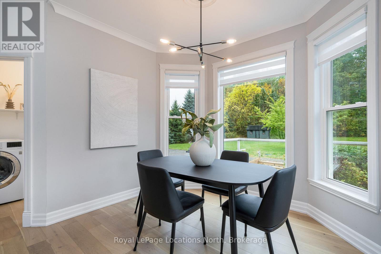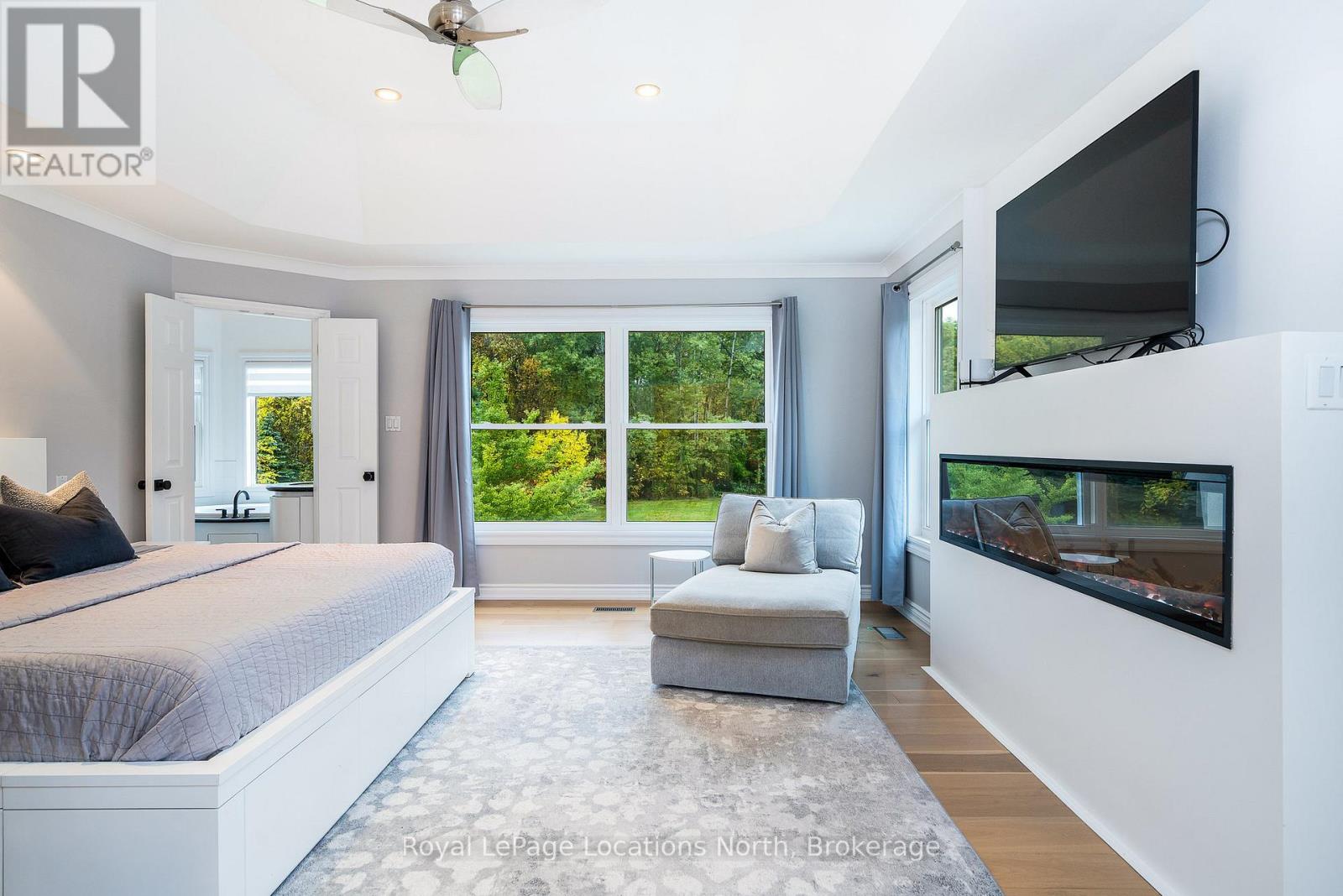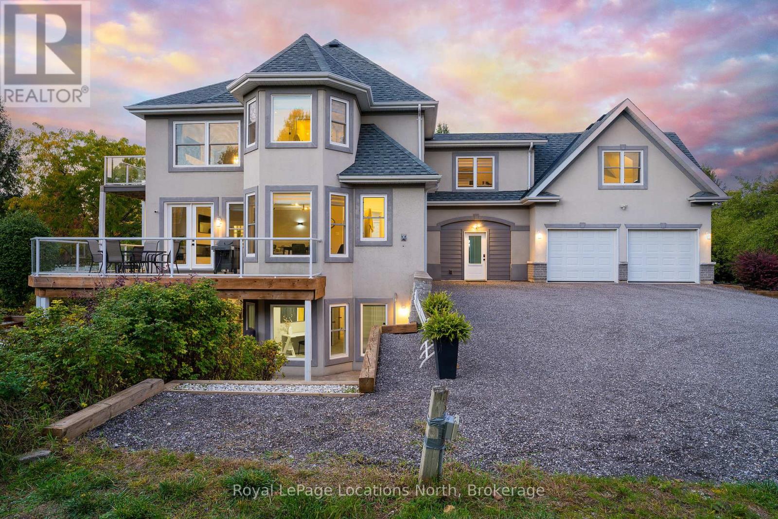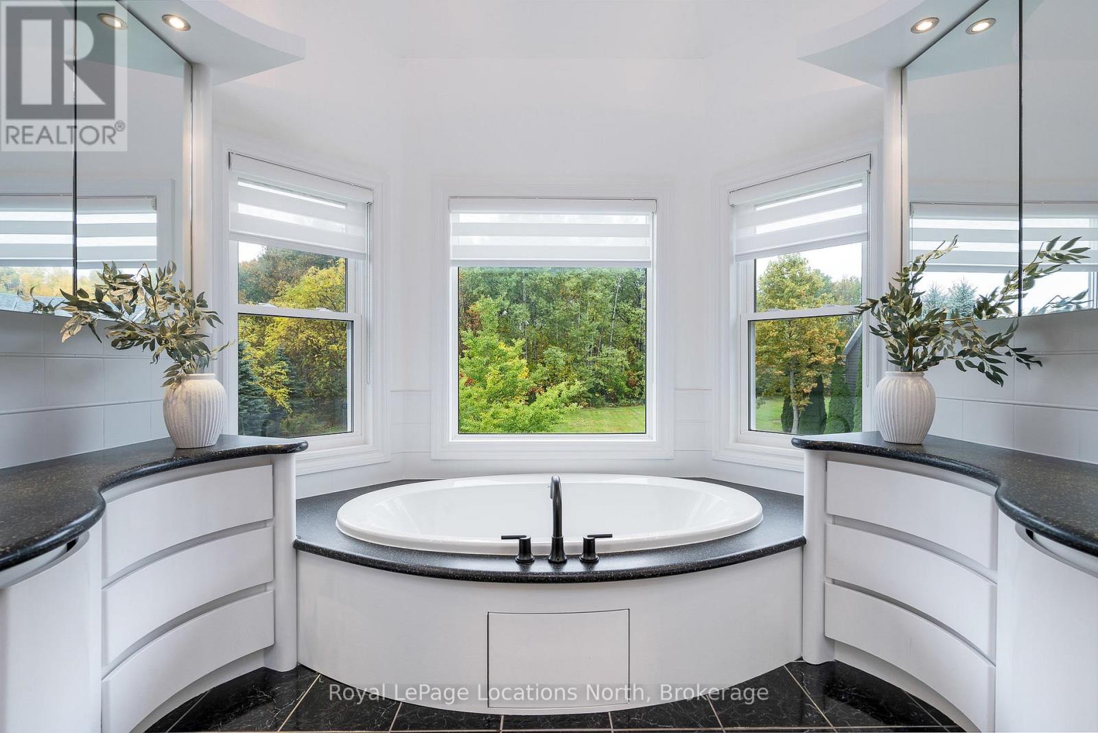 Welcome to an extraordinary 14.95-acre country estate that defines luxury living in the heart of Collingwood. Just minutes from downtown yet surrounded by the serenity of nature, this remarkable property offers a harmonious balance of elegance, privacy, and lifestyle - an idyllic retreat for those who value space and sophistication. A picturesque maple-lined driveway winds through the property, leading to a tranquil pond and fountain that set the tone for the residence beyond. The beautifully updated main home spans over 4,300 square feet, featuring 5 bedrooms and 6 bathrooms, thoughtfully reimagined with refined modern finishes. Three fireplaces, dual staircases, and ensuites in every bedroom speak to the home's quality and craftsmanship, while multiple walkouts open seamlessly to expansive terraces, patios, and decks - perfect for entertaining or quiet moments immersed in nature. Every element has been carefully curated, from new windows and floors to the roof, driveway, and professional landscaping, ensuring a timeless and inviting atmosphere. Enhancing the estate's appeal is the 2023-built guest residence, approved Accessory Dwelling Unit (ADU) by Clearview Township. This 1,800-square-foot home features 2 bedrooms and 2 bathrooms, exuding the same level of luxury and style. Connected to a heated pool and generous deck, it offers endless possibilities - an elegant in-law suite, private guest quarters, or an income-generating retreat for seasonal visitors. The back 10 acres offer private trails that border scenic apple orchards and provide breathtaking views toward Osler Bluff. Mature maples and fruit trees frame the landscape, creating a true four-season sanctuary. Few properties offer such a rare combination of scale, privacy, and proximity to downtown Collingwood. This exceptional estate captures the essence of refined country living - where luxury, nature, and lifestyle meet in perfect harmony. (id:53503)
