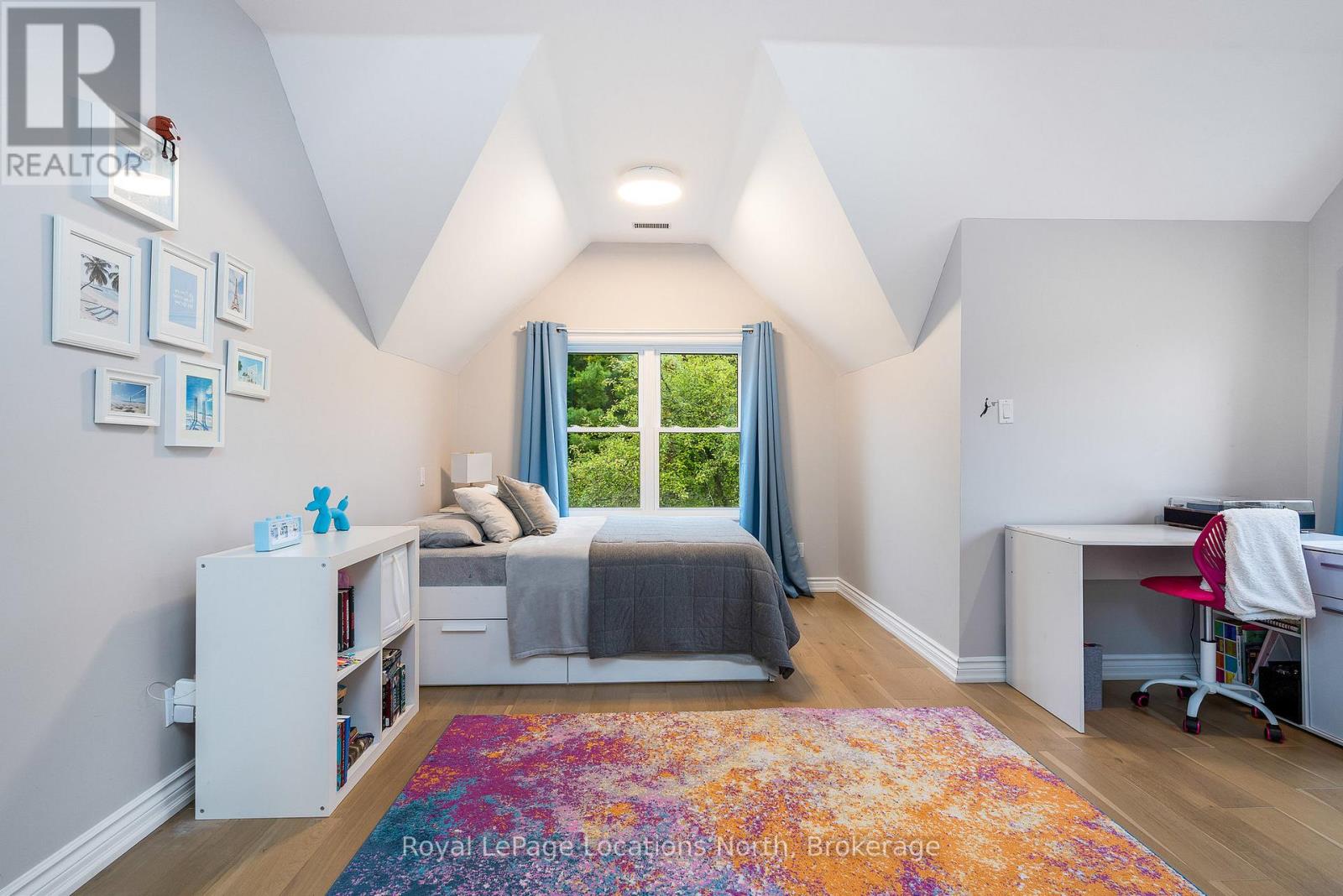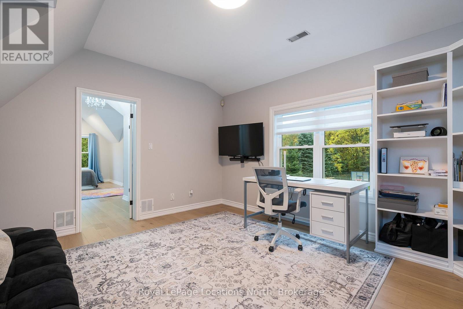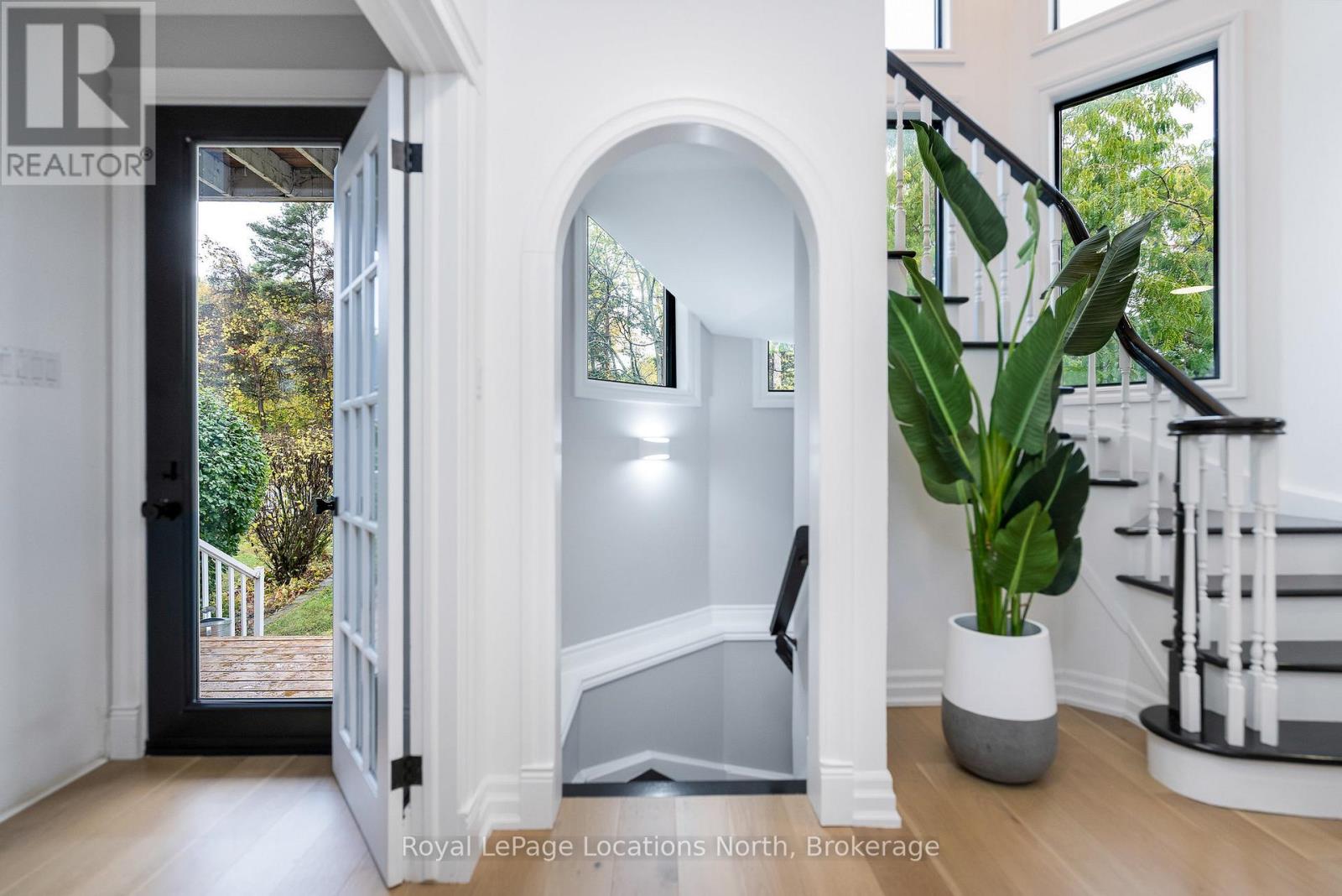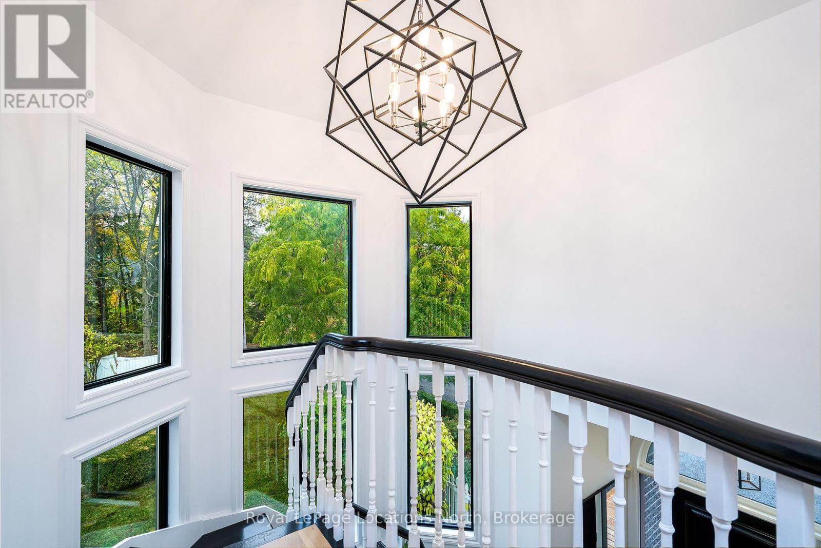 Welcome to an extraordinary 14.95-acre country estate that defines luxury living in the heart of Collingwood. Just minutes from downtown yet surrounded by the serenity of nature, this remarkable property offers a harmonious balance of elegance, privacy, and lifestyle - an idyllic retreat for those who value space and sophistication. A picturesque maple-lined driveway winds through the property, leading to a tranquil pond and fountain that set the tone for the residence beyond. The beautifully updated main home spans over 4,300 square feet, featuring 5 bedrooms and 6 bathrooms, thoughtfully reimagined with refined modern finishes. Three fireplaces, dual staircases, and ensuites in every bedroom speak to the home's quality and craftsmanship, while multiple walkouts open seamlessly to expansive terraces, patios, and decks - perfect for entertaining or quiet moments immersed in nature. Every element has been carefully curated, from new windows and floors to the roof, driveway, and professional landscaping, ensuring a timeless and inviting atmosphere. Enhancing the estate's appeal is the 2023-built guest residence, approved Accessory Dwelling Unit (ADU) by Clearview Township. This 1,800-square-foot home features 2 bedrooms and 2 bathrooms, exuding the same level of luxury and style. Connected to a heated pool and generous deck, it offers endless possibilities - an elegant in-law suite, private guest quarters, or an income-generating retreat for seasonal visitors. The back 10 acres offer private trails that border scenic apple orchards and provide breathtaking views toward Osler Bluff. Mature maples and fruit trees frame the landscape, creating a true four-season sanctuary. Few properties offer such a rare combination of scale, privacy, and proximity to downtown Collingwood. This exceptional estate captures the essence of refined country living - where luxury, nature, and lifestyle meet in perfect harmony. (id:53503)