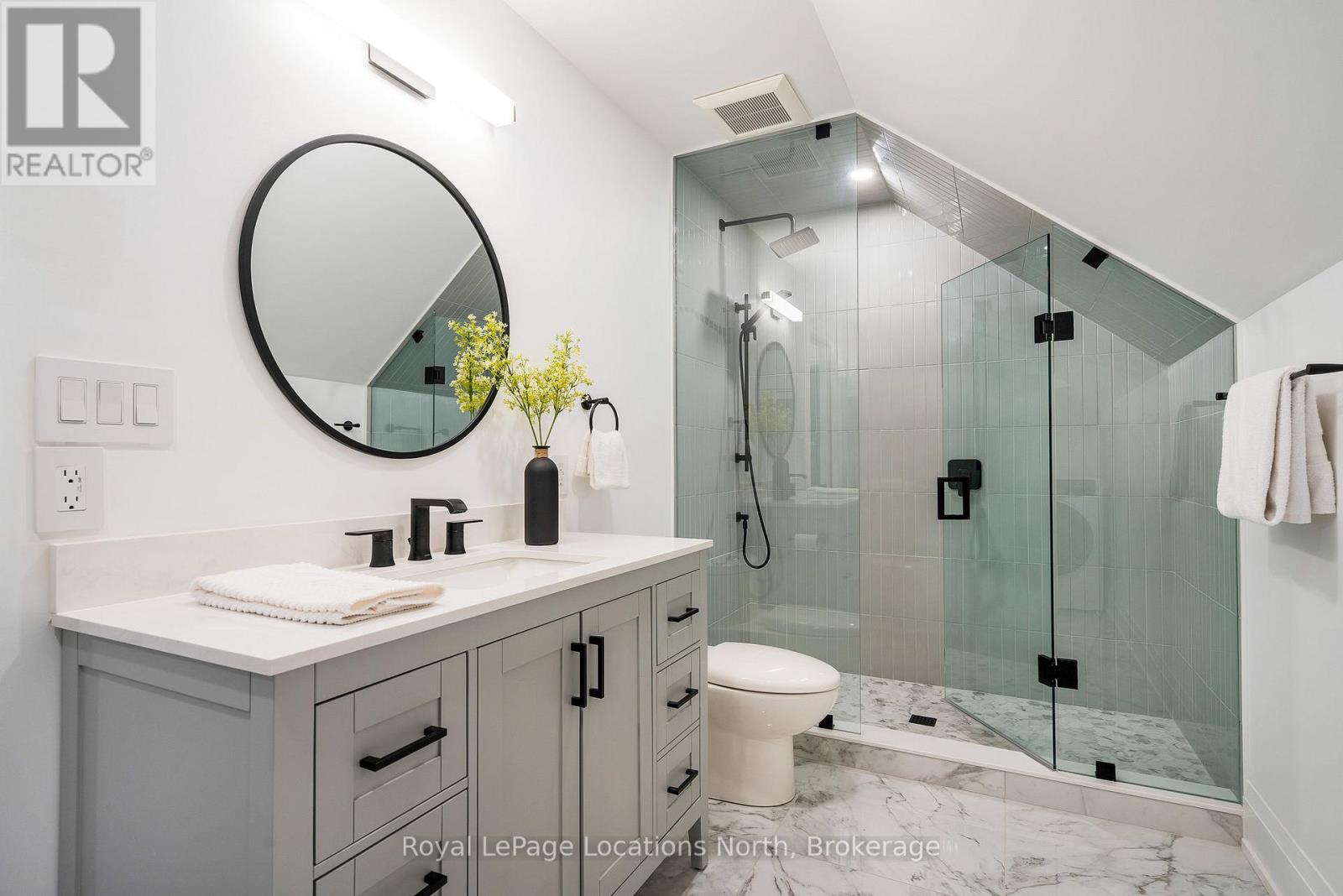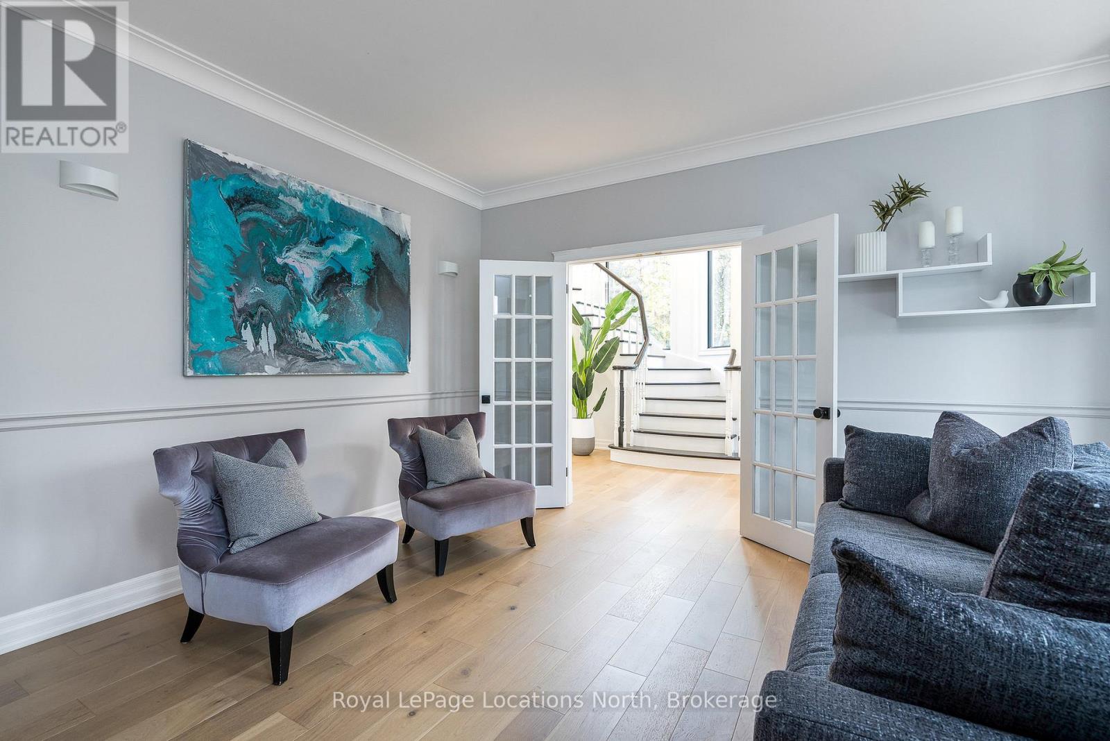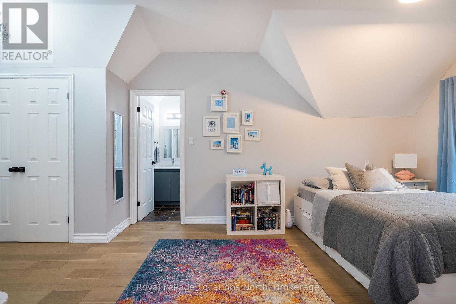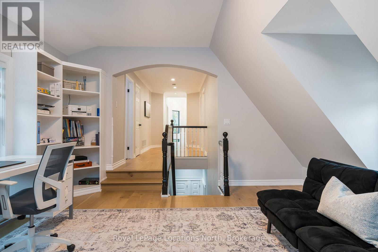Welcome to an extraordinary 14.95-acre country estate that defines luxury living in the heart of Collingwood. Just minutes from downtown yet surrounded by the serenity of nature, this remarkable property offers a harmonious balance of elegance, privacy, and lifestyle - an idyllic retreat for those who value space and sophistication. A picturesque maple-lined driveway winds through the property, leading to a tranquil pond and fountain that set the tone for the residence beyond. The beautifully updated main home spans over 4,300 square feet, featuring 5 bedrooms and 6 bathrooms, thoughtfully reimagined with refined modern finishes. Three fireplaces, dual staircases, and ensuites in every bedroom speak to the home's quality and craftsmanship, while multiple walkouts open seamlessly to expansive terraces, patios, and decks - perfect for entertaining or quiet moments immersed in nature. Every element has been carefully curated, from new windows and floors to the roof, driveway, and professional landscaping, ensuring a timeless and inviting atmosphere. Enhancing the estate's appeal is the 2023-built guest residence, approved Accessory Dwelling Unit (ADU) by Clearview Township. This 1,800-square-foot home features 2 bedrooms and 2 bathrooms, exuding the same level of luxury and style. Connected to a heated pool and generous deck, it offers endless possibilities - an elegant in-law suite, private guest quarters, or an income-generating retreat for seasonal visitors. The back 10 acres offer private trails that border scenic apple orchards and provide breathtaking views toward Osler Bluff. Mature maples and fruit trees frame the landscape, creating a true four-season sanctuary. Few properties offer such a rare combination of scale, privacy, and proximity to downtown Collingwood. This exceptional estate captures the essence of refined country living - where luxury, nature, and lifestyle meet in perfect harmony. (id:53503)