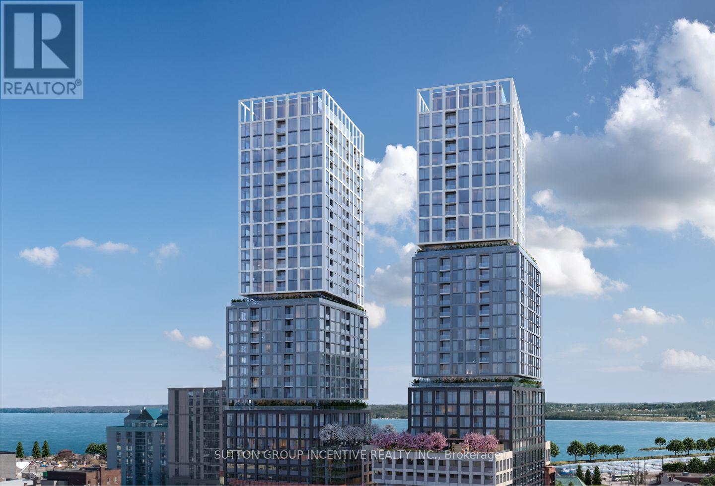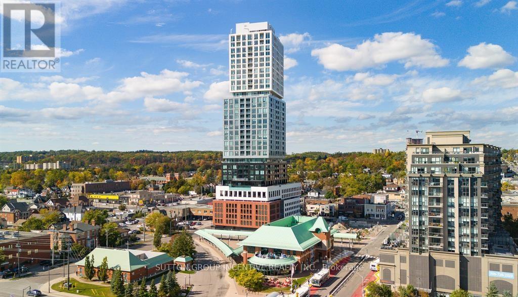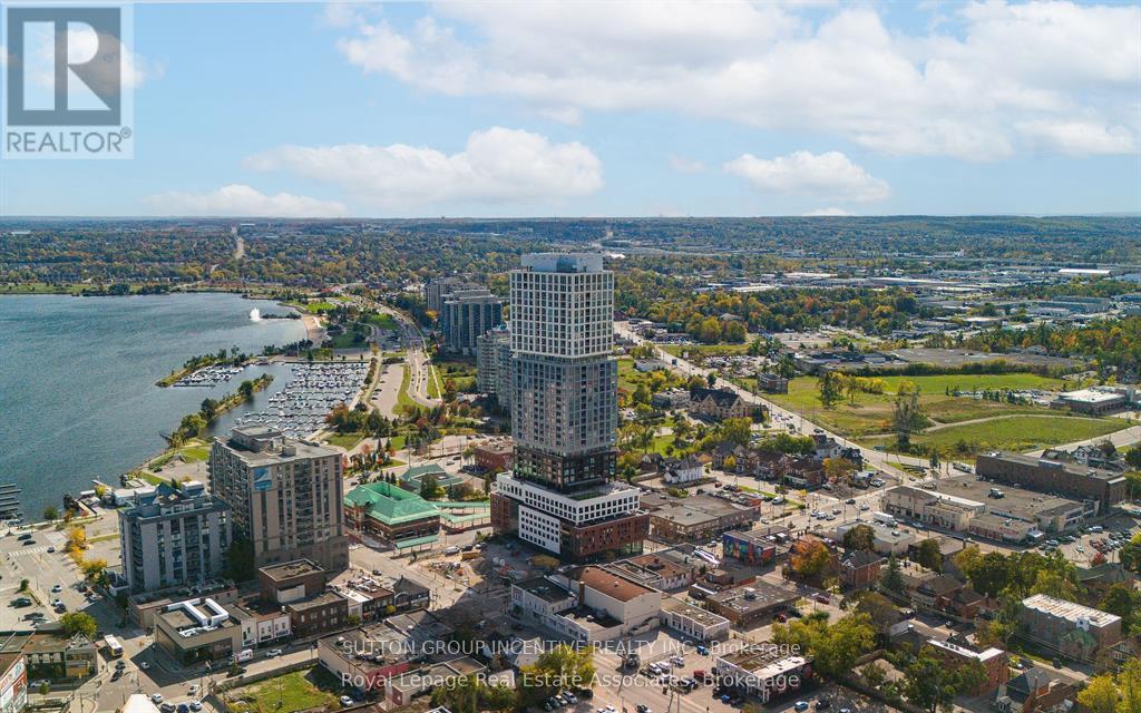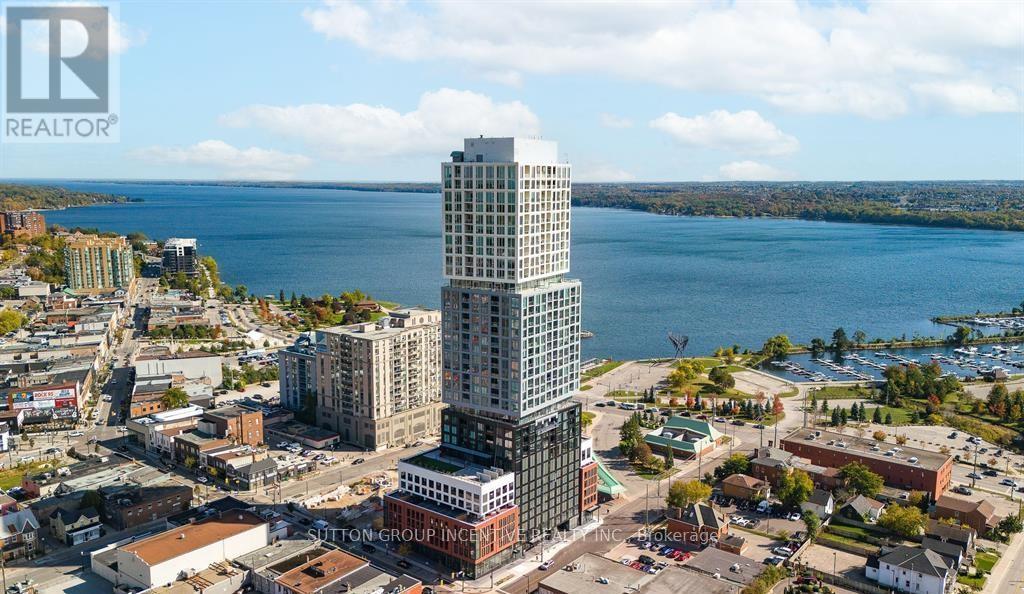 Debut Condos where luxury waterfront living meets an urban lifestyle! Upscale lakeside living in this brand-new, never-lived-in 1-bedroom plus den (could be used as 2nd Bedroom), 2-bathroom corner suite perfectly situated in the heart of downtown Barrie. Modern design, 9-ft ceilings, smooth ceilings, floor-to-ceiling windows, and wide-plank laminate flooring. The gourmet kitchen features custom cabinetry, integrated appliances, a movable island, and solid surface countertops. Enjoy two elegant bathrooms with contemporary vanities, frameless glass showers, and porcelain tile flooring. North & West Views breathtaking city views, with natural light streaming through oversized windows that wrap around the entire suite. Blinds installed on all windows. The generously sized den provides exceptional flexibility - ideal as a second bedroom, home office, or inviting guest space. Step outside your door and enjoy Barrie's vibrant waterfront, trendy restaurants, and exciting nightlife along Dunlop Street, with the Central Bus Terminal conveniently located right next to the building. This suite includes one owned underground parking space. Residents will enjoy premium amenities, including a state-of-the-art fitness center, expansive recreational terrace with a BBQ area, and a spectacular 360 outdoor heated pool overlooking Kempenfelt Bay offering the ultimate Nordic spa-like experience. Don't miss your chance to own this remarkable lakeside retreat in Barrie's newest and much anticipated high-rise condo by the lake. Including built-in refrigerator, built-in dishwasher, built-in oven, stove top, microwave, stacked laundry washer & dryer. Professional Photos to Follow. Would consider VTB! (id:53503)
