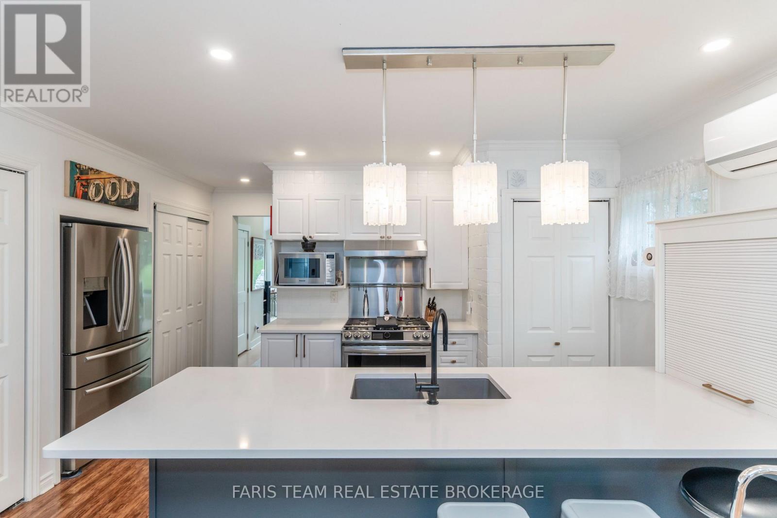 Top 5 Reasons You Will Love This Home: 1) This incredibly versatile turn-key property offers endless possibilities with a spacious two-storey layout paired with a self-contained bungalow suite for added flexibility, whether you're looking for a multi-generational home, a peaceful cottage retreat, an at-home business, or an income-generating opportunity 2) A bright back family room with soaring ceilings that flood the space with natural light and over $135K of upgrades in last 3 years, this home boasts a refreshed kitchen, bathrooms, bungalow suite, an enclosed sunroom addition, and updated landscaping 3) The beautifully renovated bungalow suite provides a private bedroom or office, a self-contained kitchen, and a 3-piece bathroom, making it the perfect space for guests, extended family, rental income, or even a dedicated home office 4) Enjoy outdoor living all year-round with a serene backyard oasis, front and rear decks, mature evergreens, and views of the Georgian Bay sunsets without the higher waterfront taxes, all steps away from marinas, trails, and endless four-season activities such as skiing, snowmobile trails, and ice fishing 5) Ideally located just 2 minutes from Highway 400 and 30 minutes north of Barrie, this home comes with added comforts like an EV charger, a big and bright spray-foam insulated 4'8" high and 407 square foot crawl space, and efficient ductless heating and cooling systems, bonus, 3 mins away a new paramedic/ambulance station is underway, offering peace-of-mind through faster emergency care, and 2 ski hills within 13-minutes away, and the snowmobiling and fishing out your front door. 2,069 fin. sq.ft. All furnishings (negotiable) (id:53503)